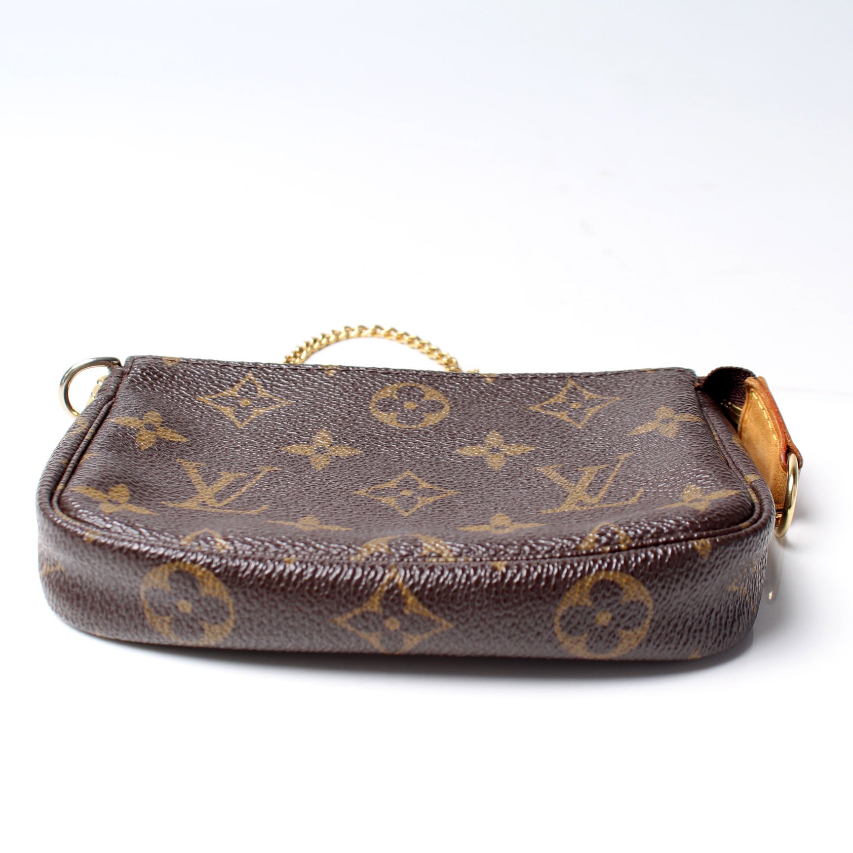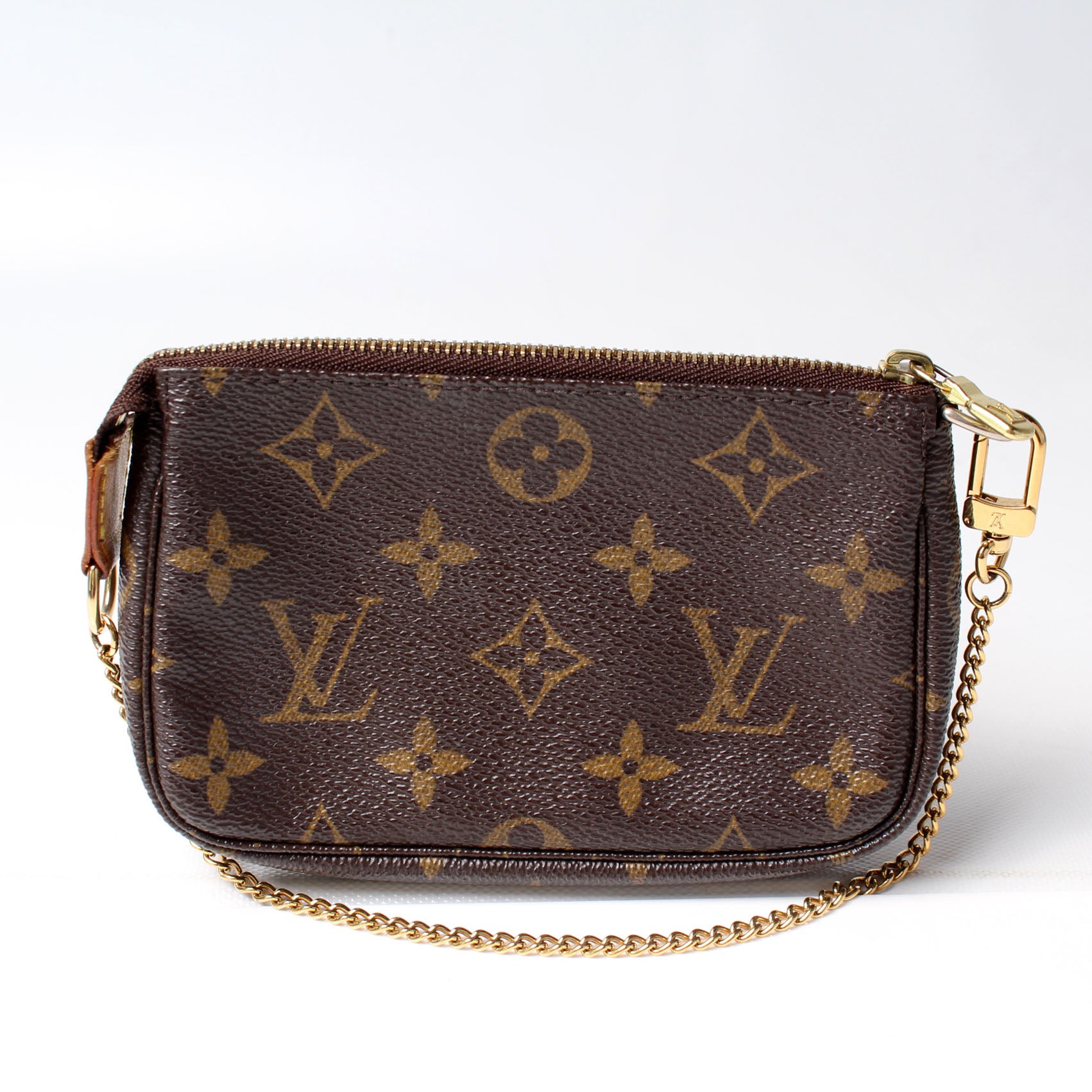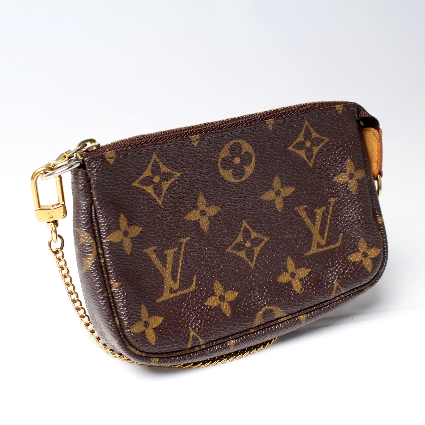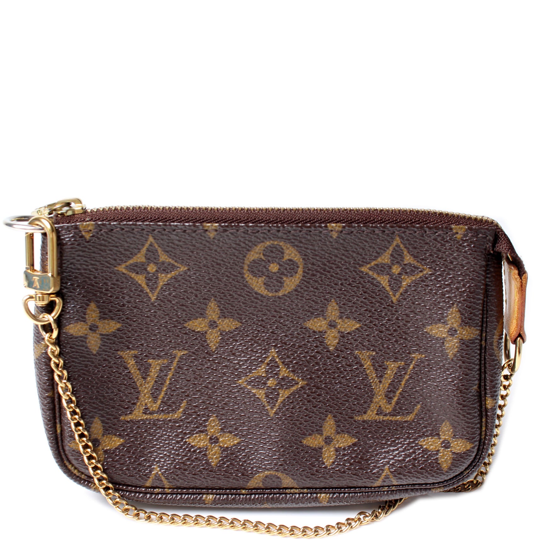This pre-owned Louis Vuitton Pochette Accessories is guaranteed 100% authentic. The exterior is in the classic Louis Vuitton Monogram coated canvas.