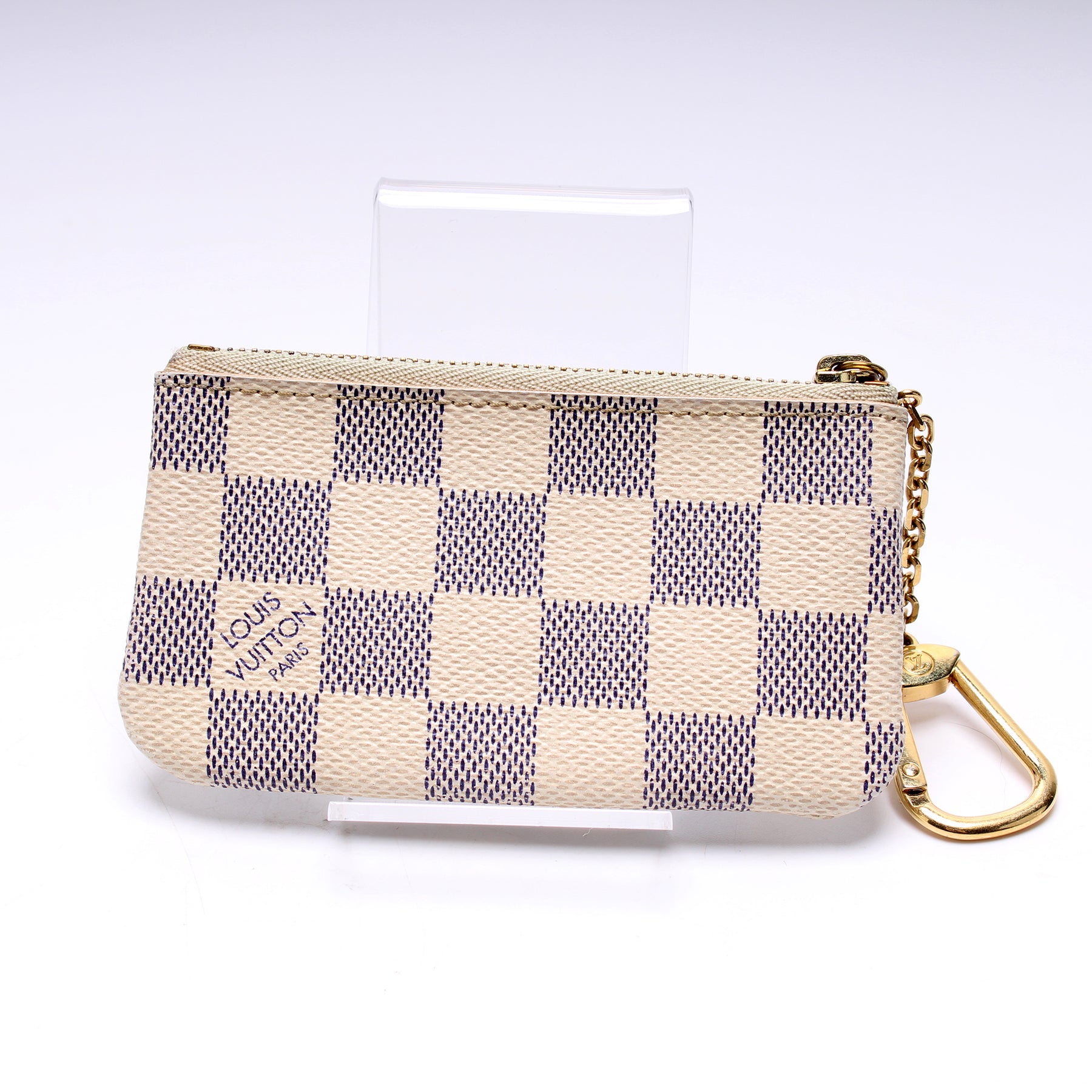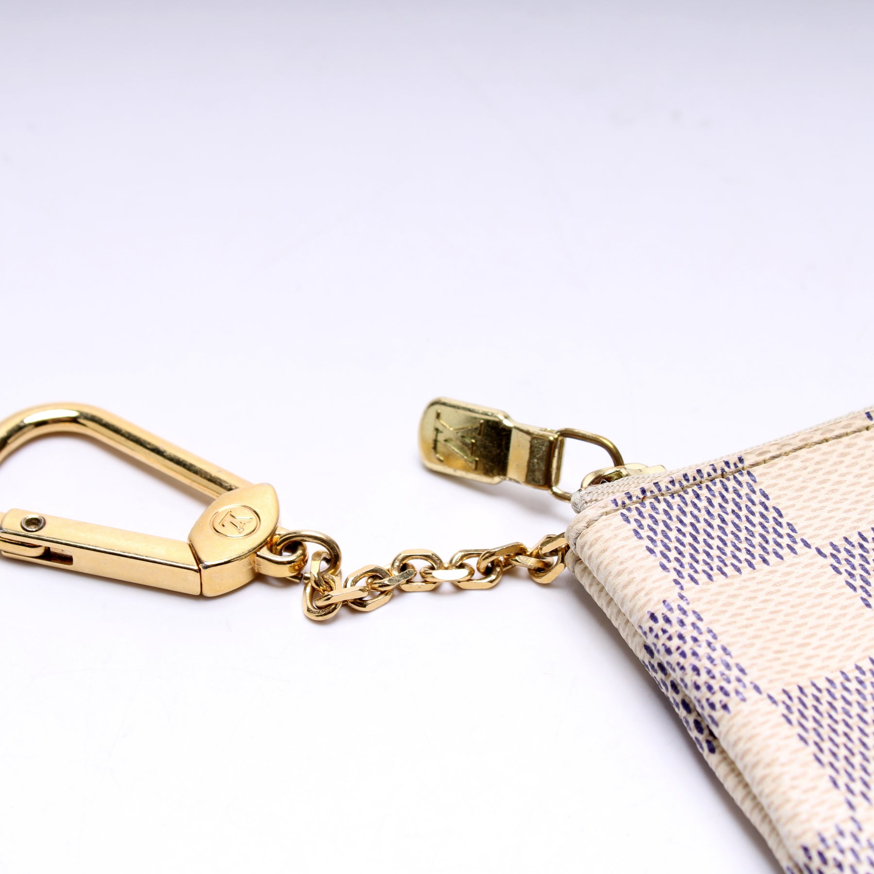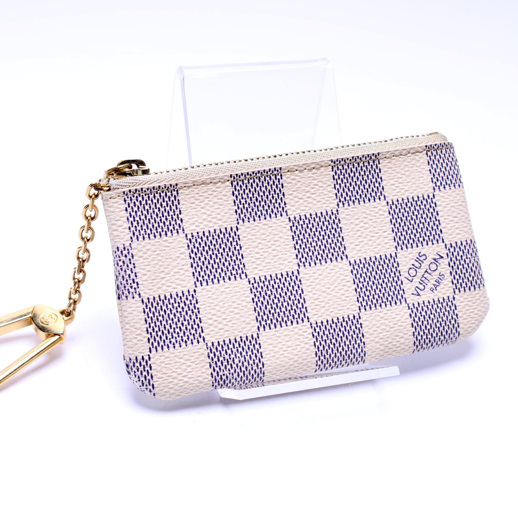 This pre-owned Louis Vuitton Pochette Cles is guaranteed 100% authentic. The exterior is in the classic Louis Vuitton Damier Azur coated canvas.