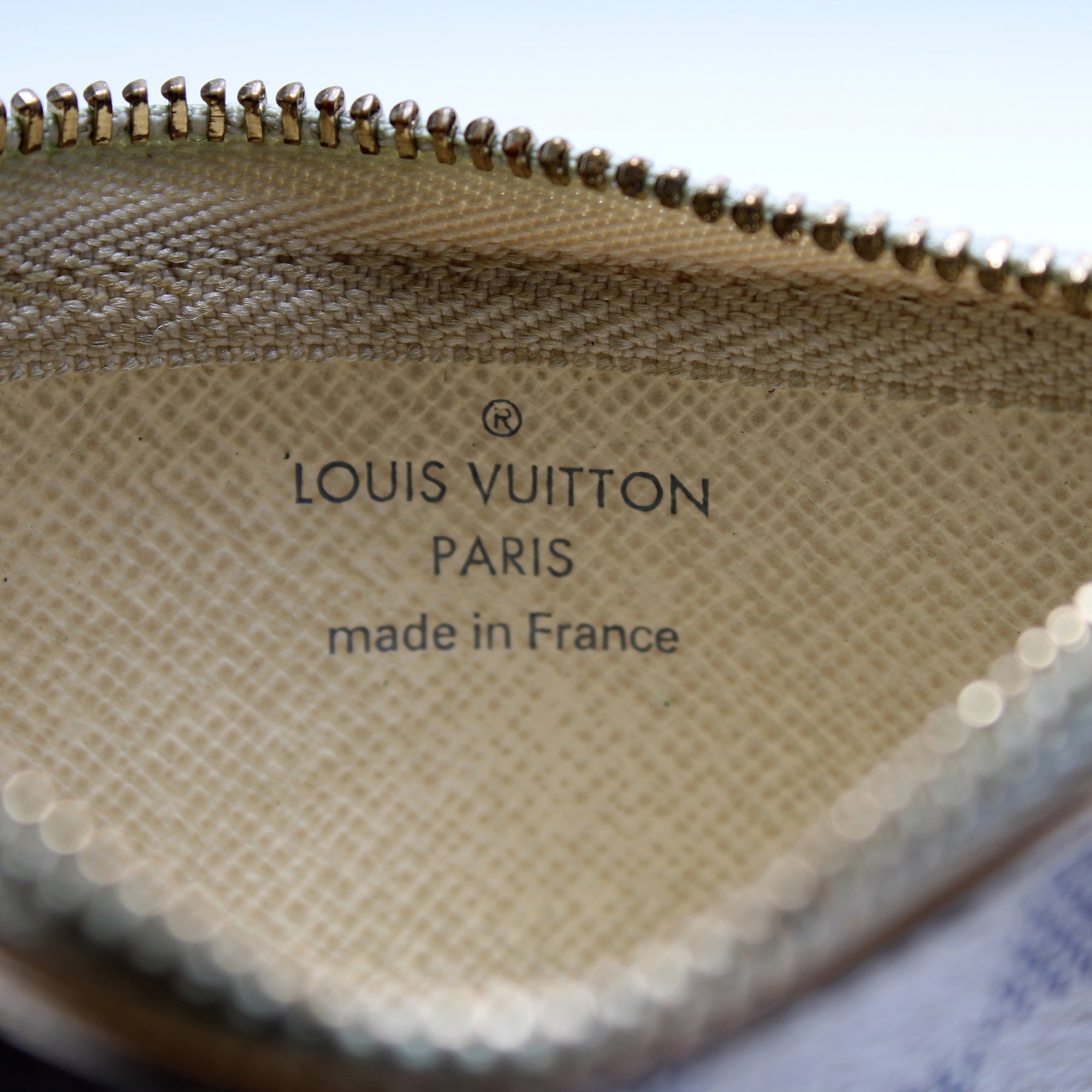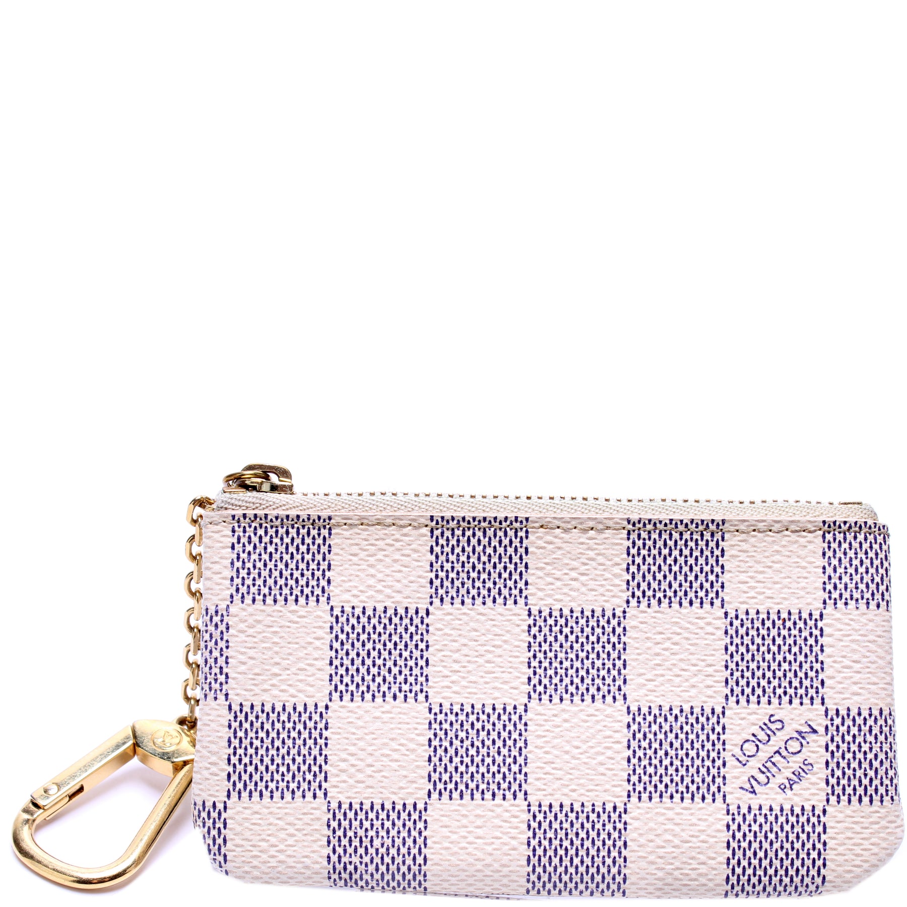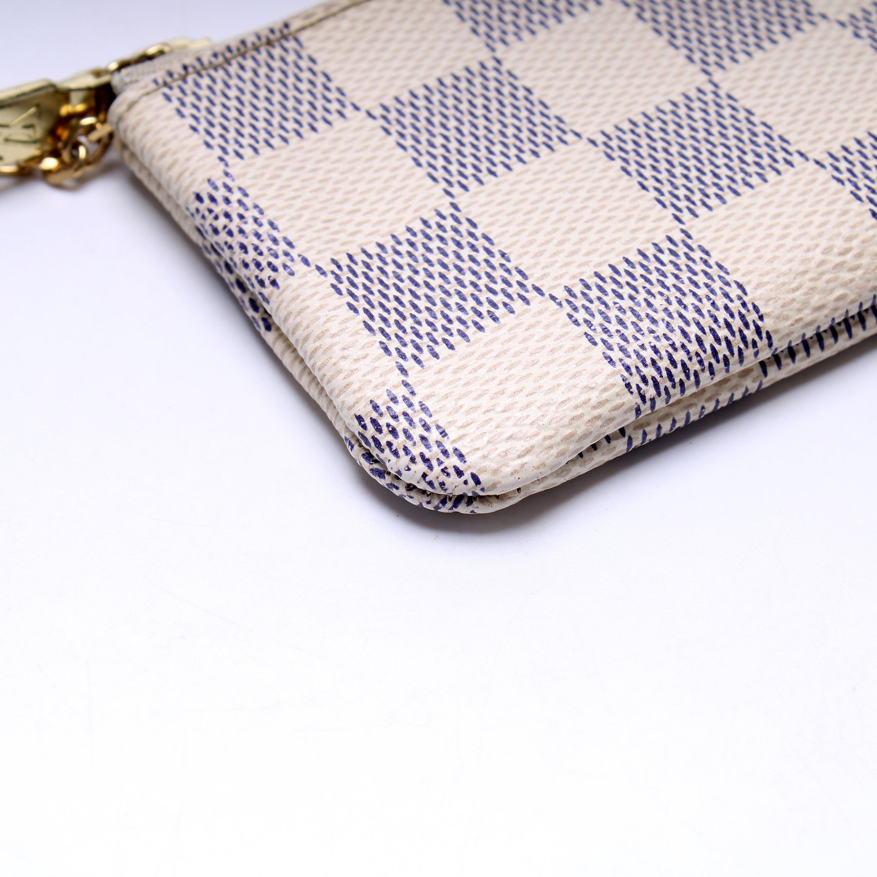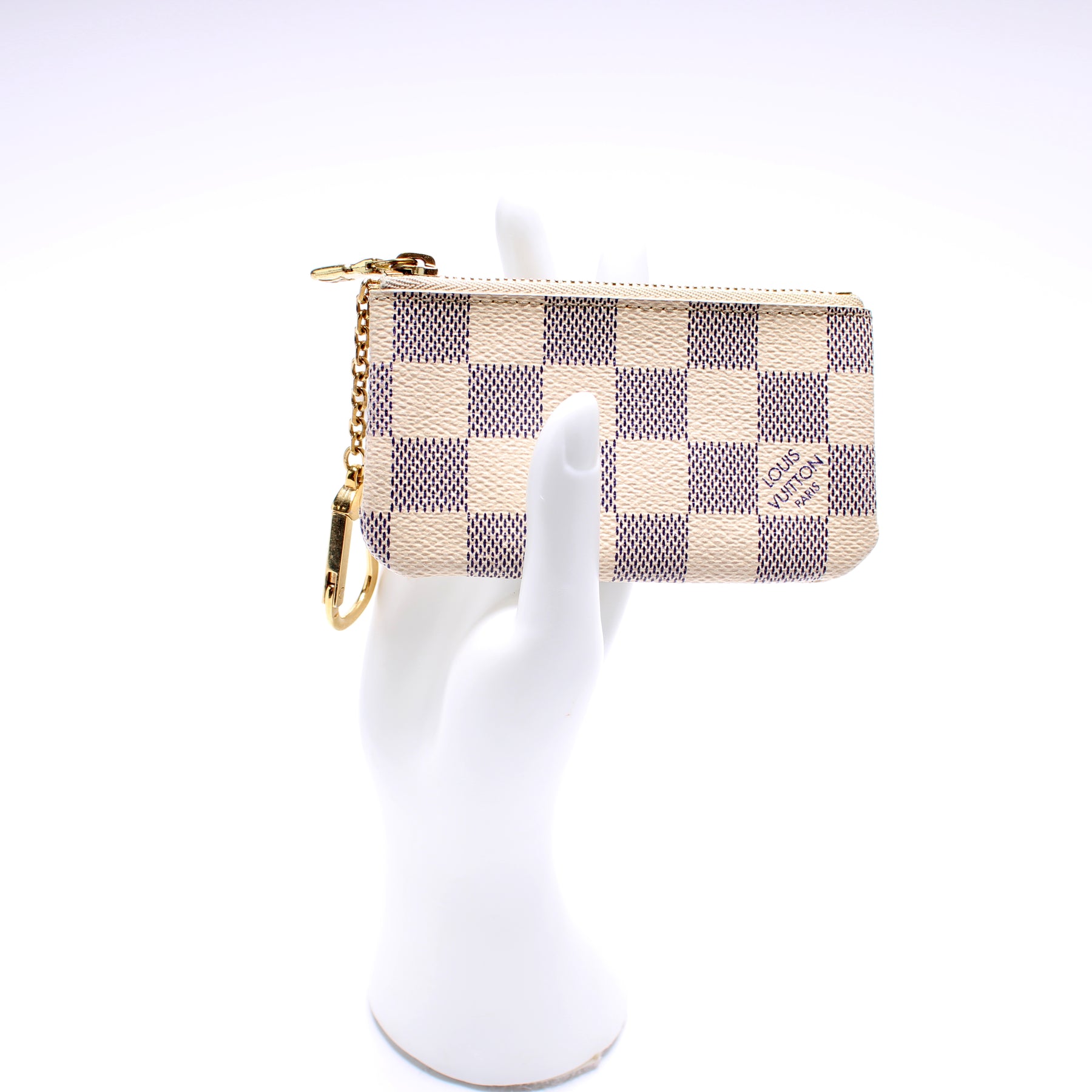 This pre-owned Louis Vuitton Pochette Cles is guaranteed 100% authentic. The exterior is in the classic Louis Vuitton Damier Azur coated canvas.