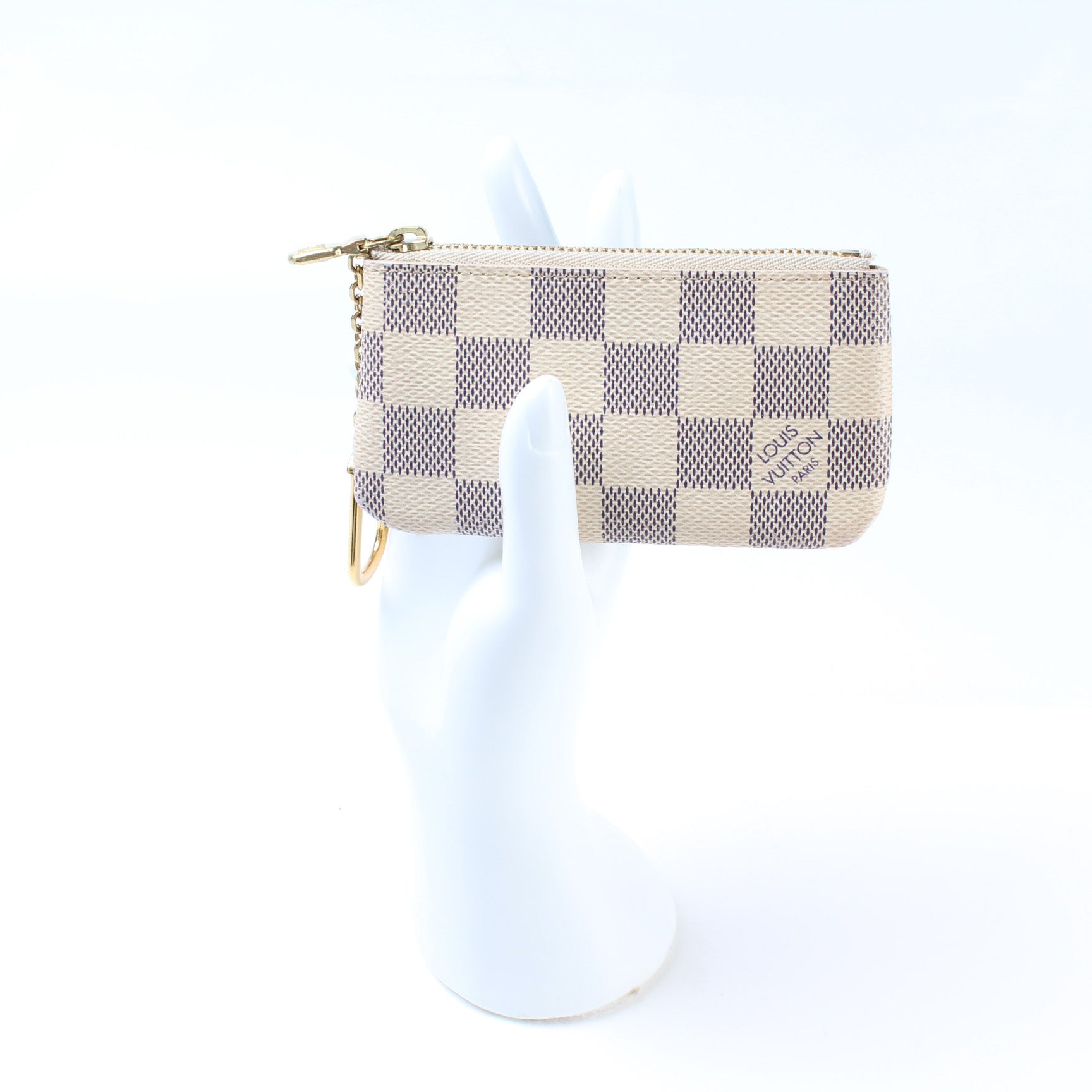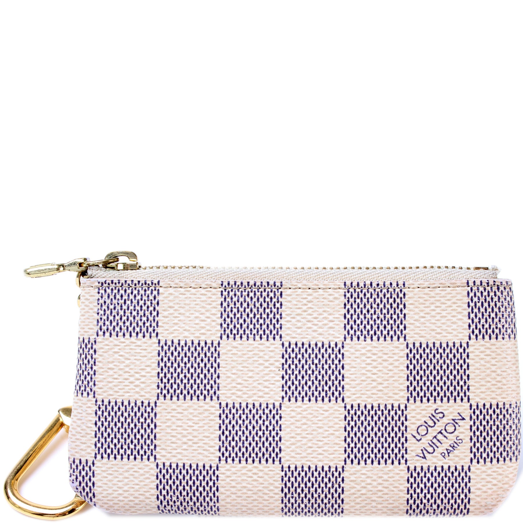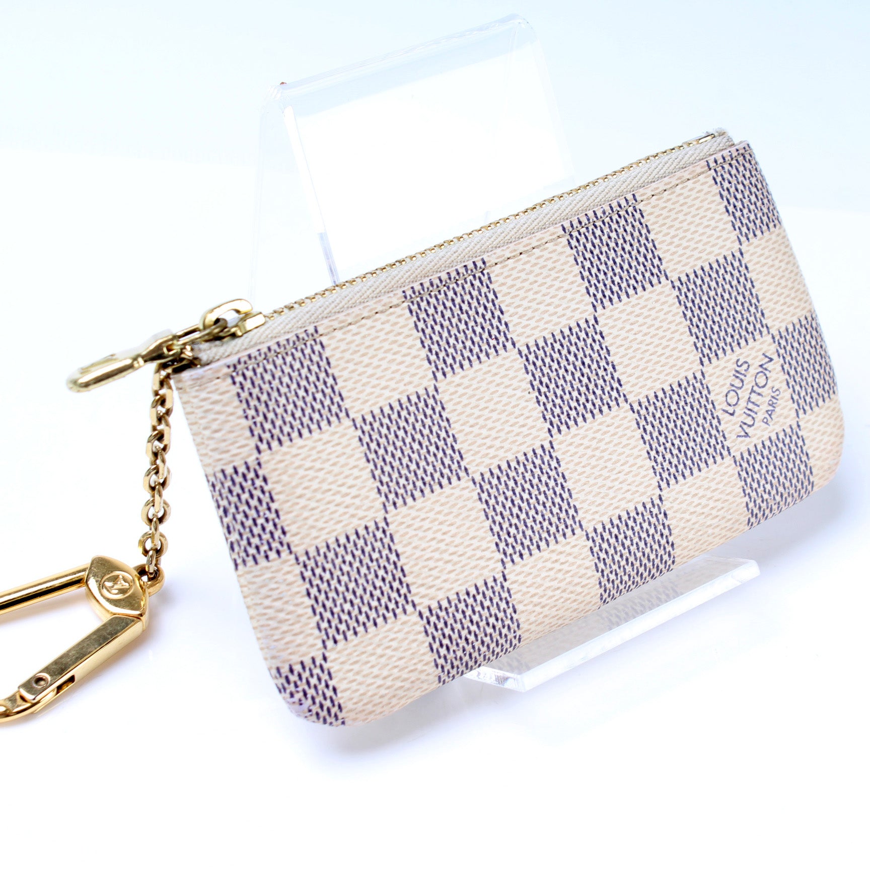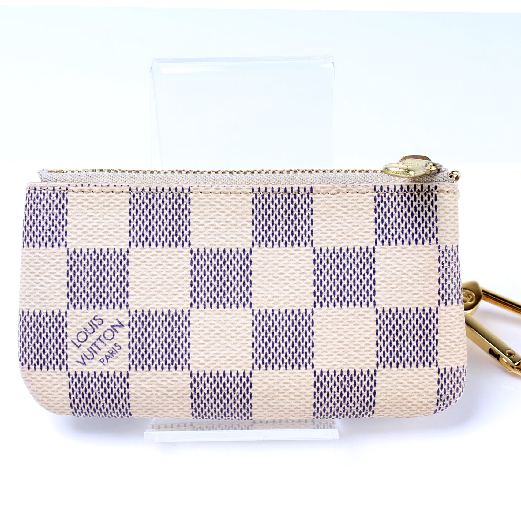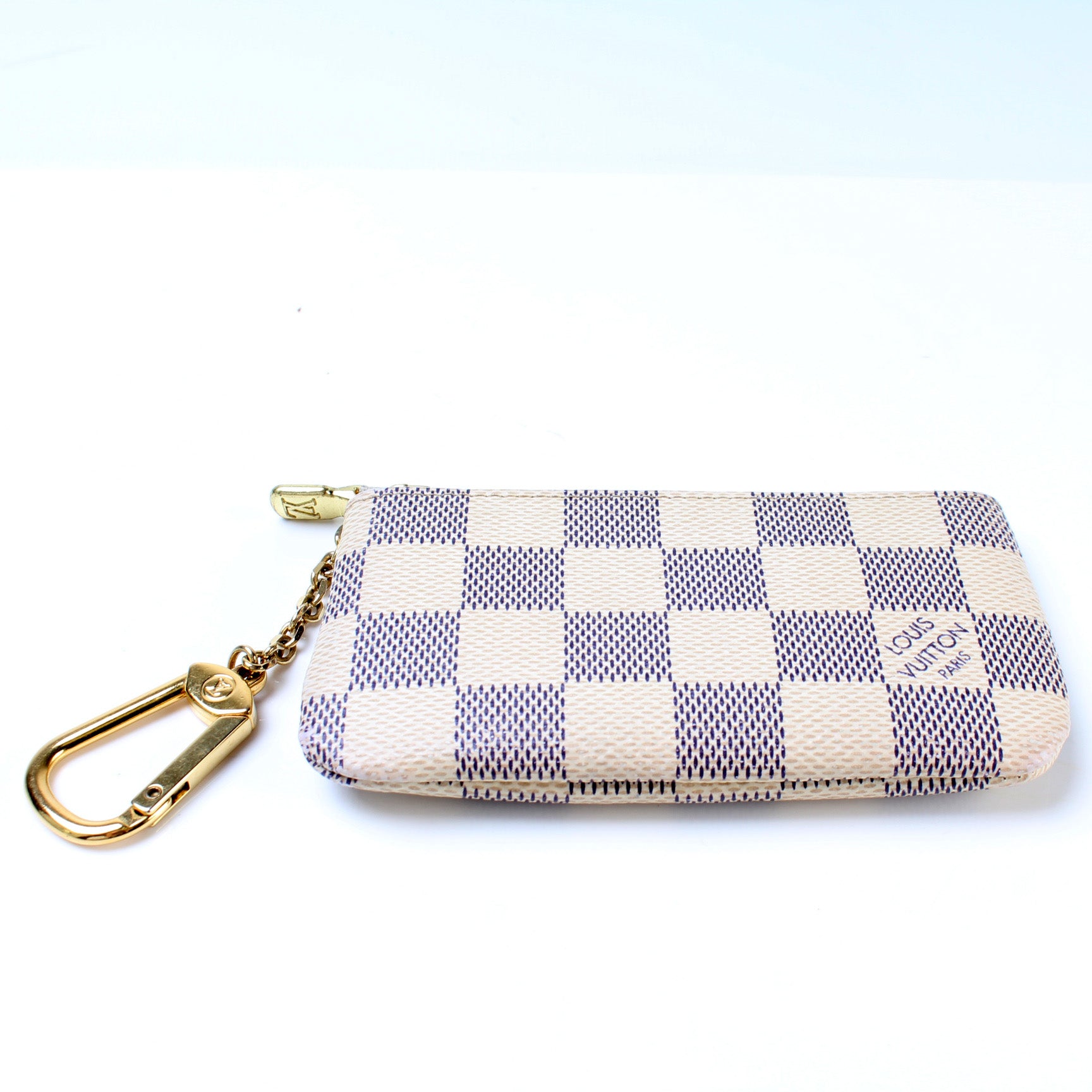 This pre-owned Louis Vuitton Pochette Cles is guaranteed 100% authentic. The exterior is in the classic Louis Vuitton Damier Azur coated canvas.