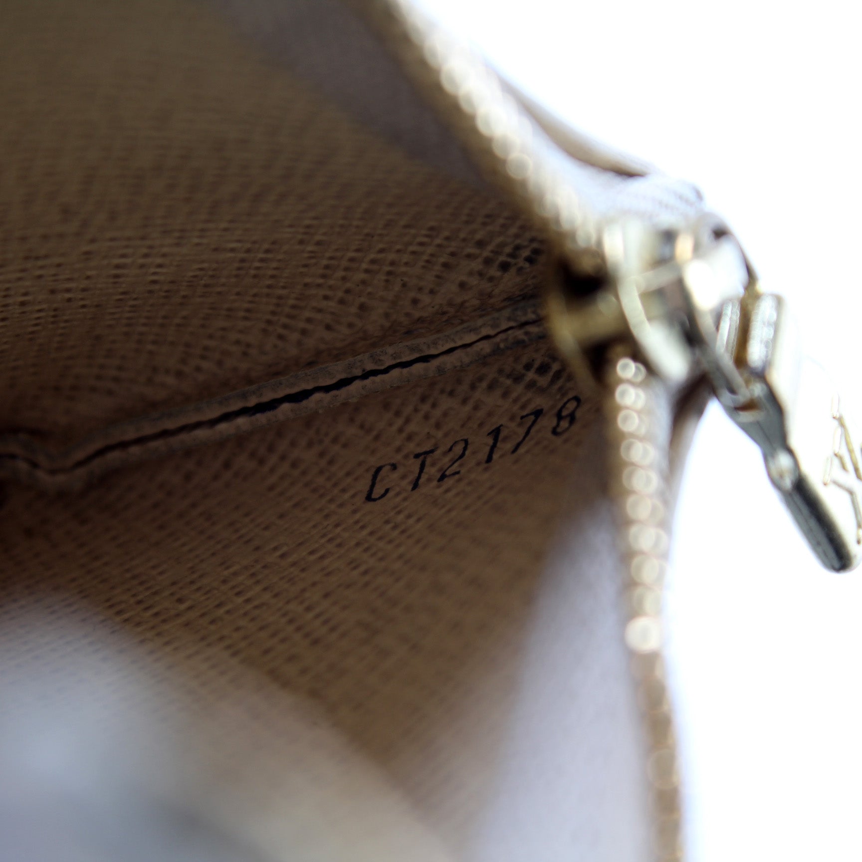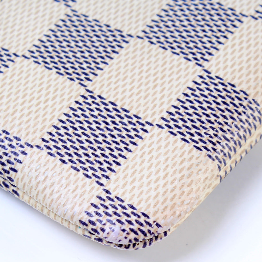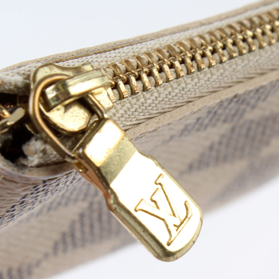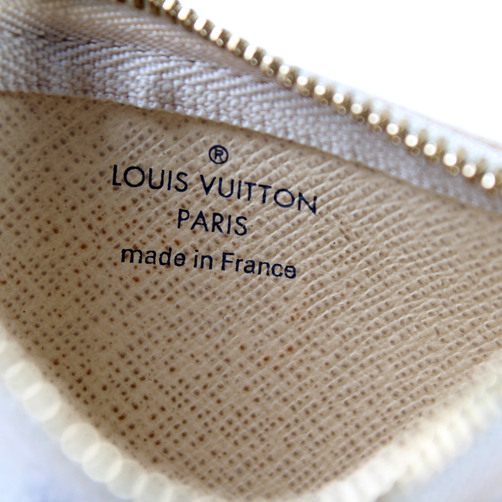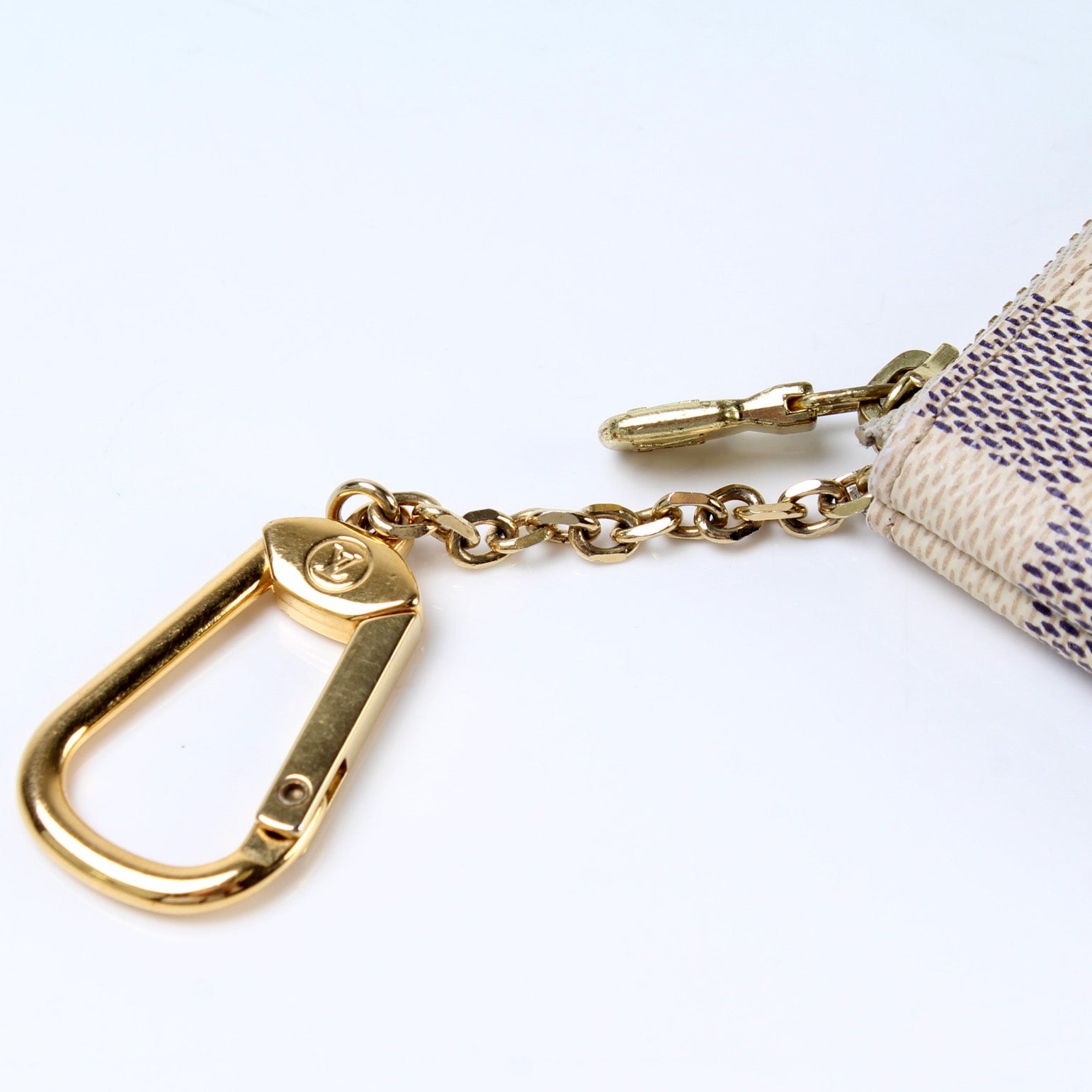 This pre-owned Louis Vuitton Pochette Cles is guaranteed 100% authentic. The exterior is in the classic Louis Vuitton Damier Azur coated canvas.