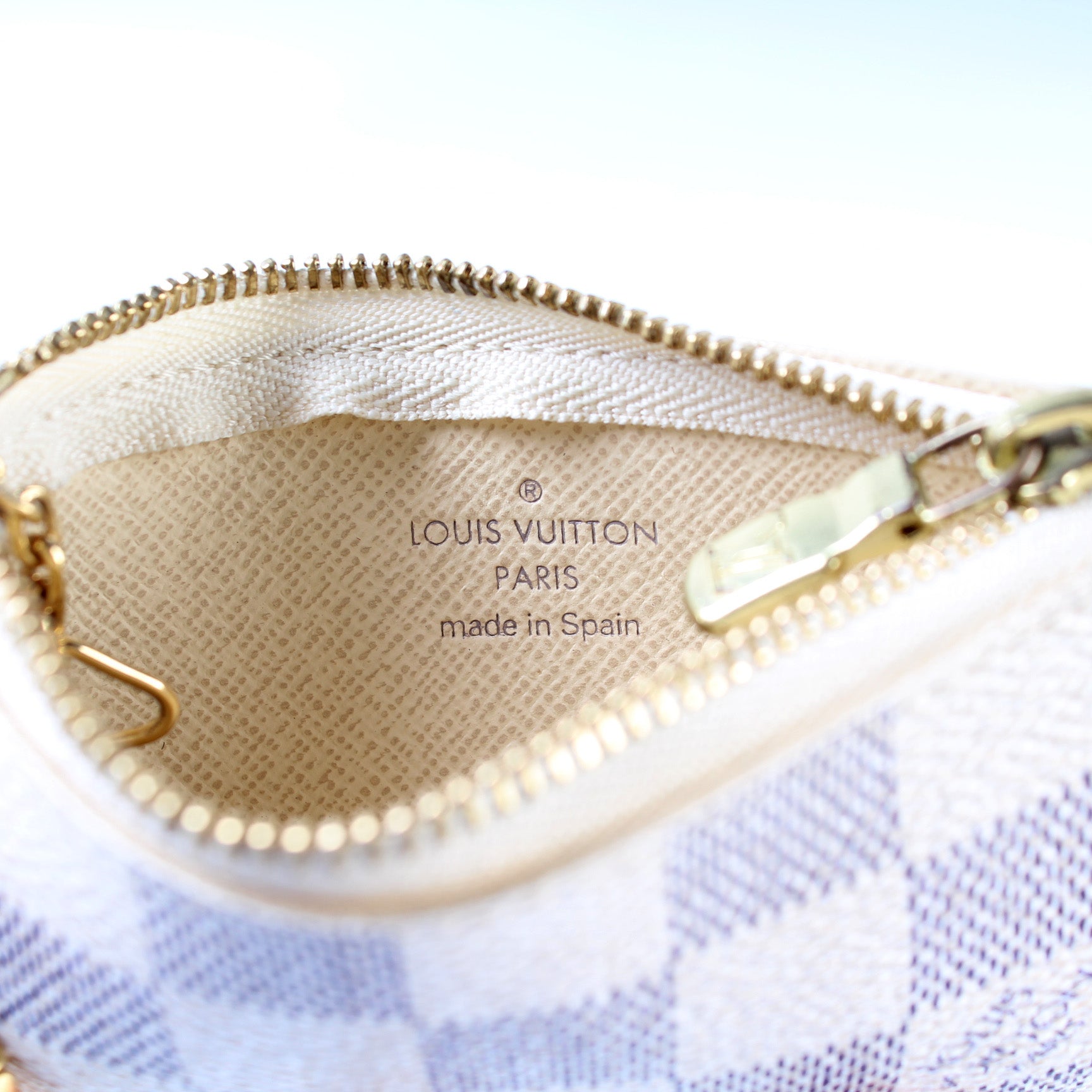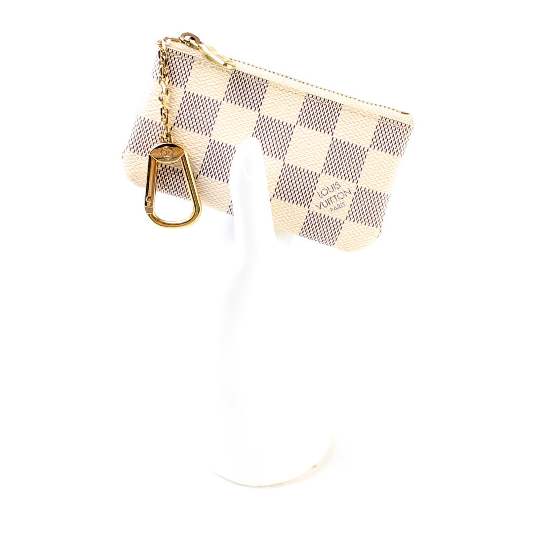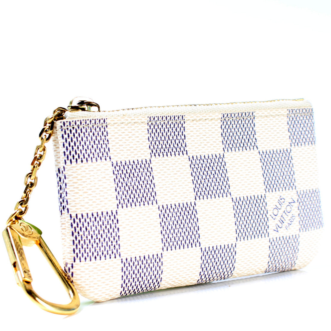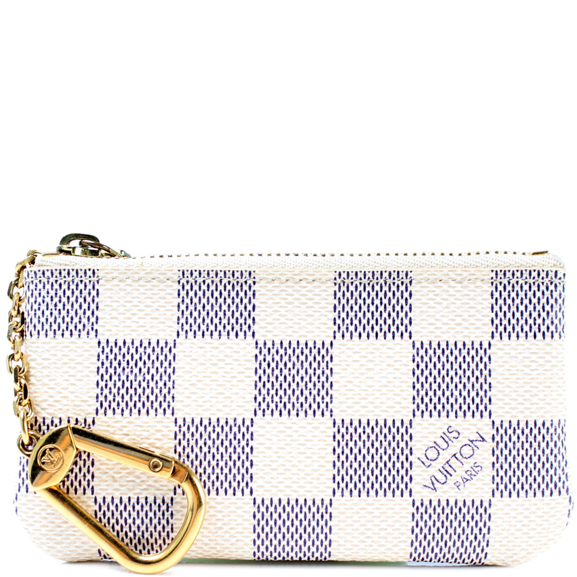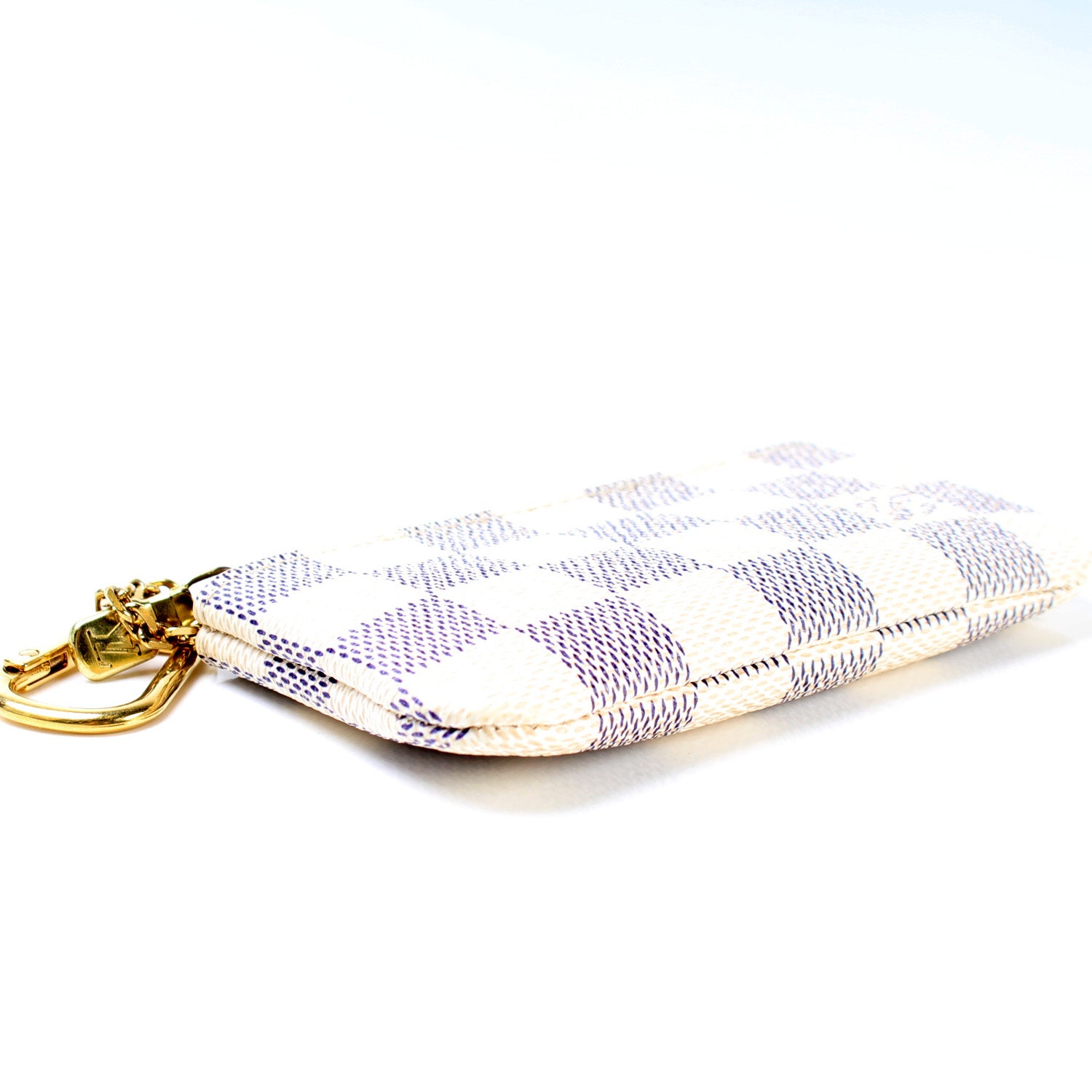 This pre-owned Louis Vuitton Pochette Cles is guaranteed 100% authentic. The exterior is in the classic Louis Vuitton Damier Azur coated canvas.