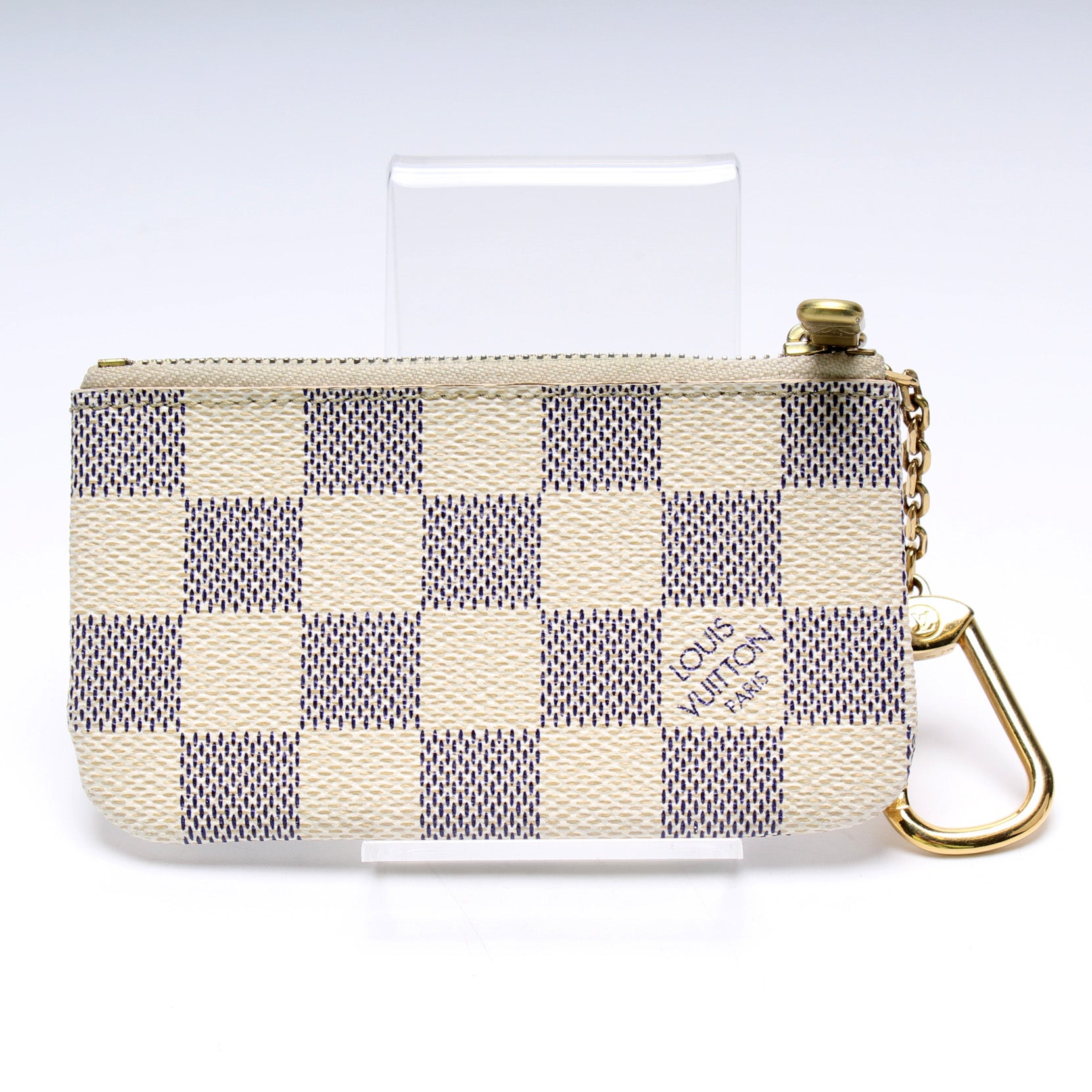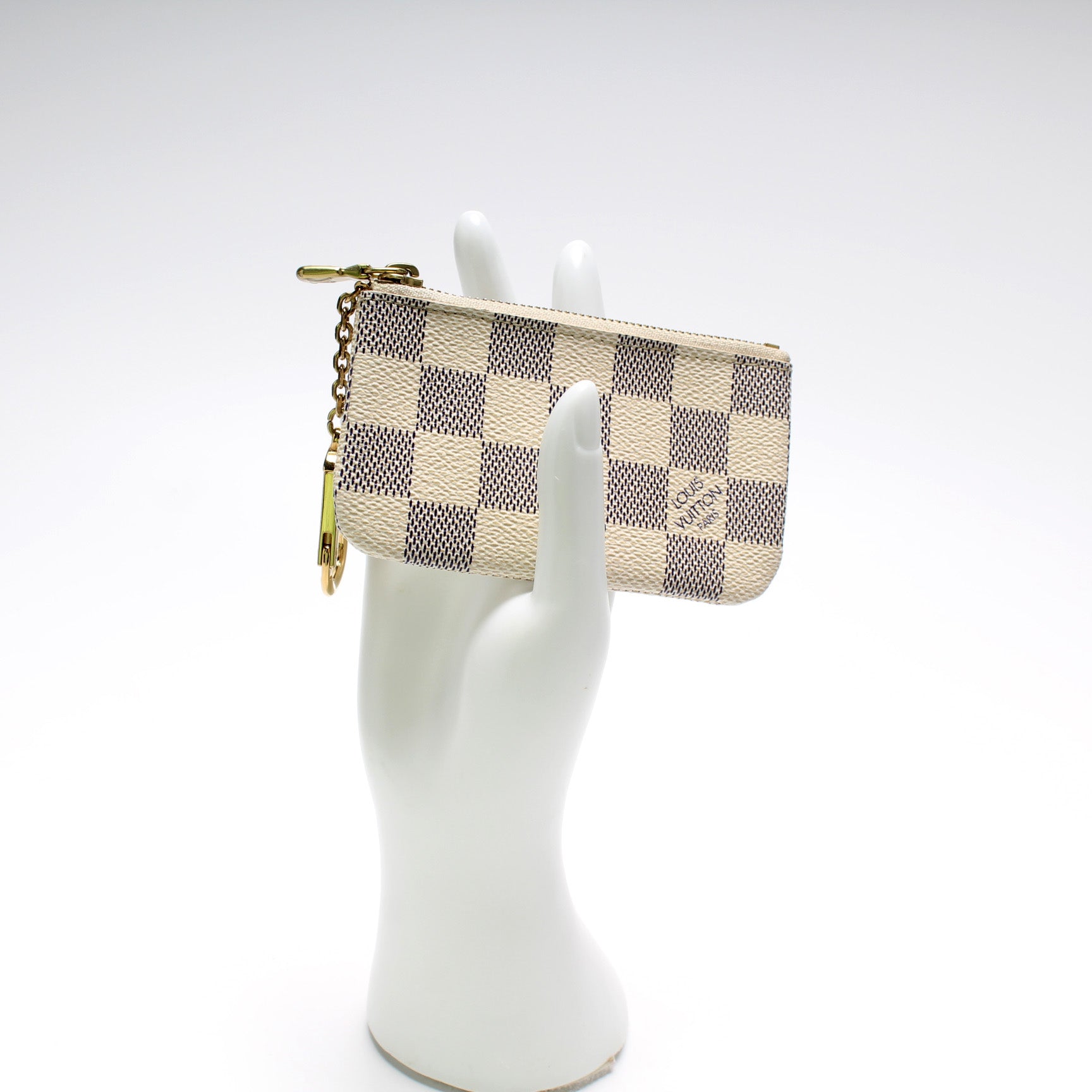 This pre-owned Louis Vuitton Pochette Cles is guaranteed 100% authentic. The exterior is in the classic Louis Vuitton Damier Azur coated canvas.