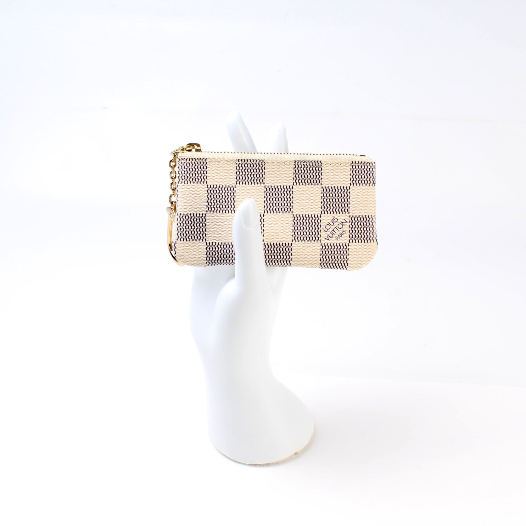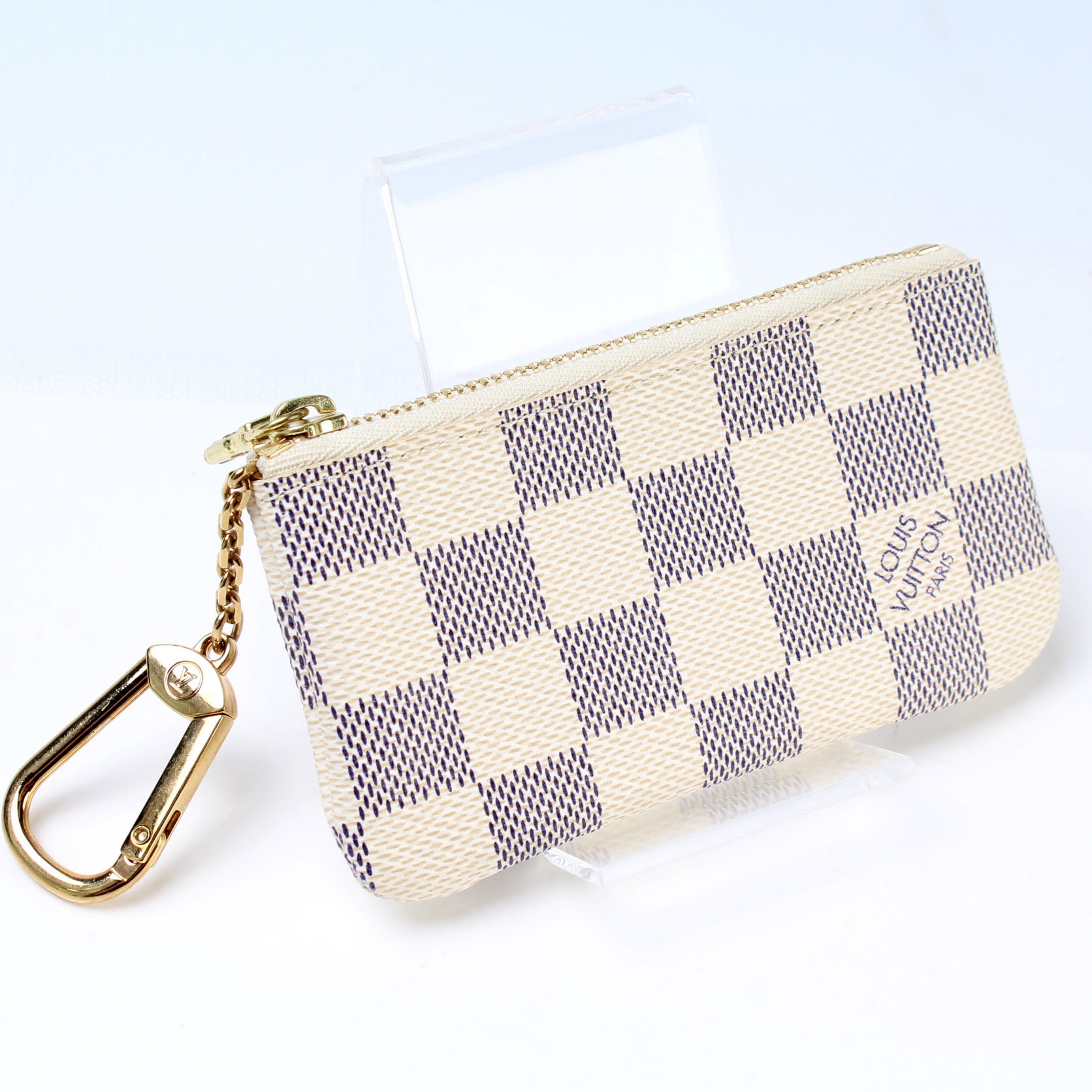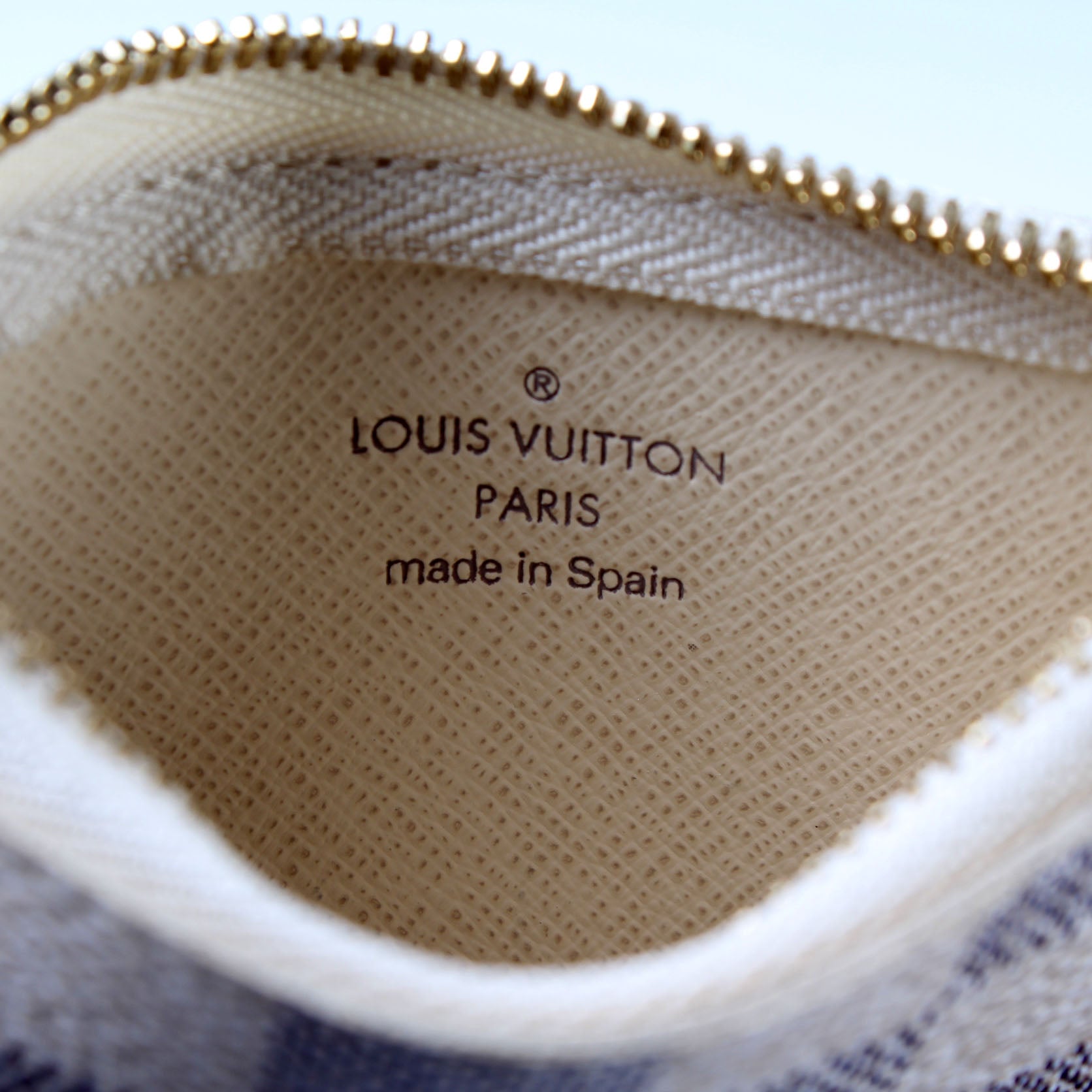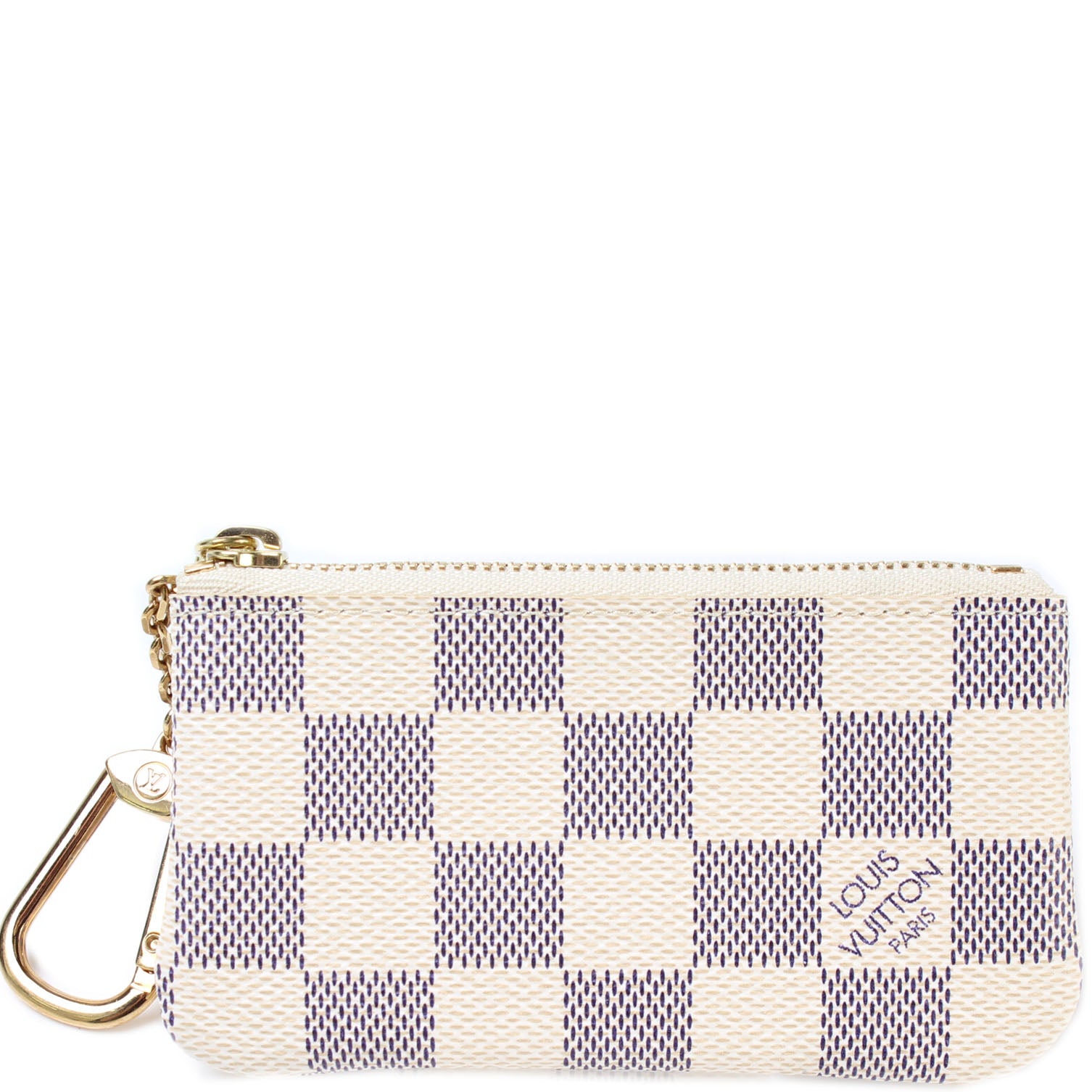 This pre-owned Louis Vuitton Pochette Cles is guaranteed 100% authentic. The exterior is in the classic Louis Vuitton Damier Azur coated canvas.