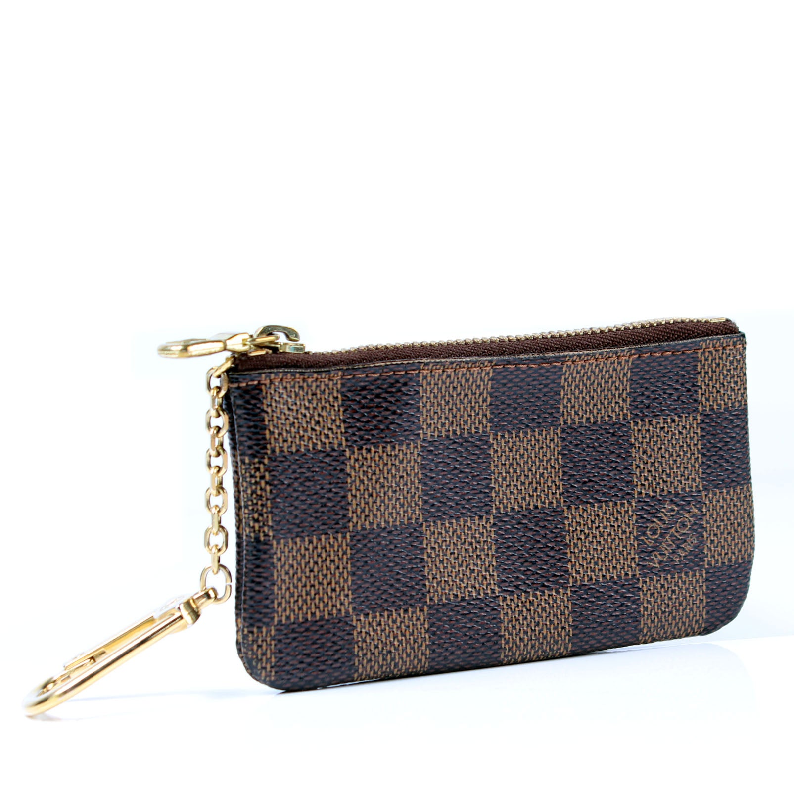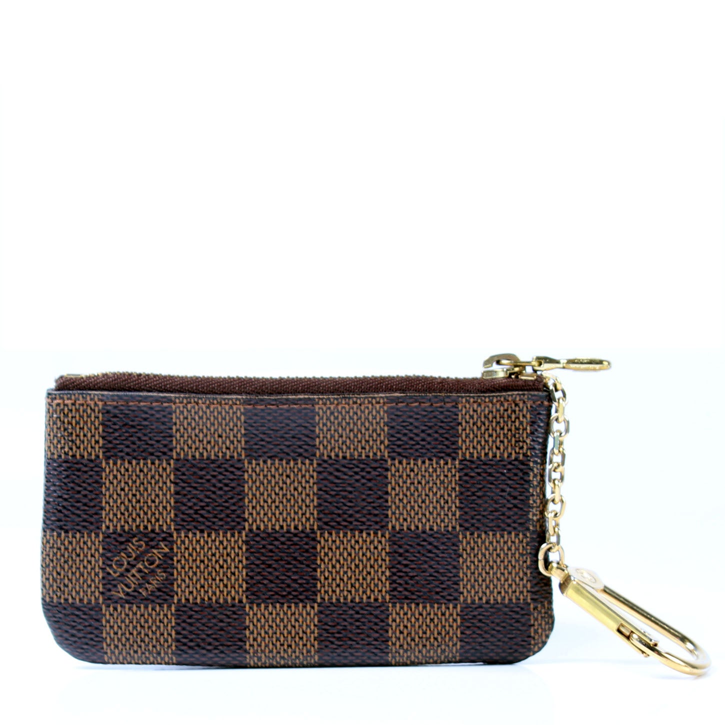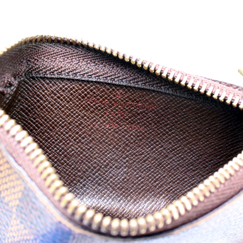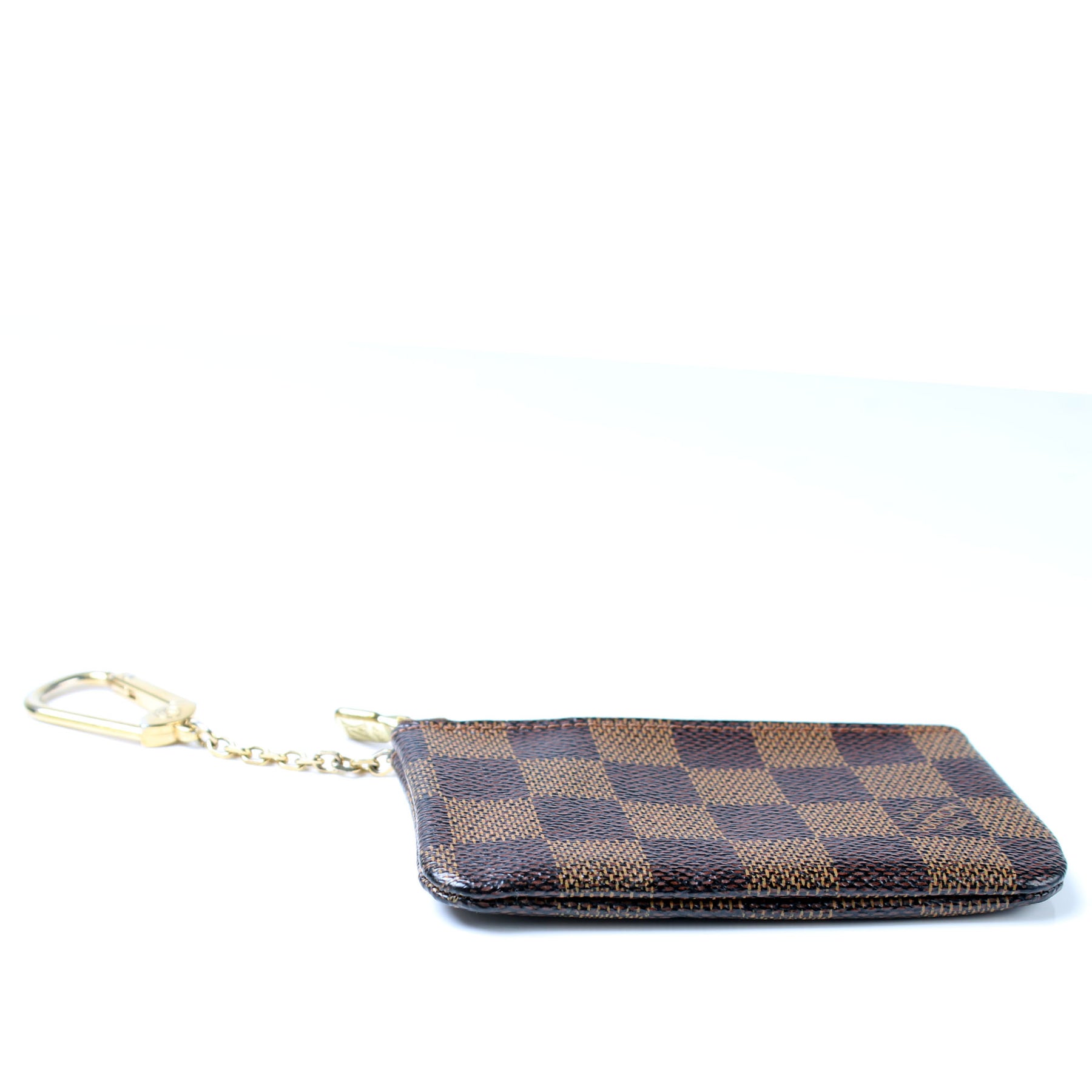 This pre-owned Louis Vuitton Pochette Cles is guaranteed 100% authentic. The exterior is in the classic Louis Vuitton Damier Damier coated canvas.