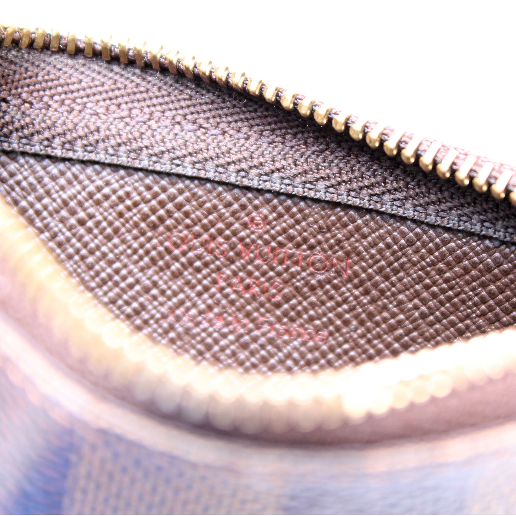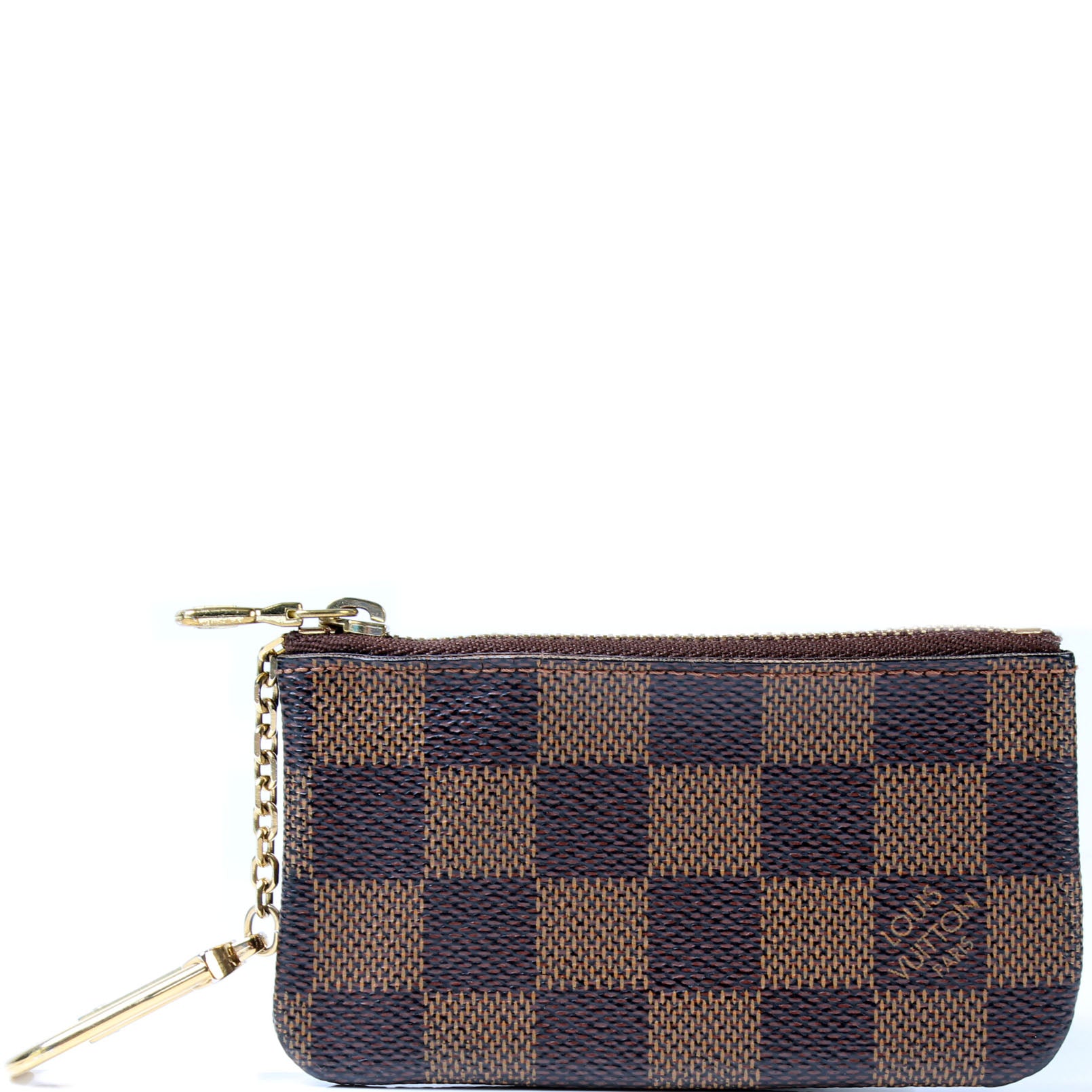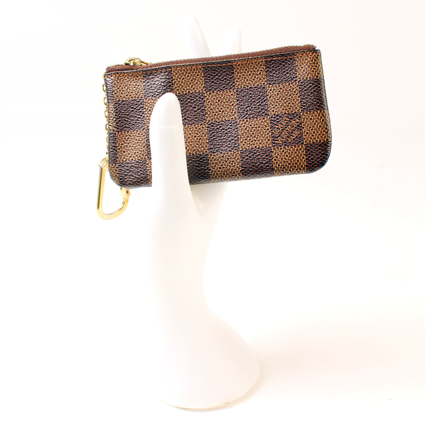 This pre-owned Louis Vuitton Pochette Cles is guaranteed 100% authentic. The exterior is in the classic Louis Vuitton Damier Damier coated canvas.