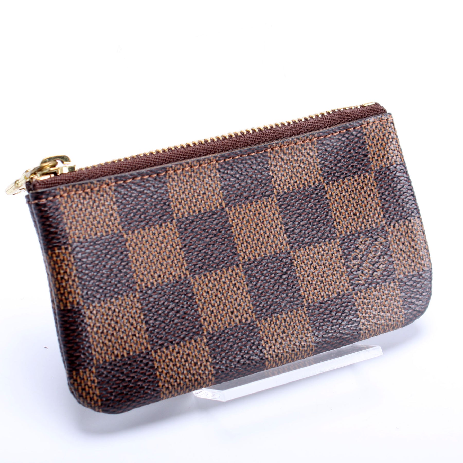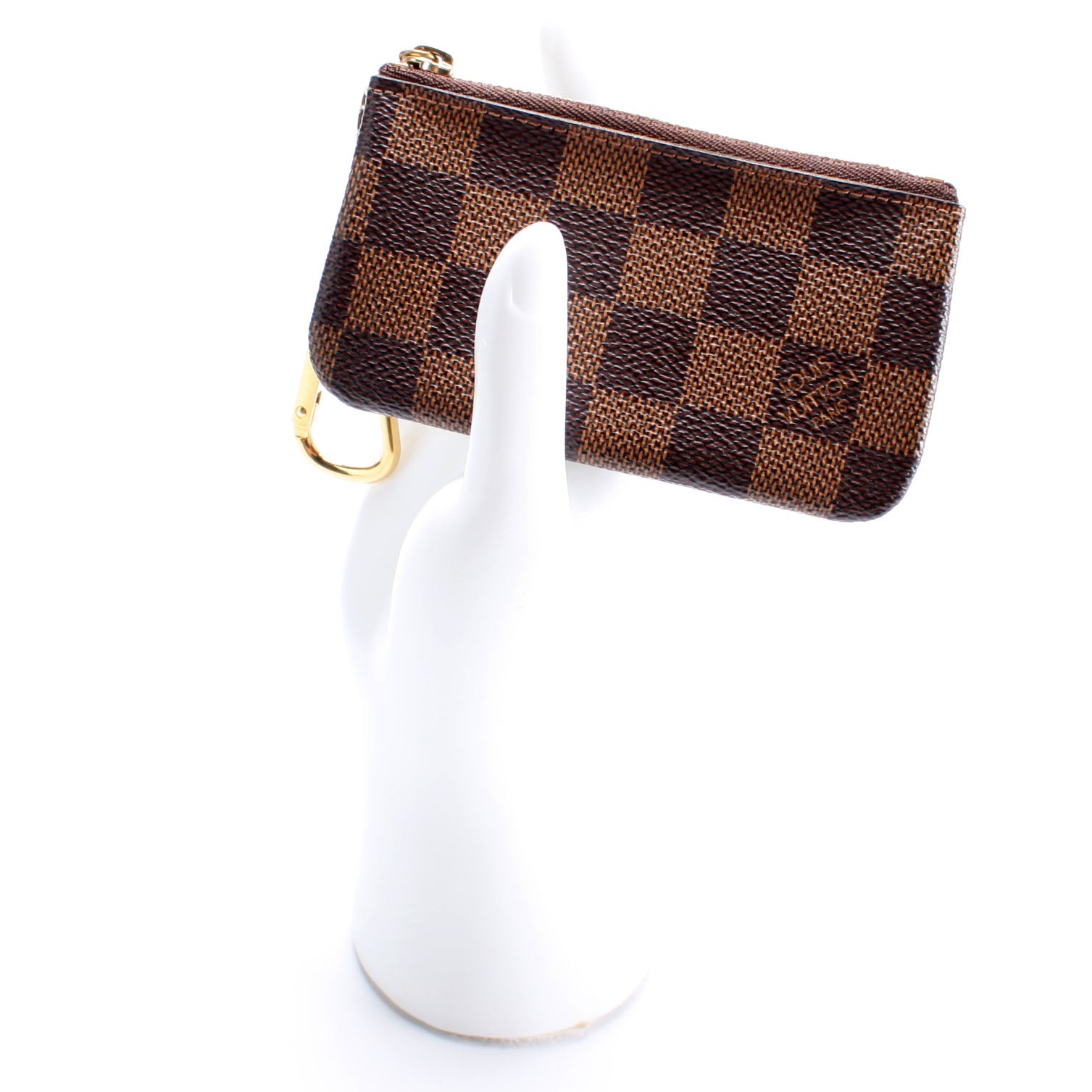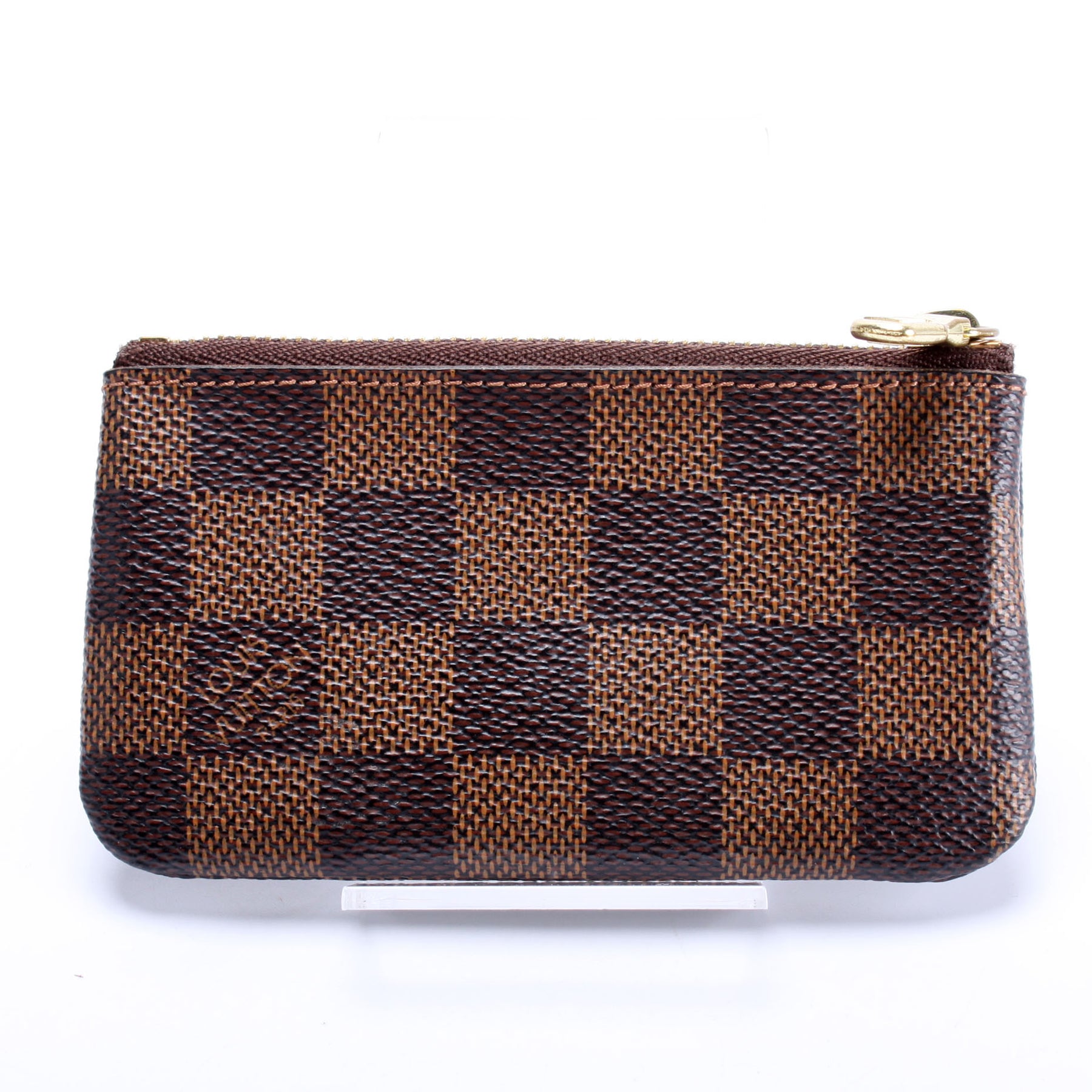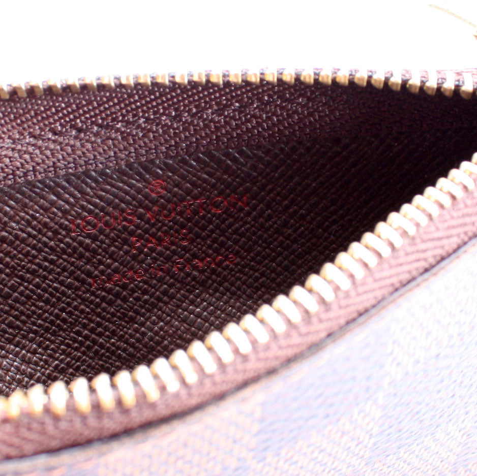 This pre-owned Louis Vuitton Pochette Cles is guaranteed 100% authentic. The exterior is in the classic Louis Vuitton Damier Ebene coated canvas.