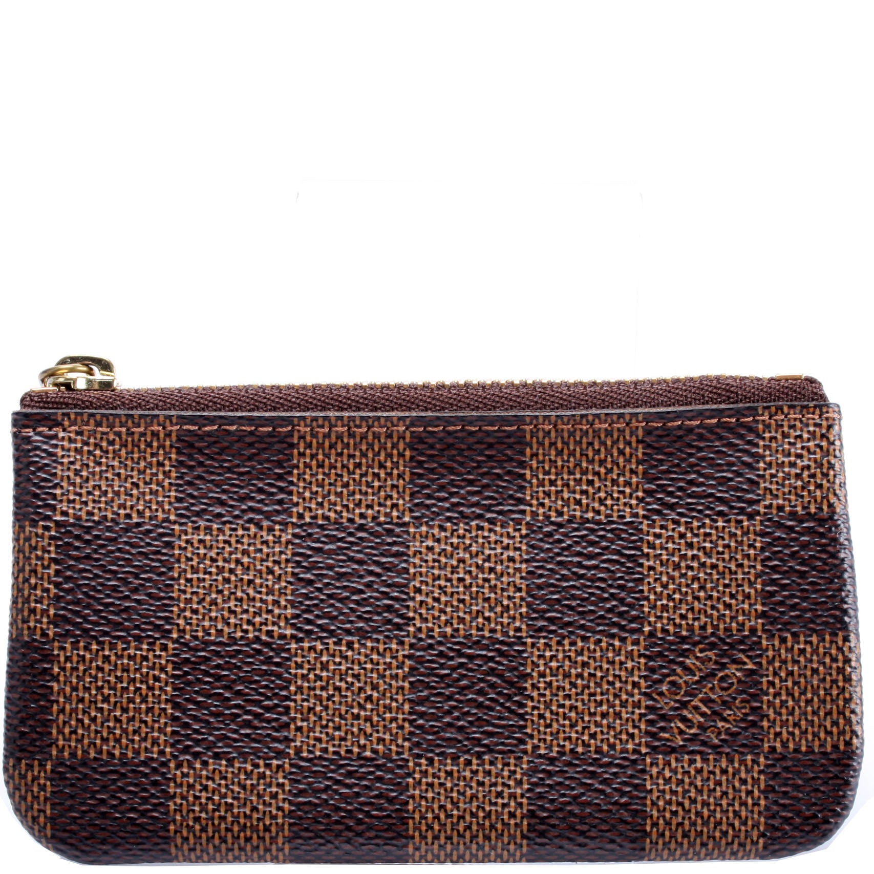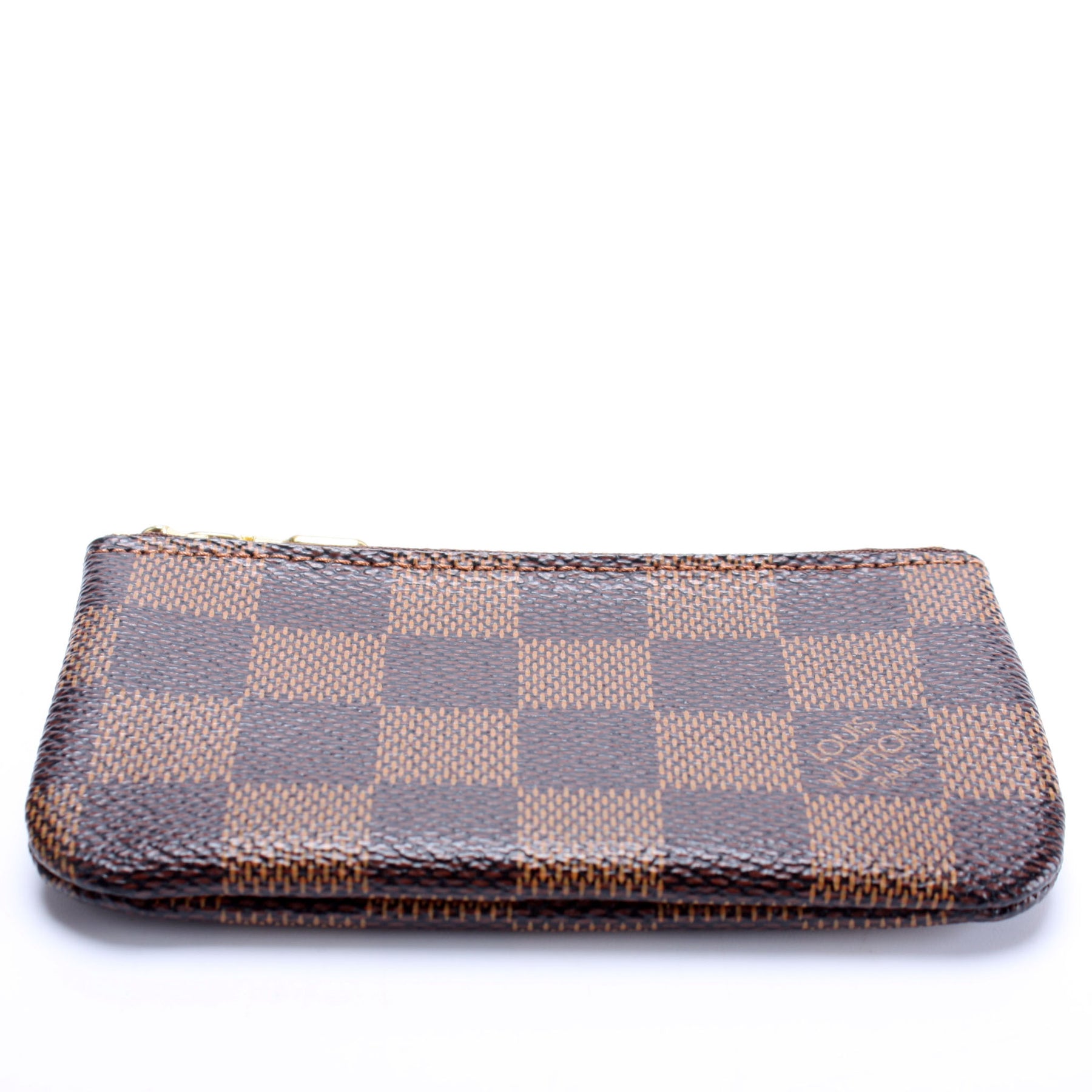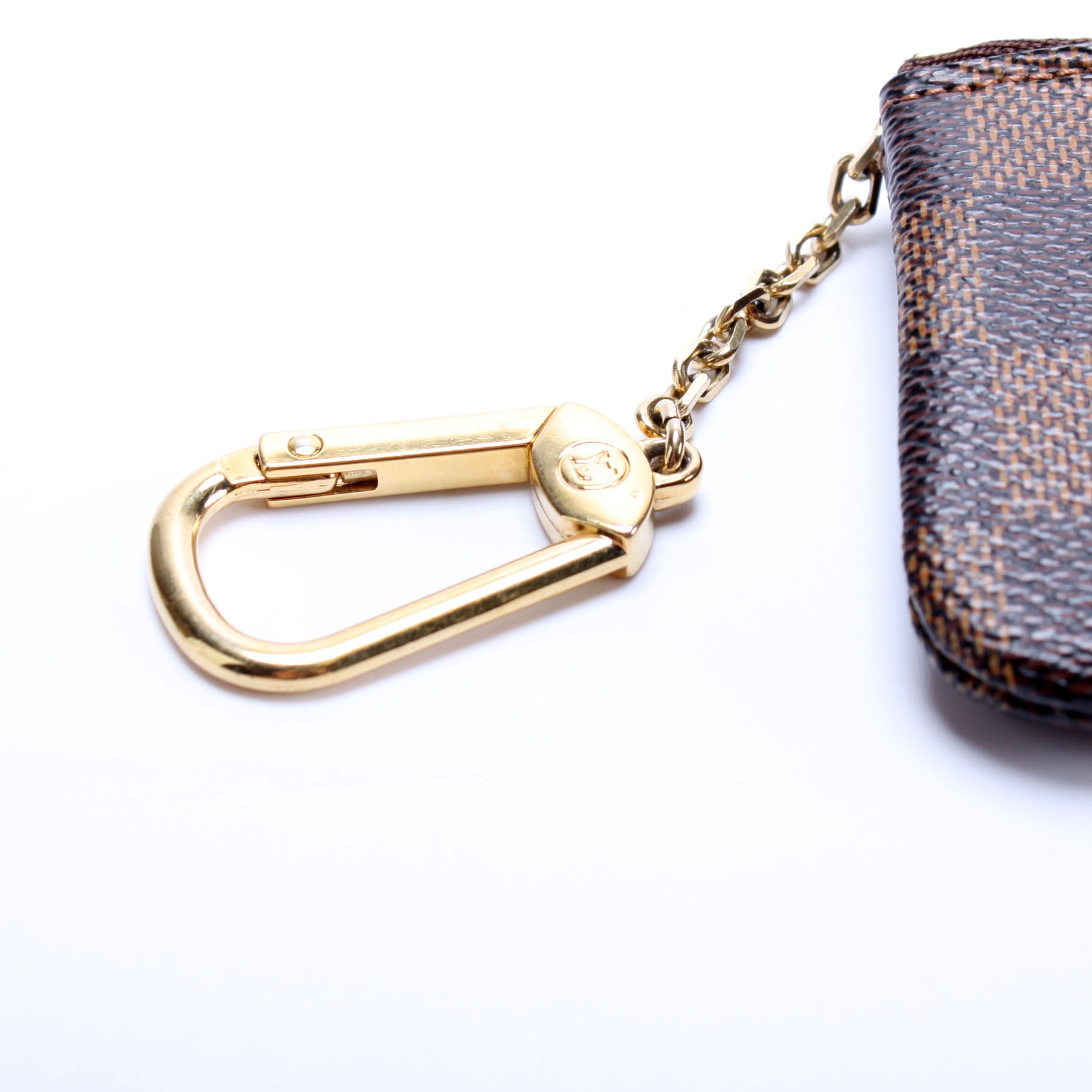 This pre-owned Louis Vuitton Pochette Cles is guaranteed 100% authentic. The exterior is in the classic Louis Vuitton Damier Ebene coated canvas.