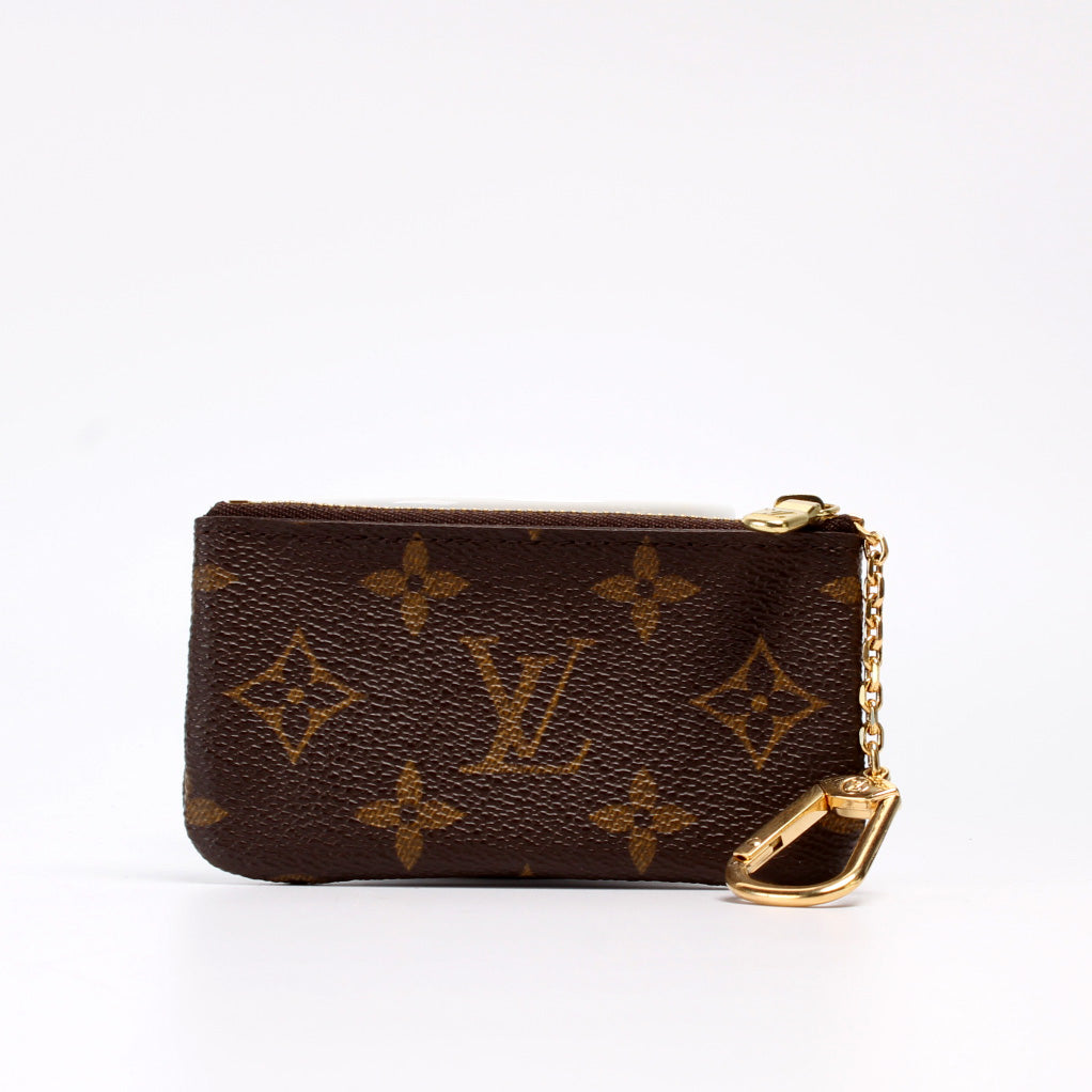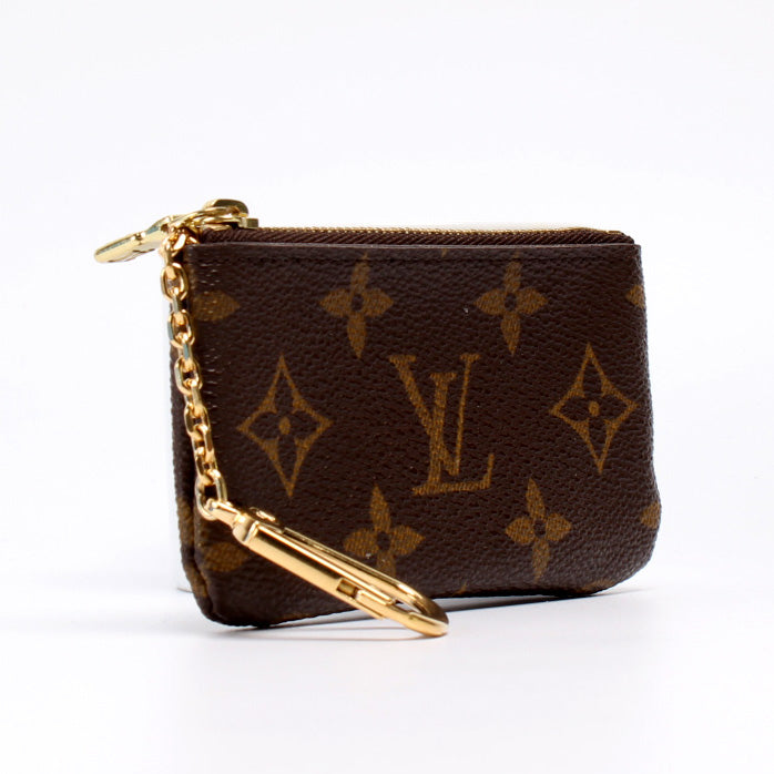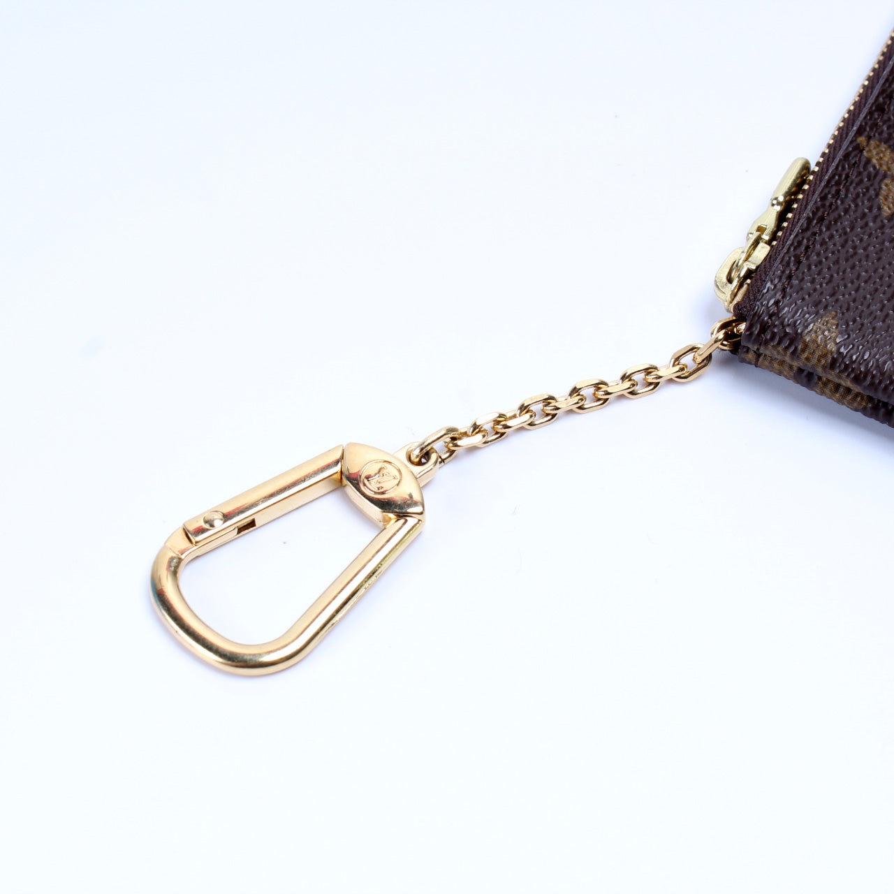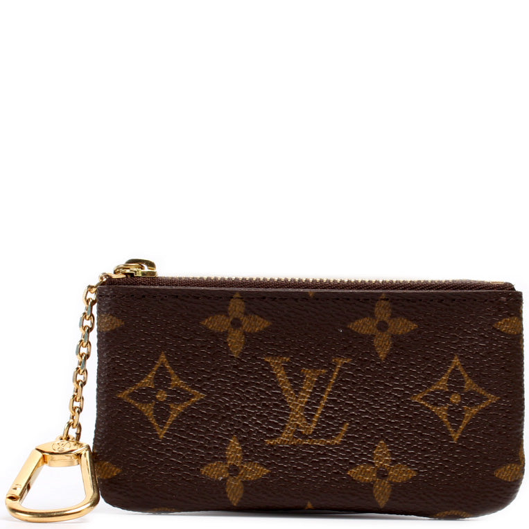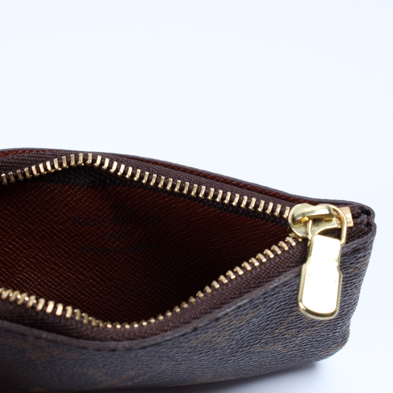 This pre-owned Louis Vuitton Pochette Cles is guaranteed 100% authentic. The exterior is in the classic Louis Vuitton Monogram coated canvas.