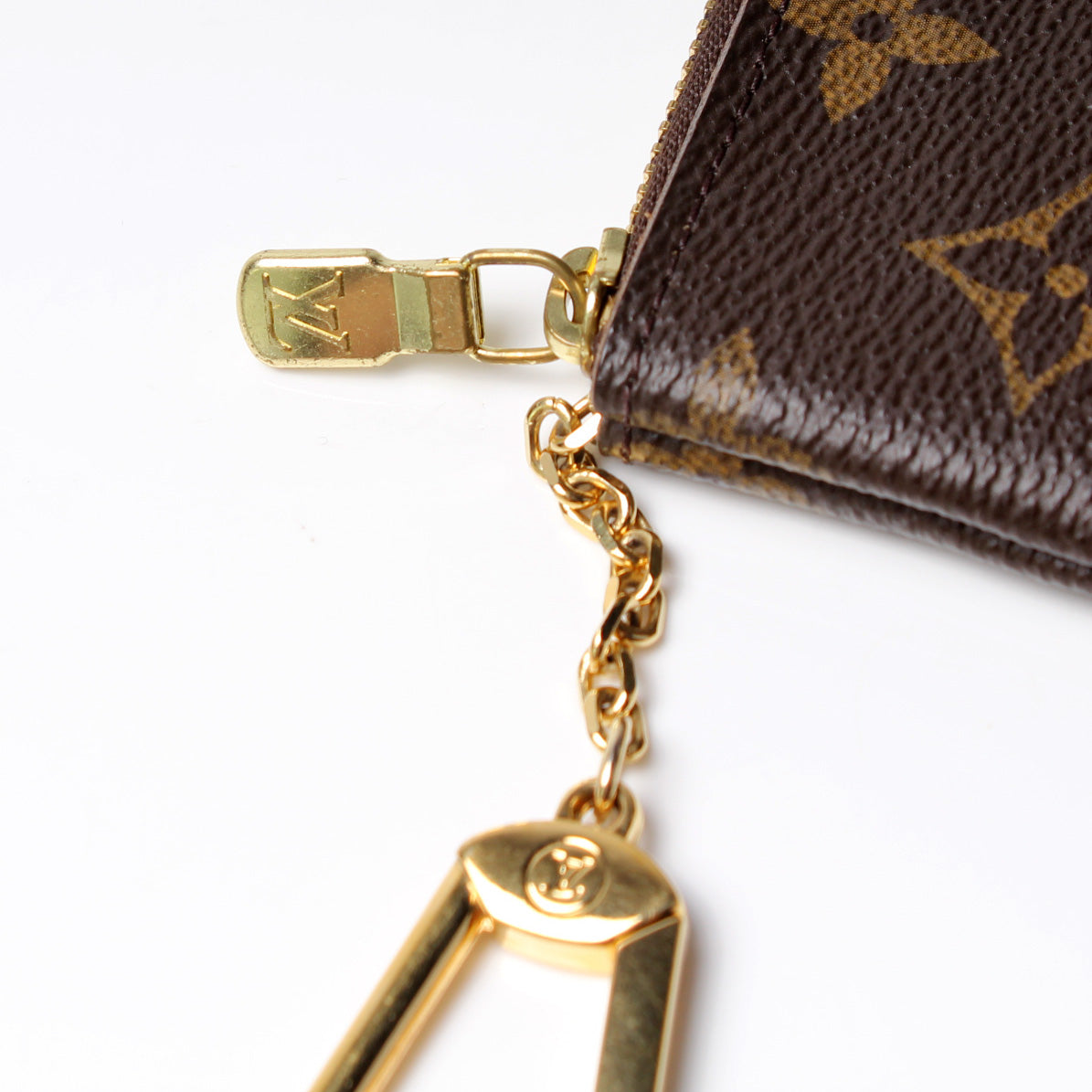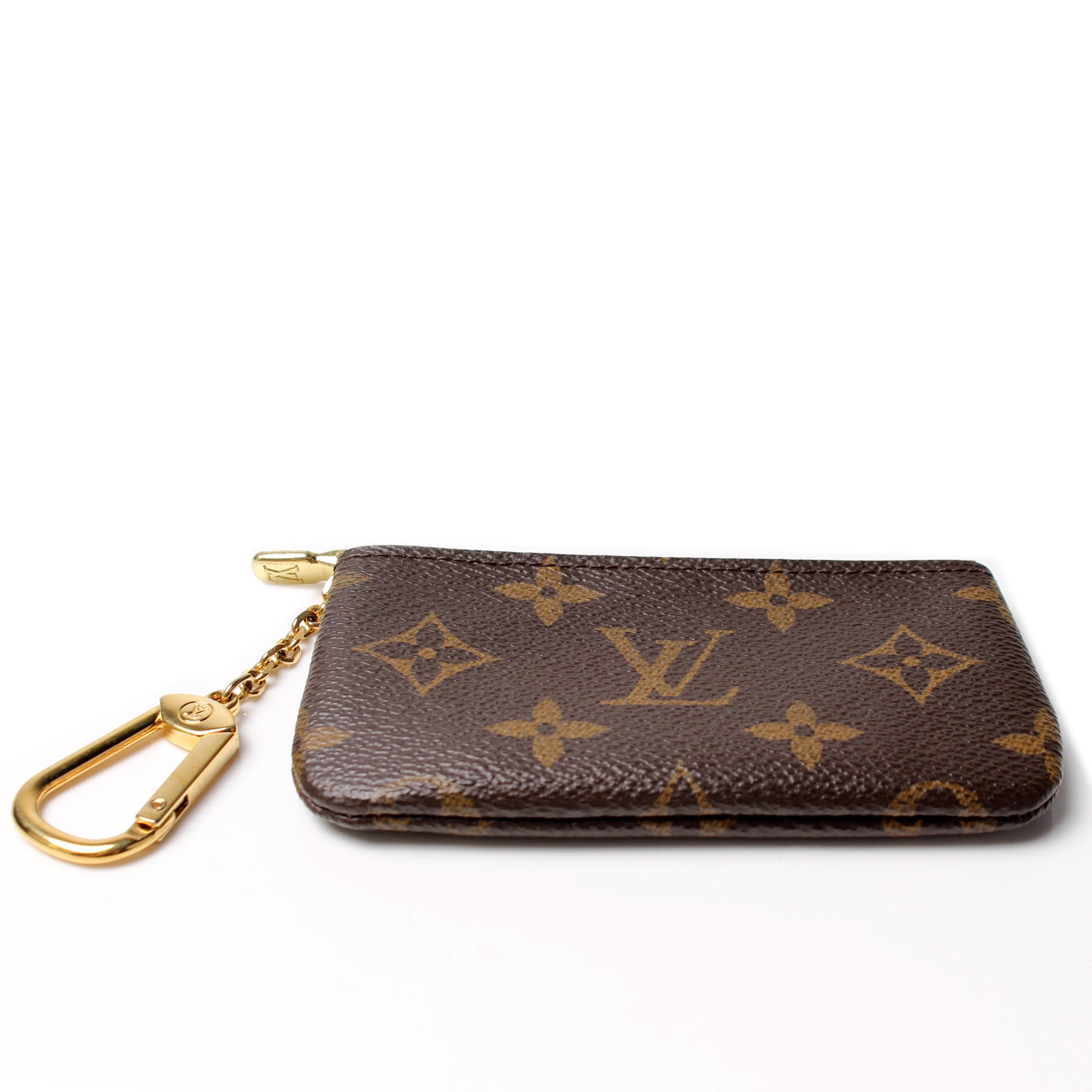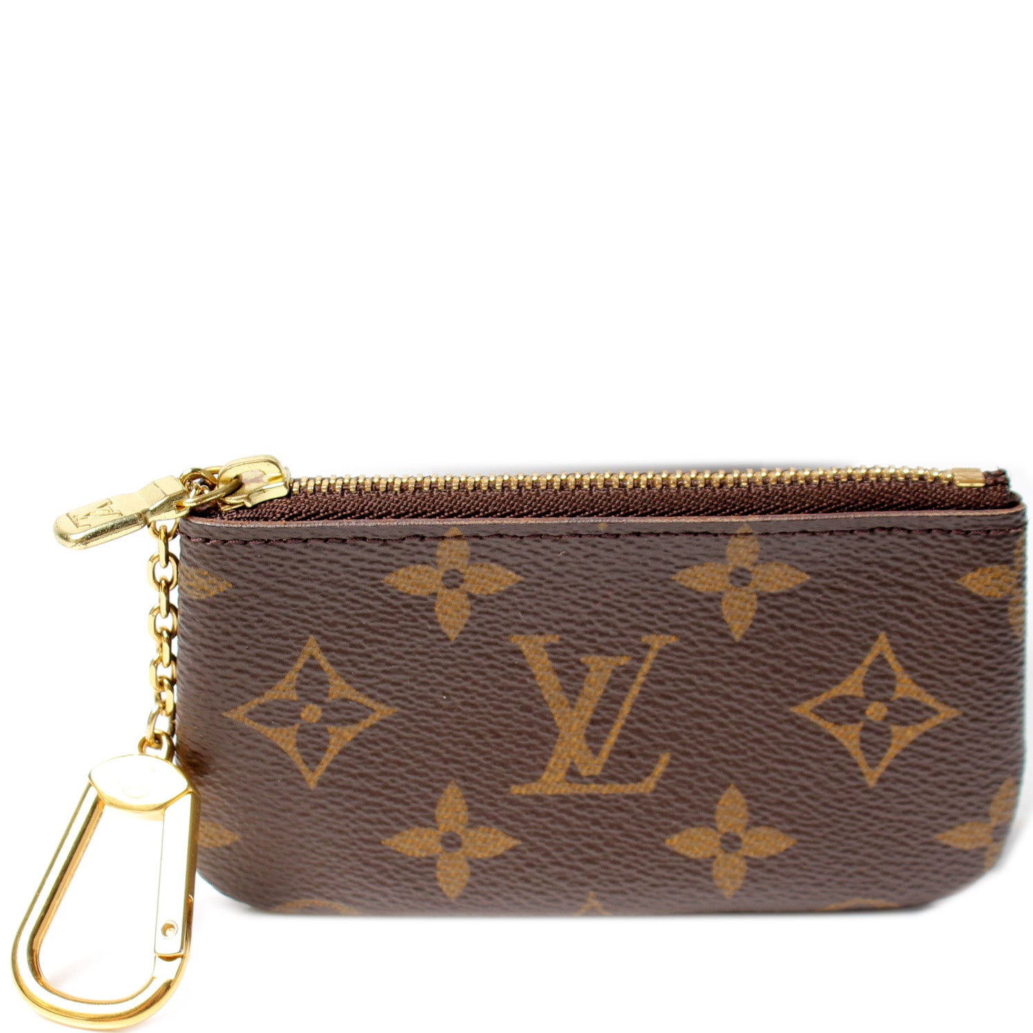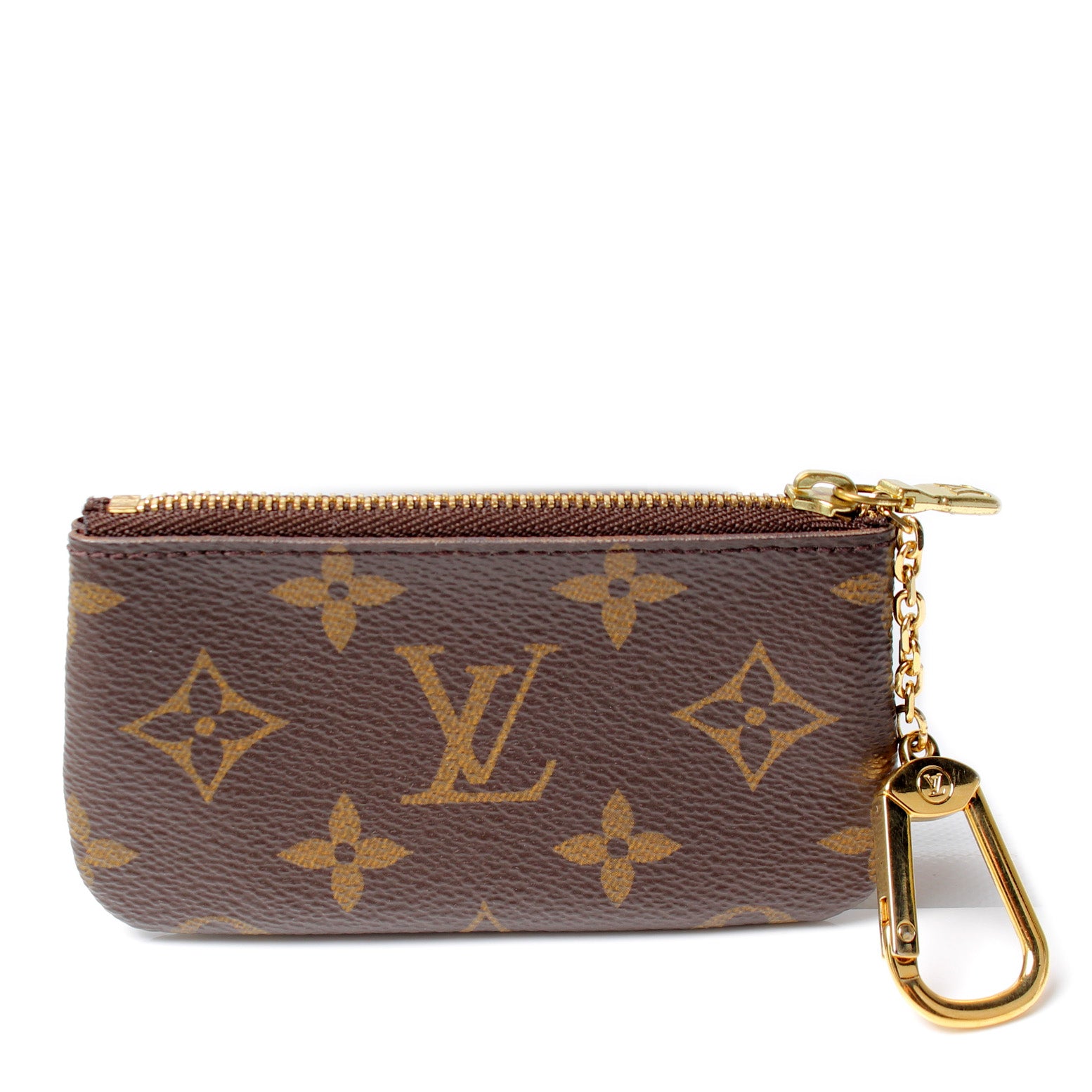 This pre-owned Louis Vuitton Pochette Cles is guaranteed 100% authentic. The exterior is in the classic Louis Vuitton Monogram coated canvas.