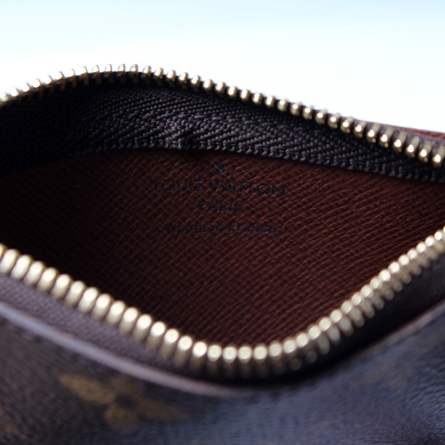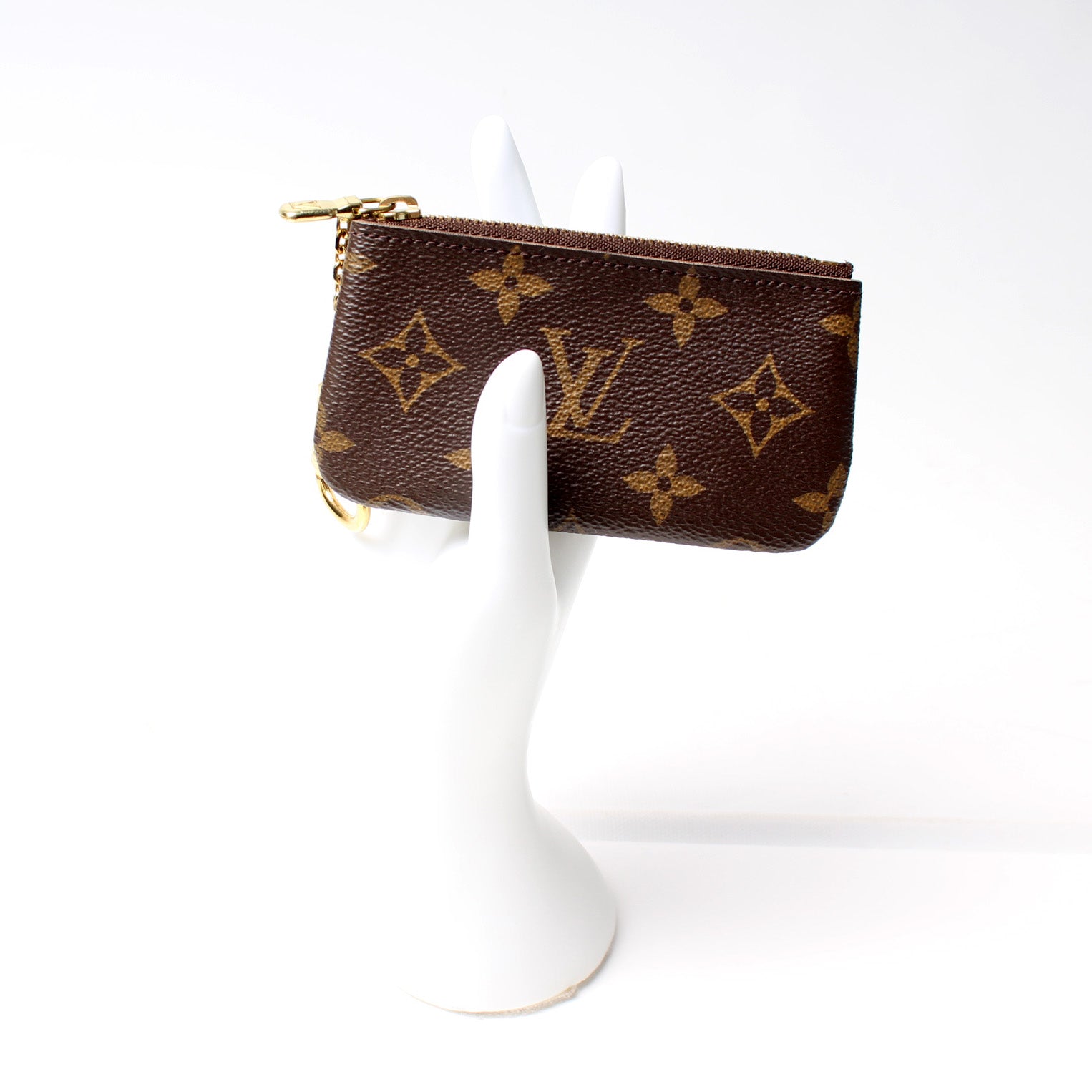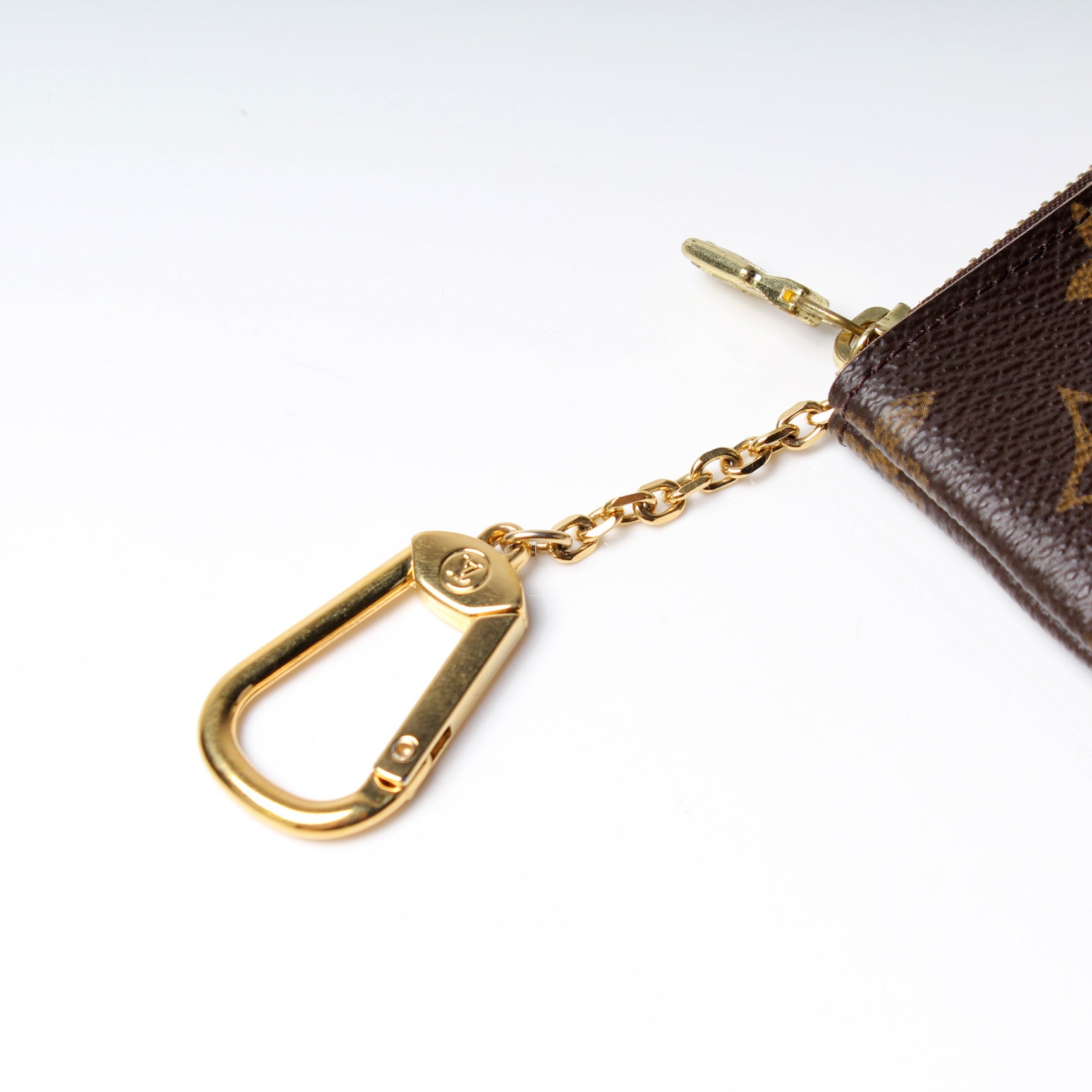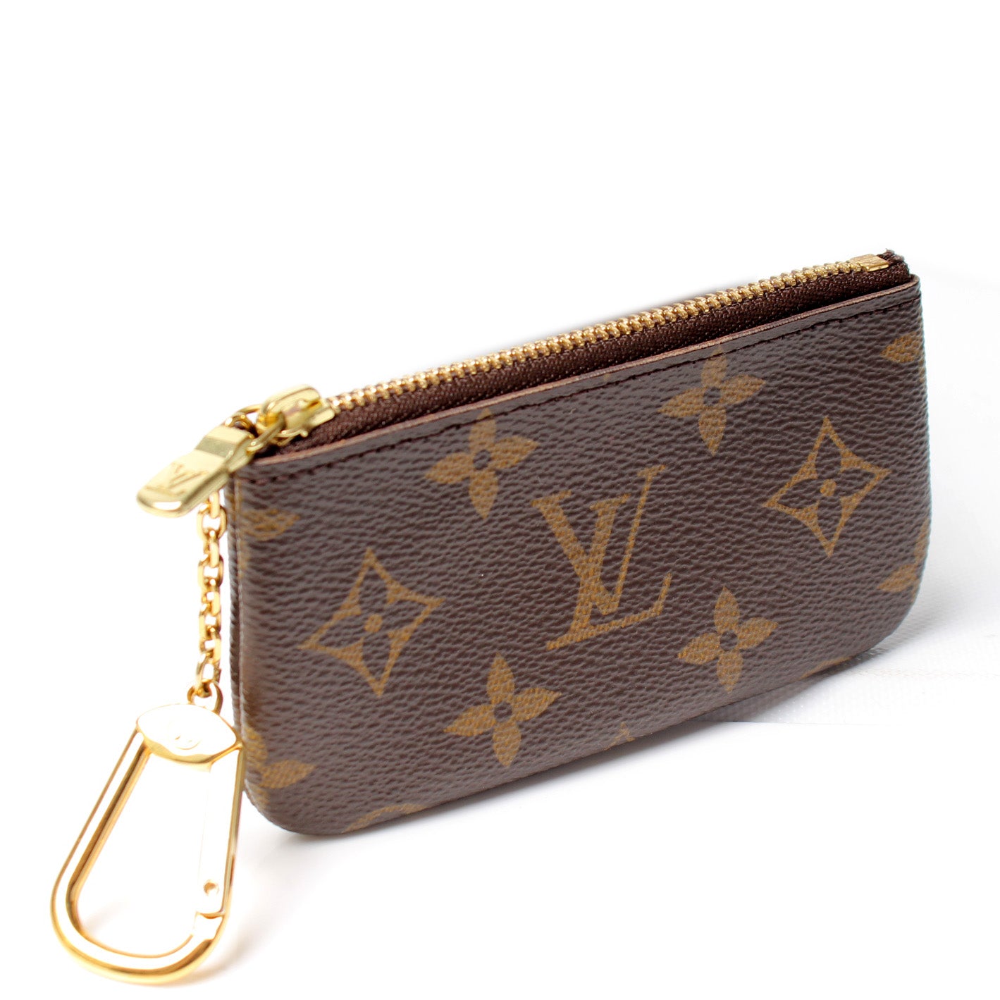This pre-owned Louis Vuitton Pochette Cles is guaranteed 100% authentic. The exterior is in the classic Louis Vuitton Monogram coated canvas.