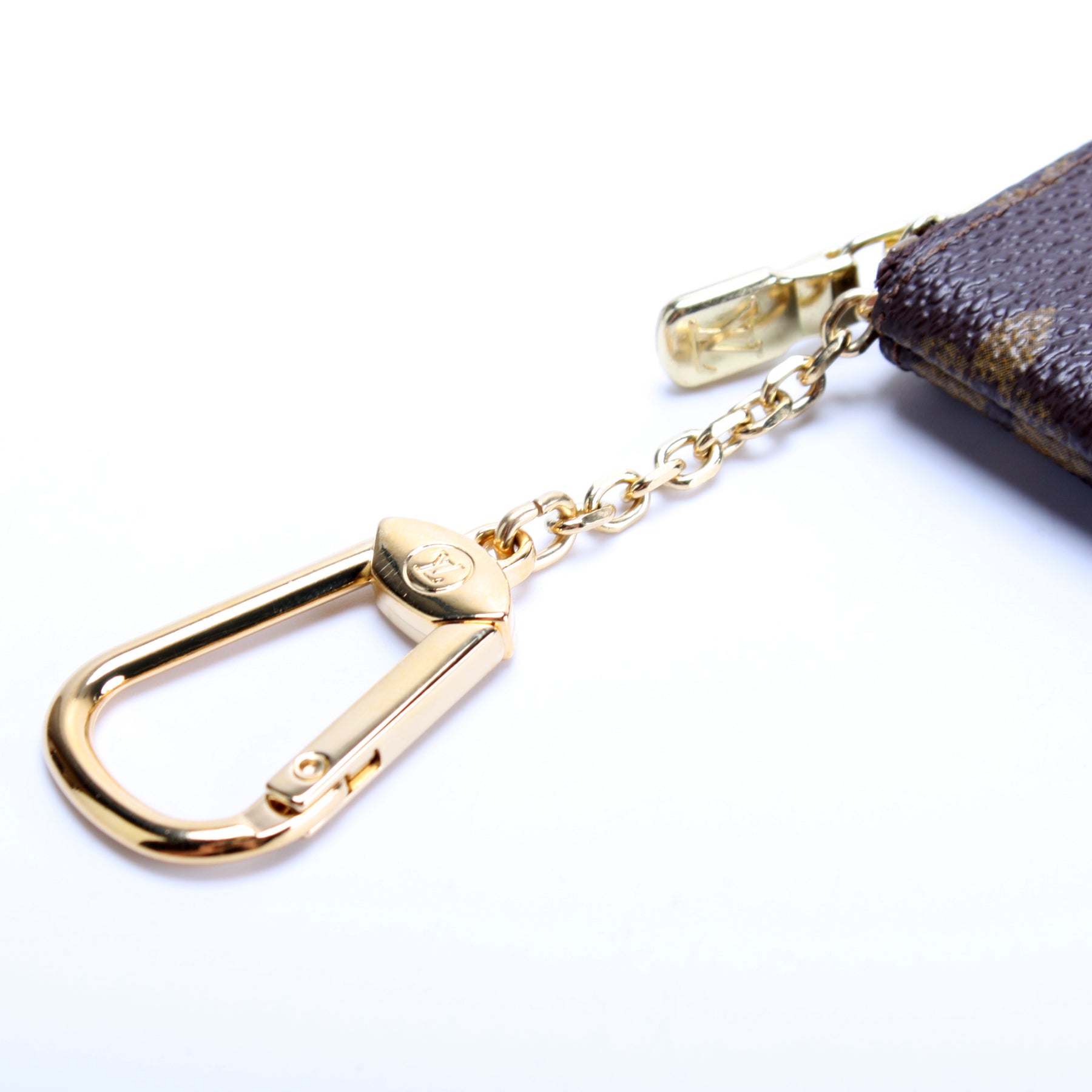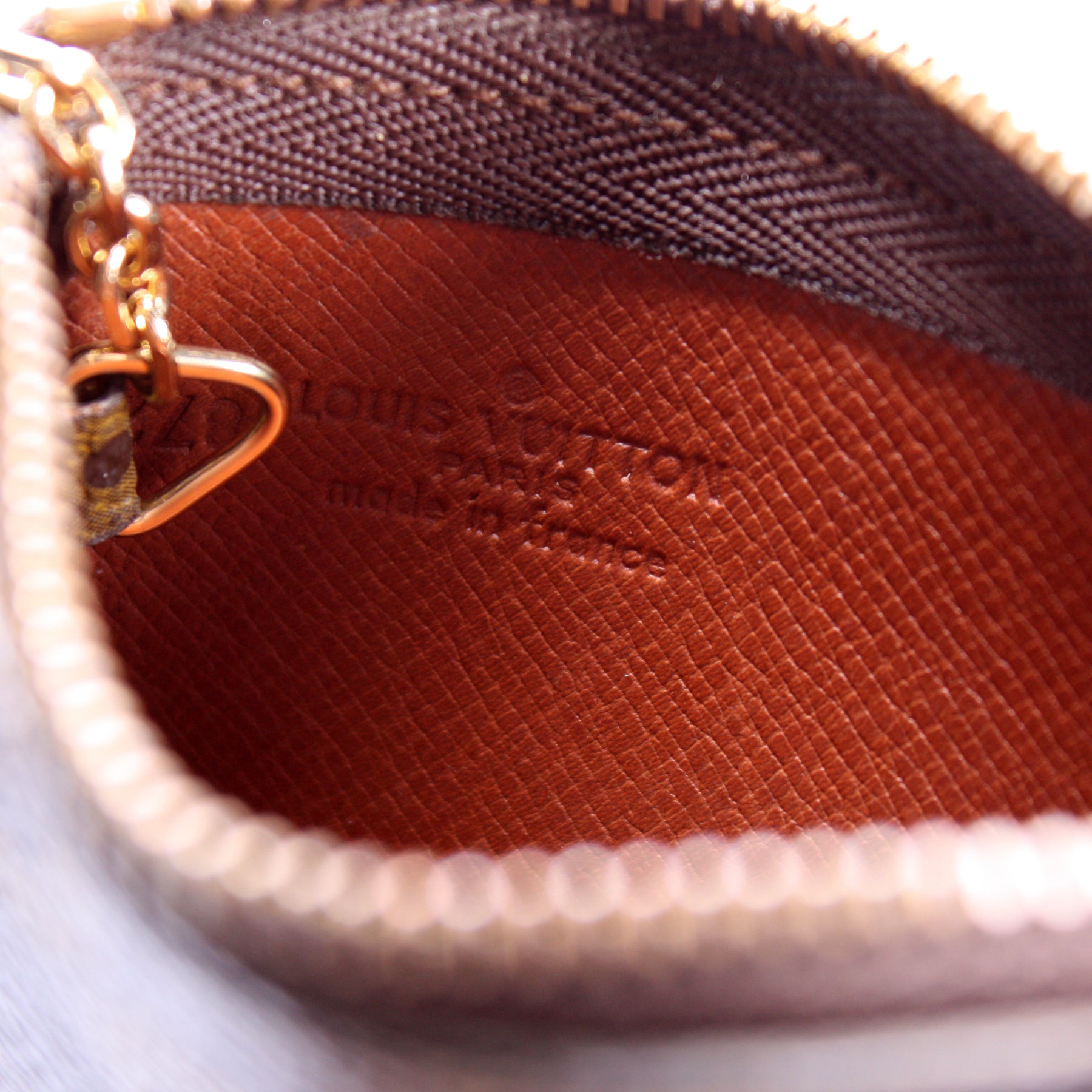 This pre-owned Louis Vuitton Pochette Cles is guaranteed 100% authentic. The exterior is in the classic Louis Vuitton Monogram coated canvas.