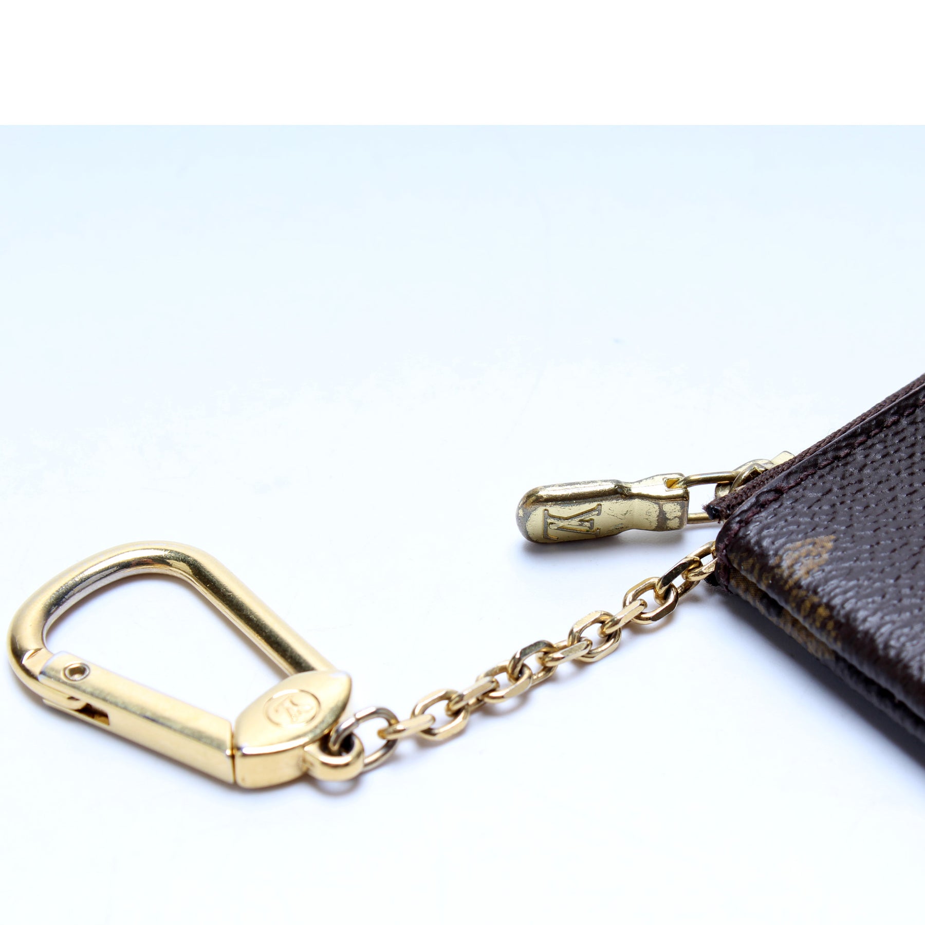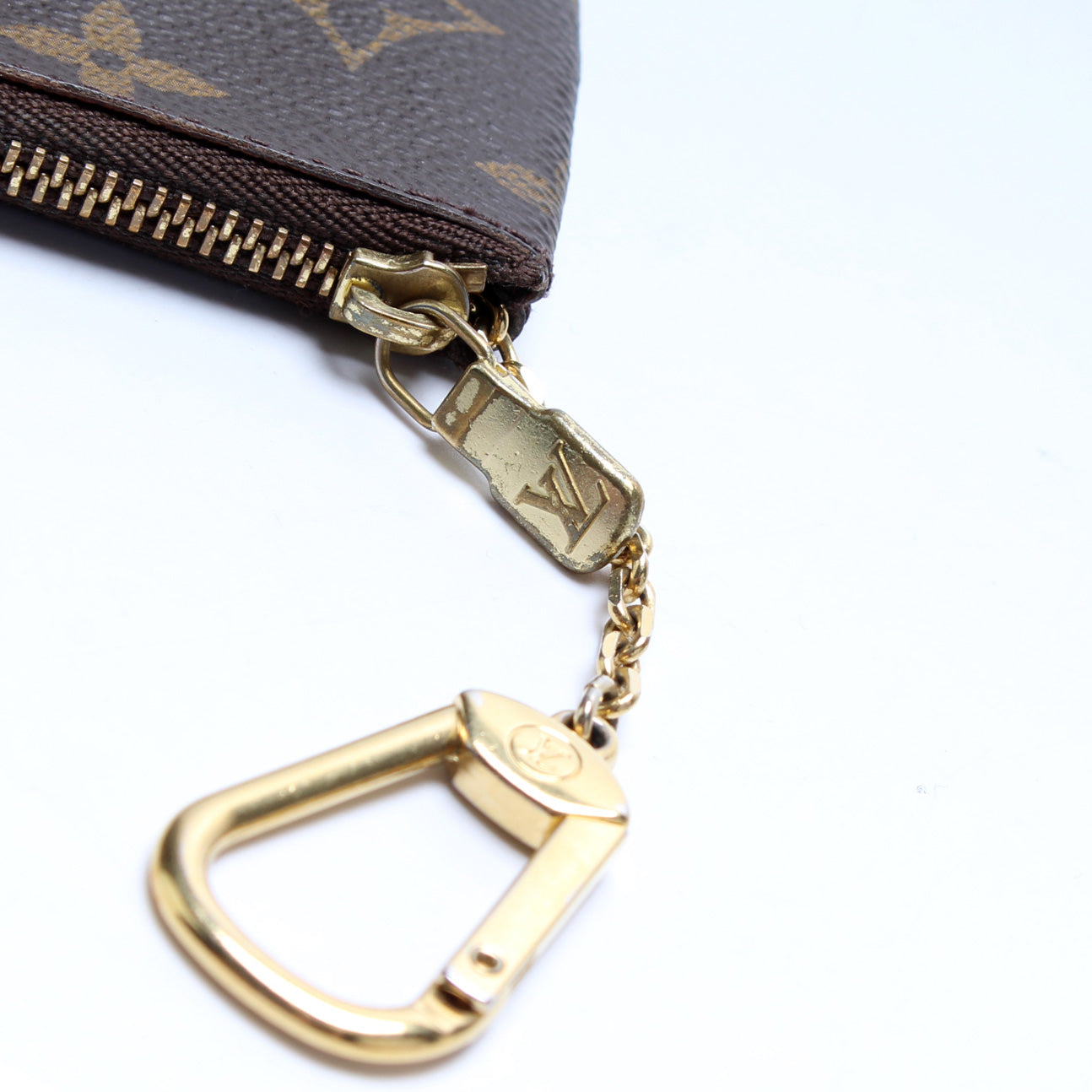This pre-owned Louis Vuitton Pochette Cles is guaranteed 100% authentic. The exterior is in the classic Louis Vuitton Monogram coated canvas.