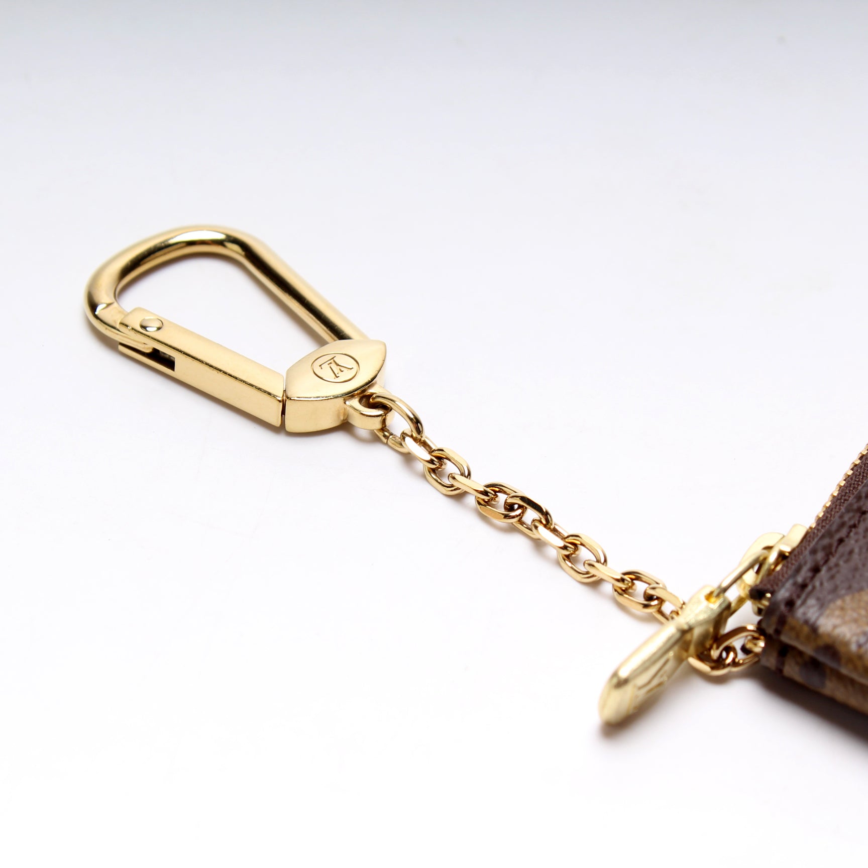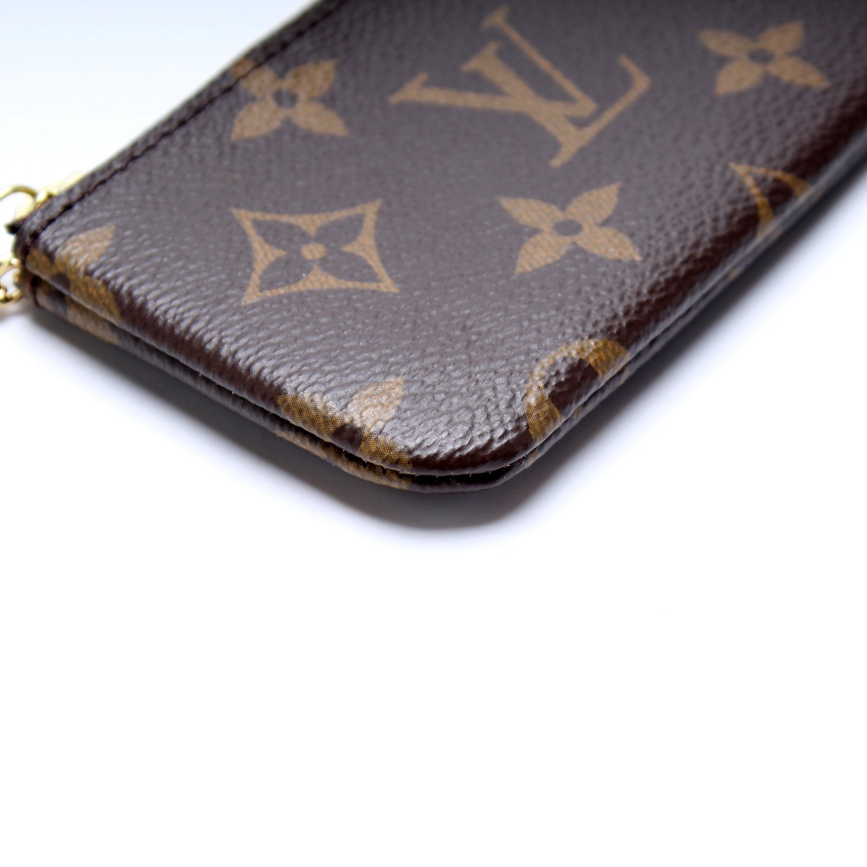 This pre-owned Louis Vuitton Pochette Cles is guaranteed 100% authentic. The exterior is in the classic Louis Vuitton Monogram coated canvas.