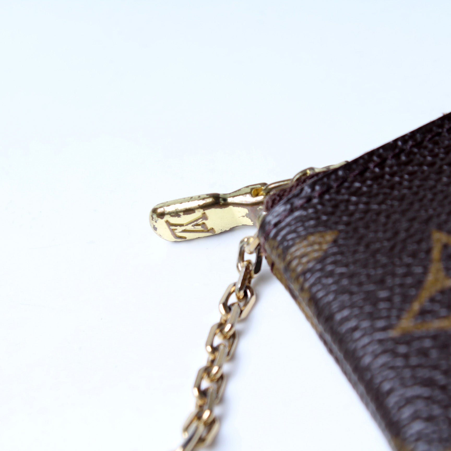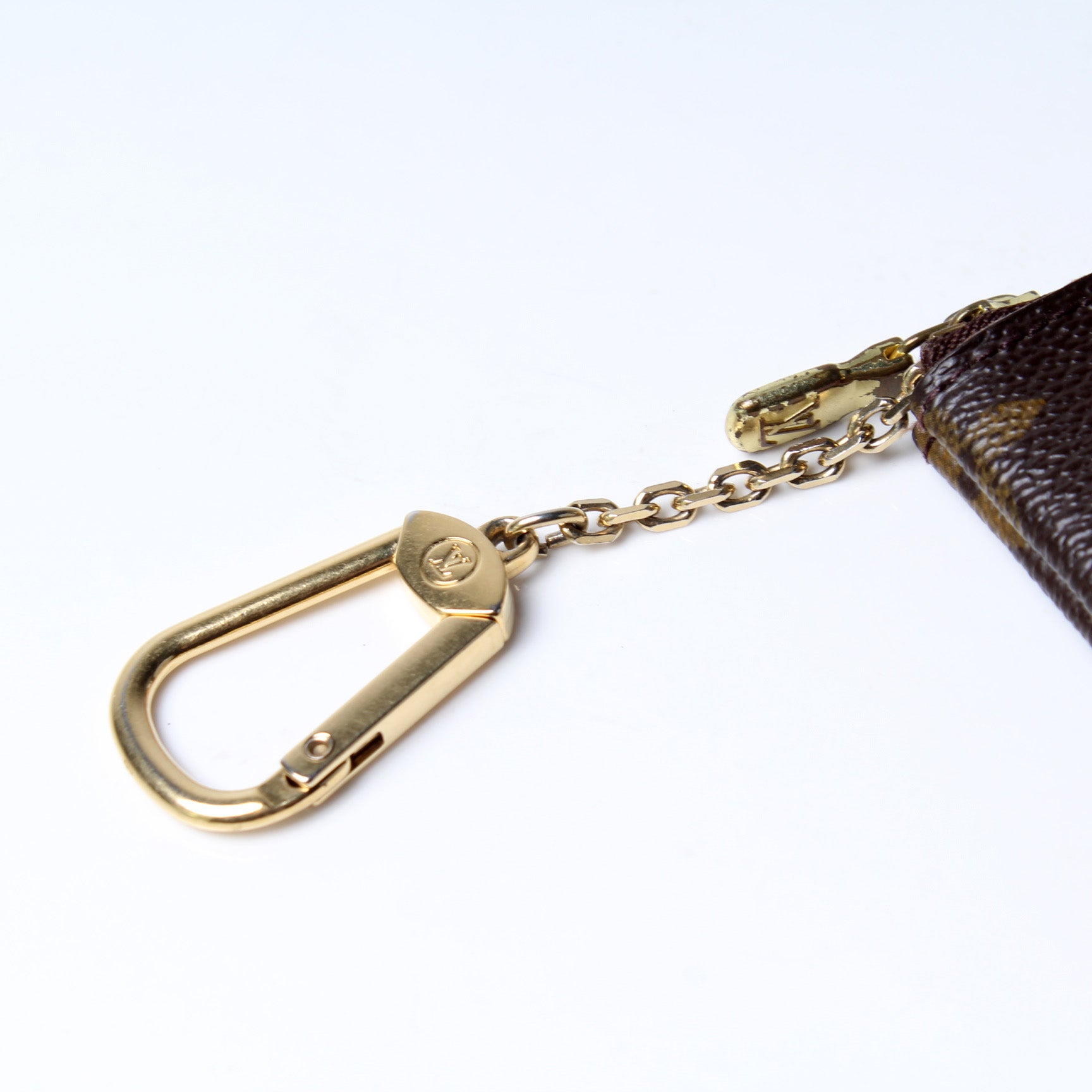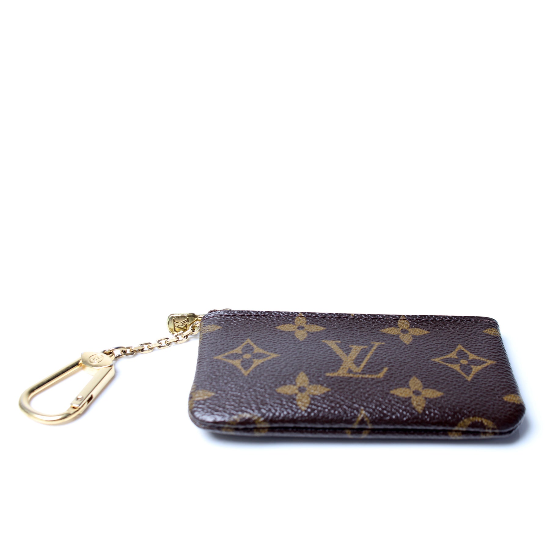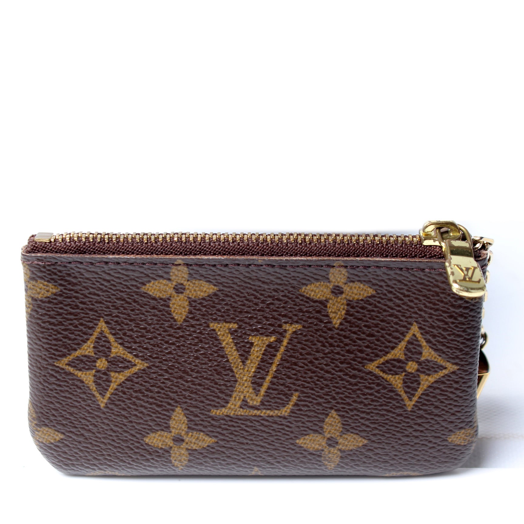 This pre-owned Louis Vuitton Pochette Cles is guaranteed 100% authentic. The exterior is in the classic Louis Vuitton Monogram coated canvas.