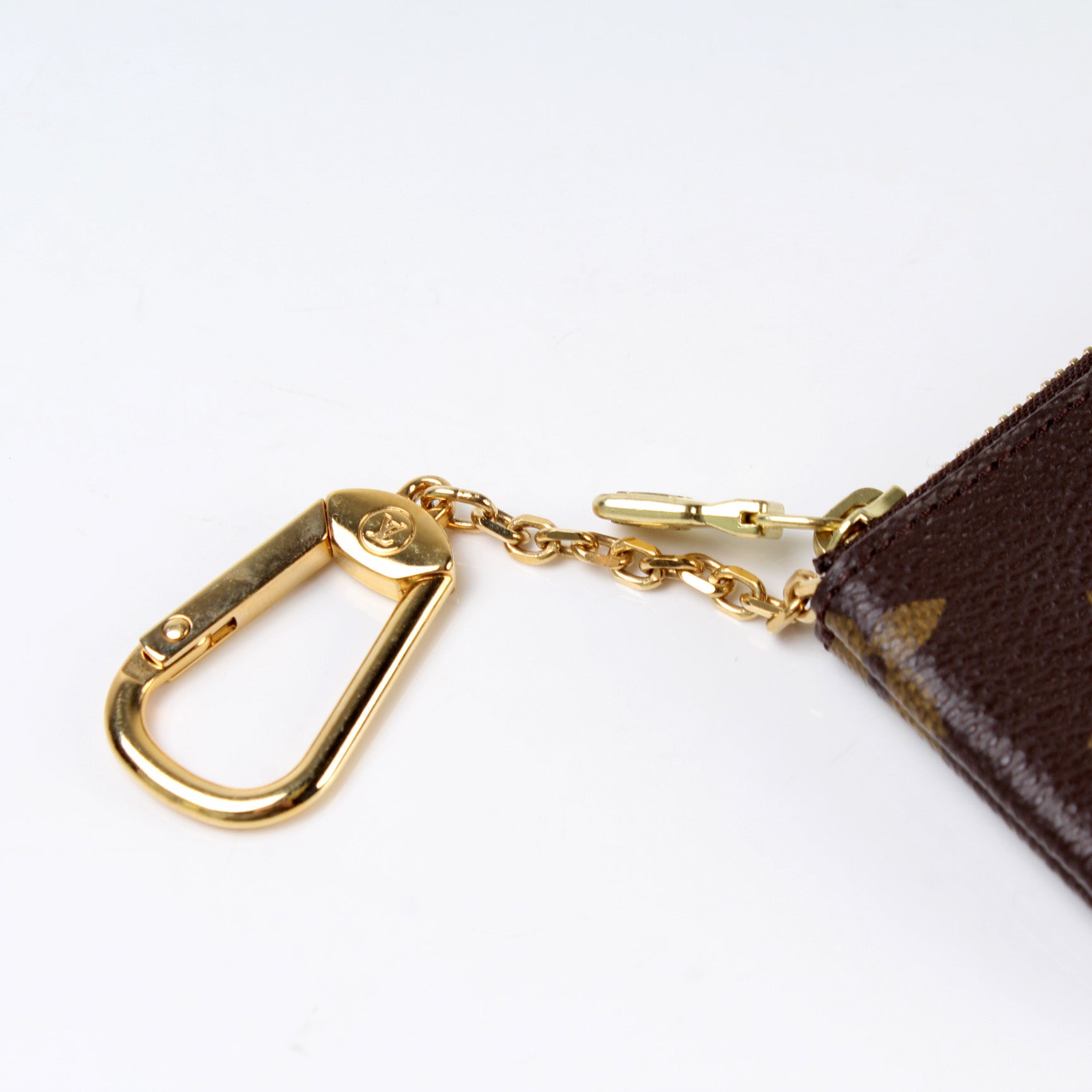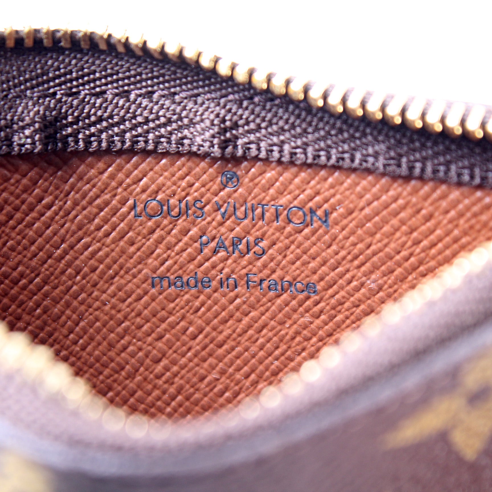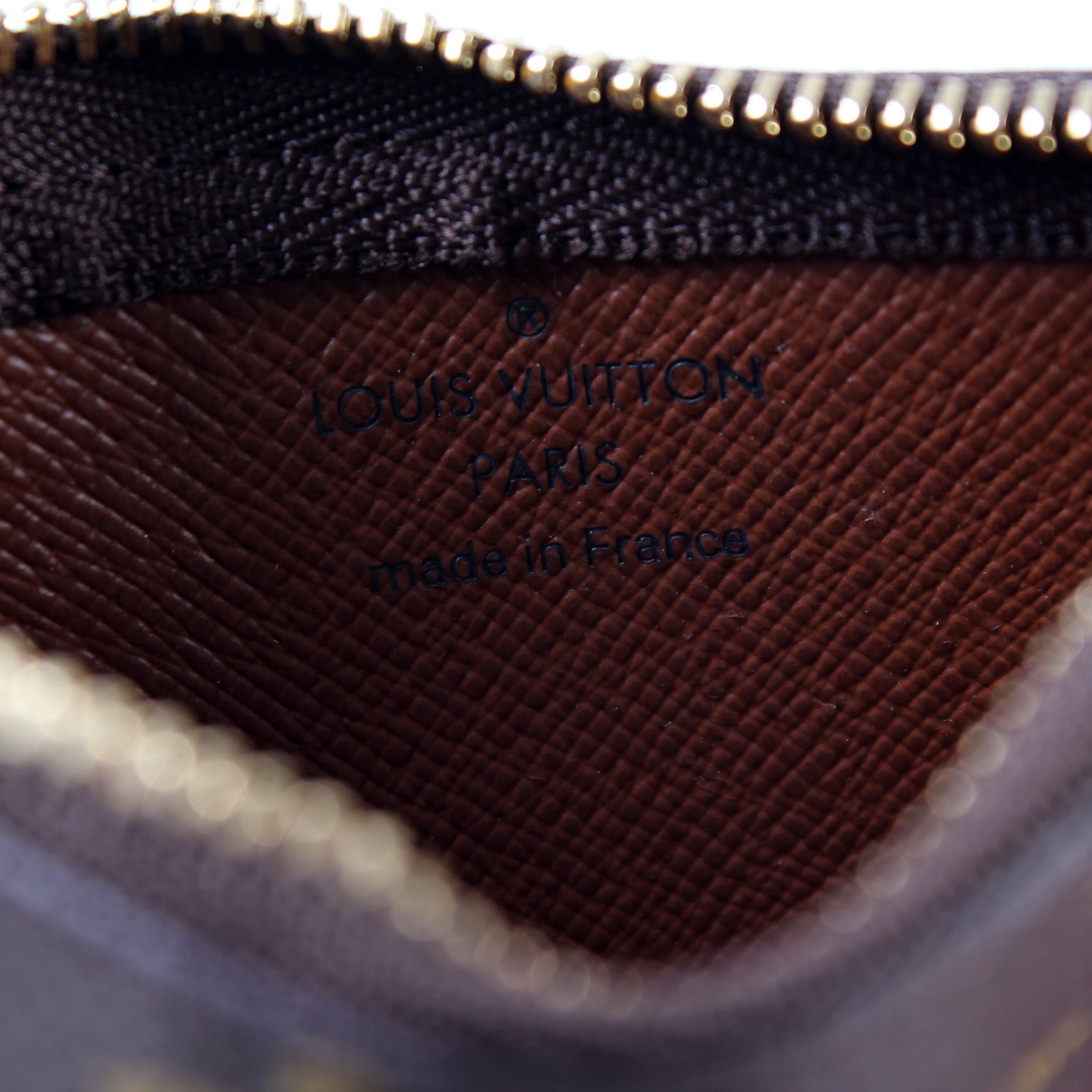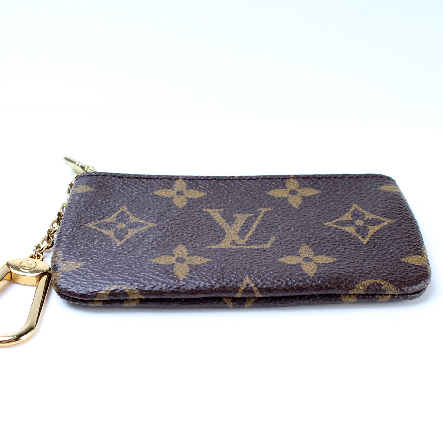 This pre-owned Louis Vuitton Pochette Cles is guaranteed 100% authentic. The exterior is in the classic Louis Vuitton Monogram coated canvas.