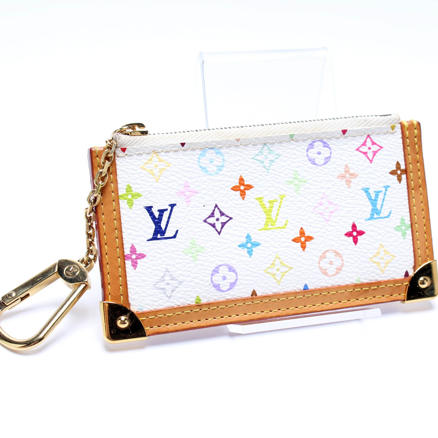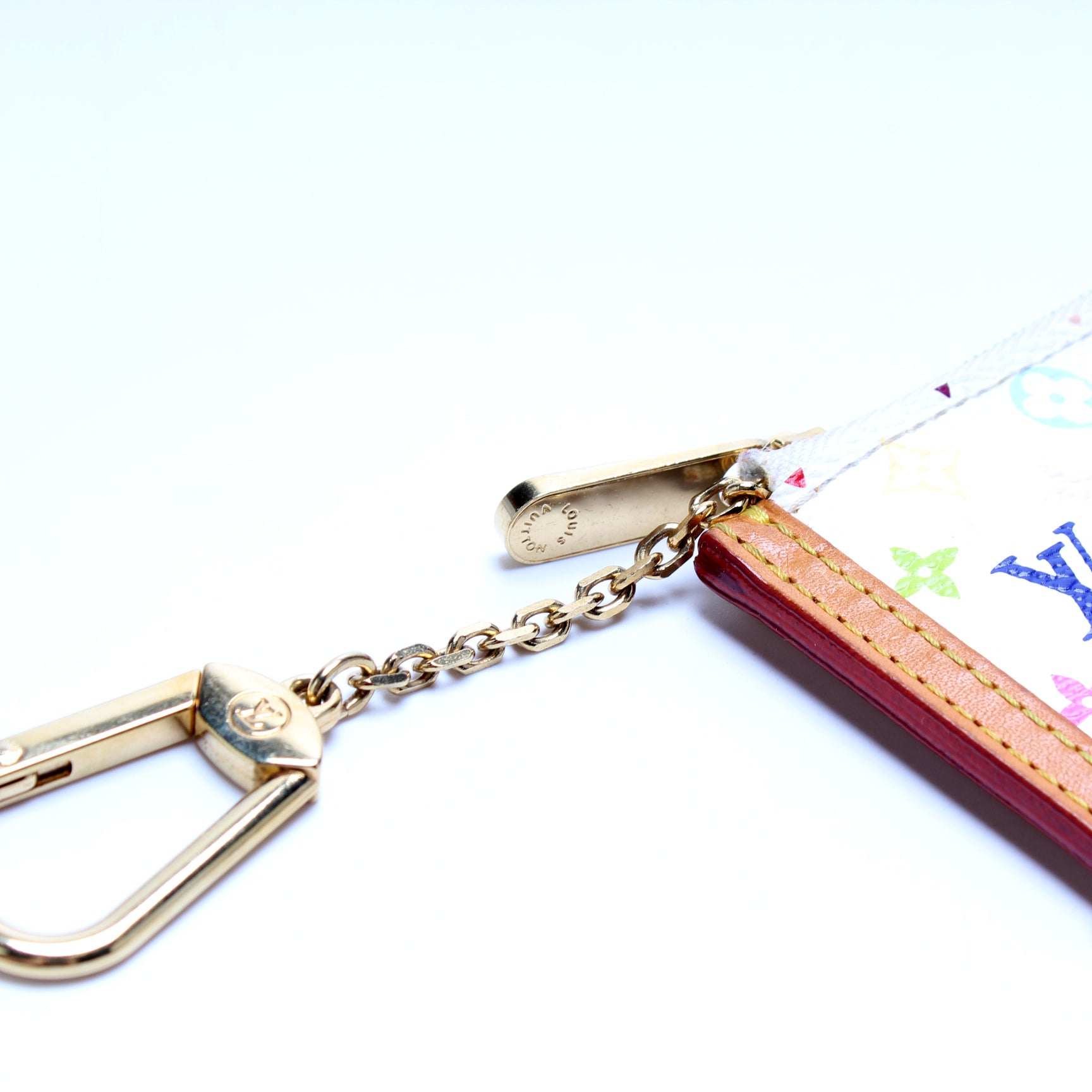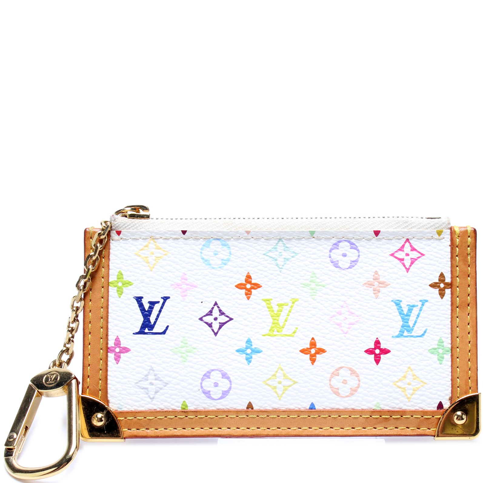 This pre-owned Louis Vuitton Pochette Cles is guaranteed 100% authentic. The exterior is in the classic Louis Vuitton Multicolor Monogram coated canvas.