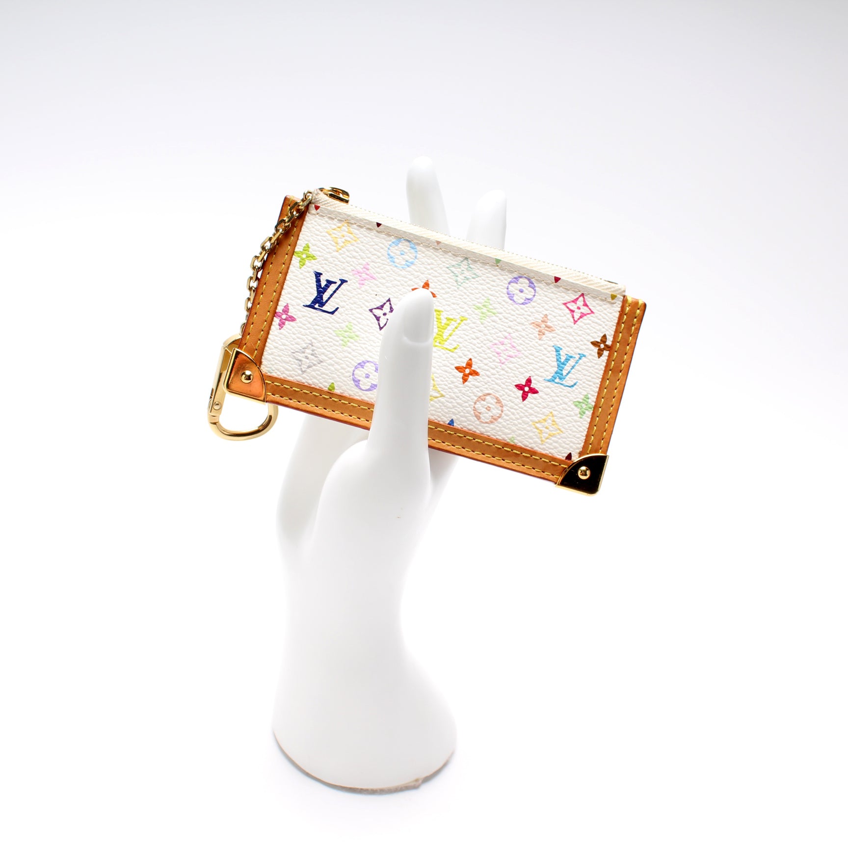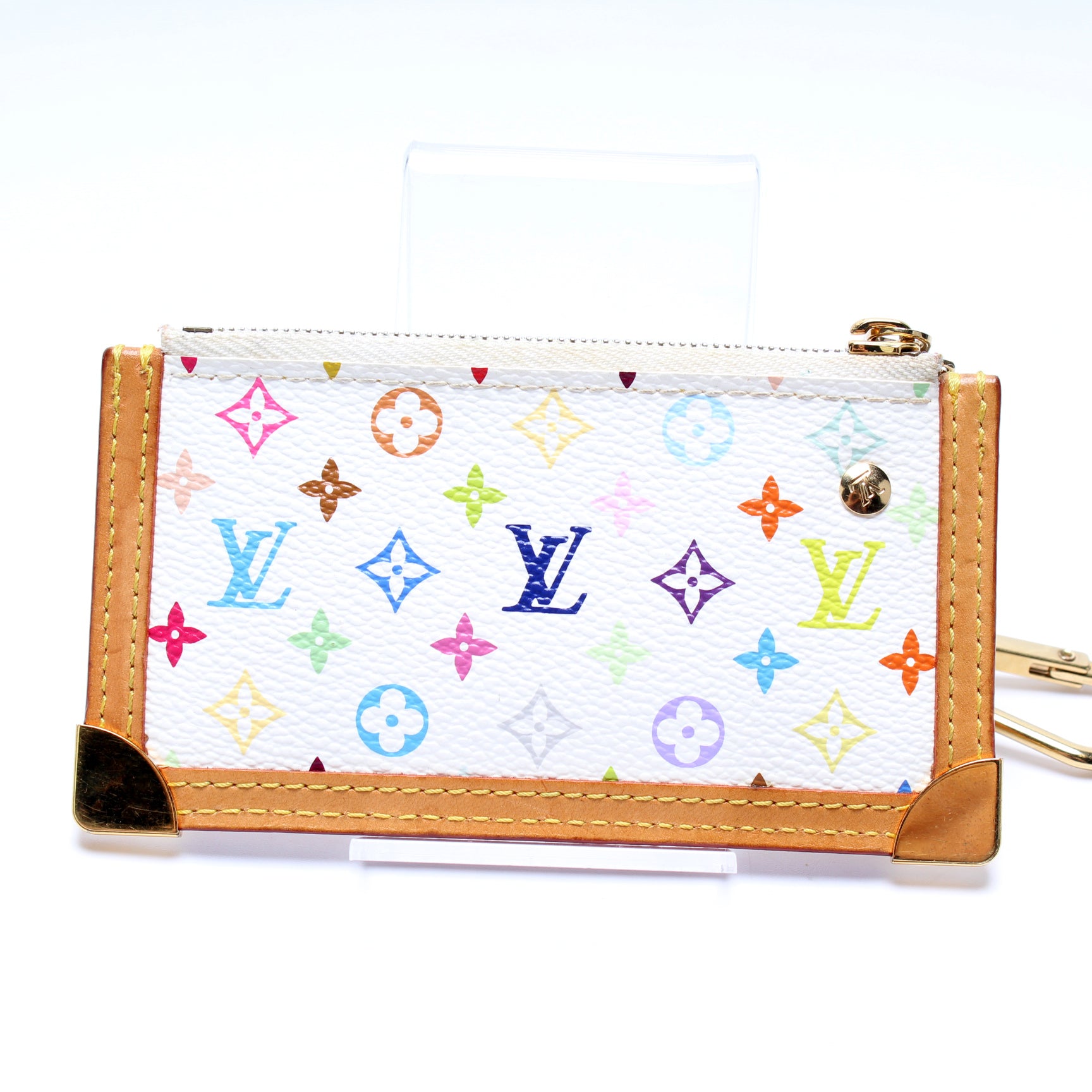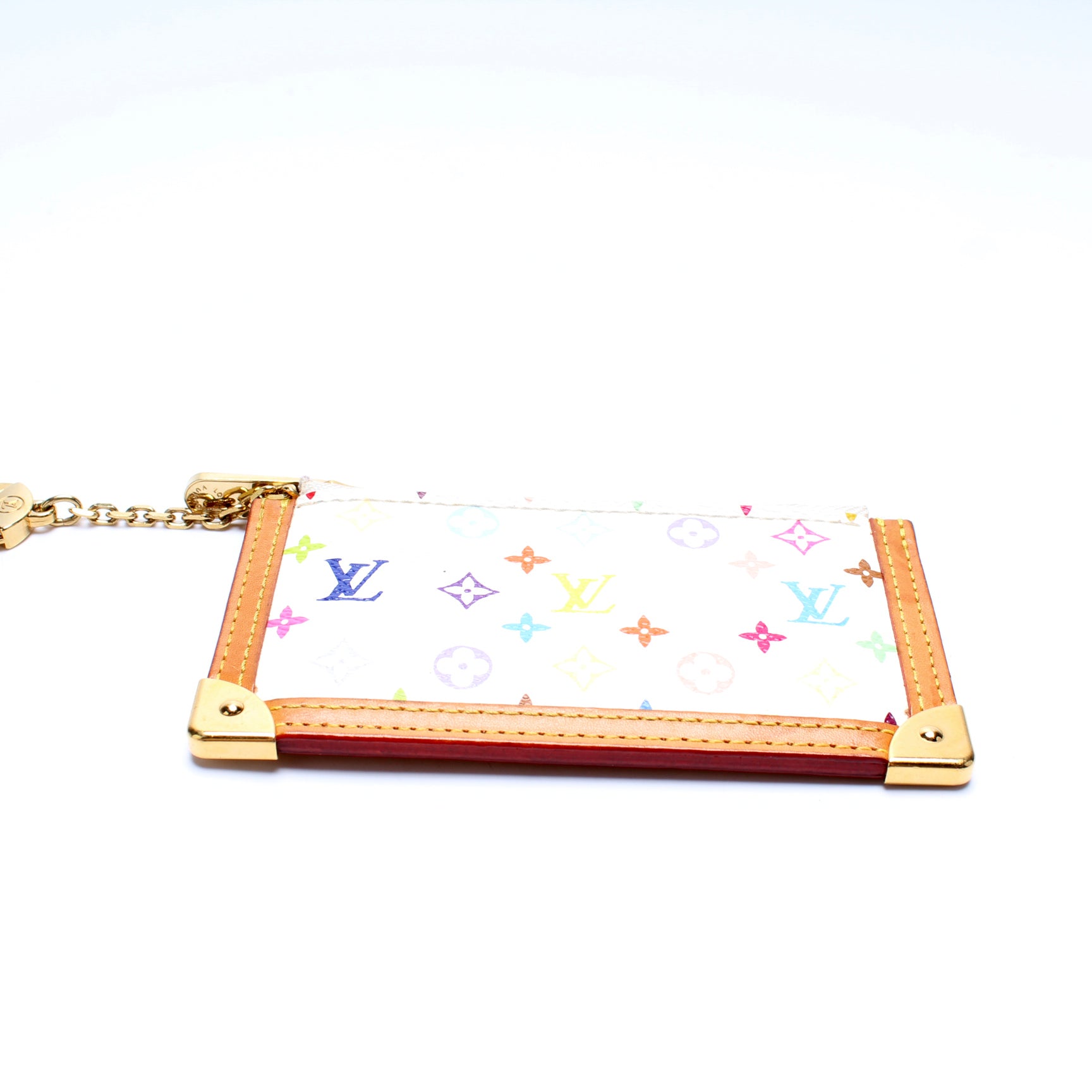 This pre-owned Louis Vuitton Pochette Cles is guaranteed 100% authentic. The exterior is in the classic Louis Vuitton Multicolor Monogram coated canvas.
