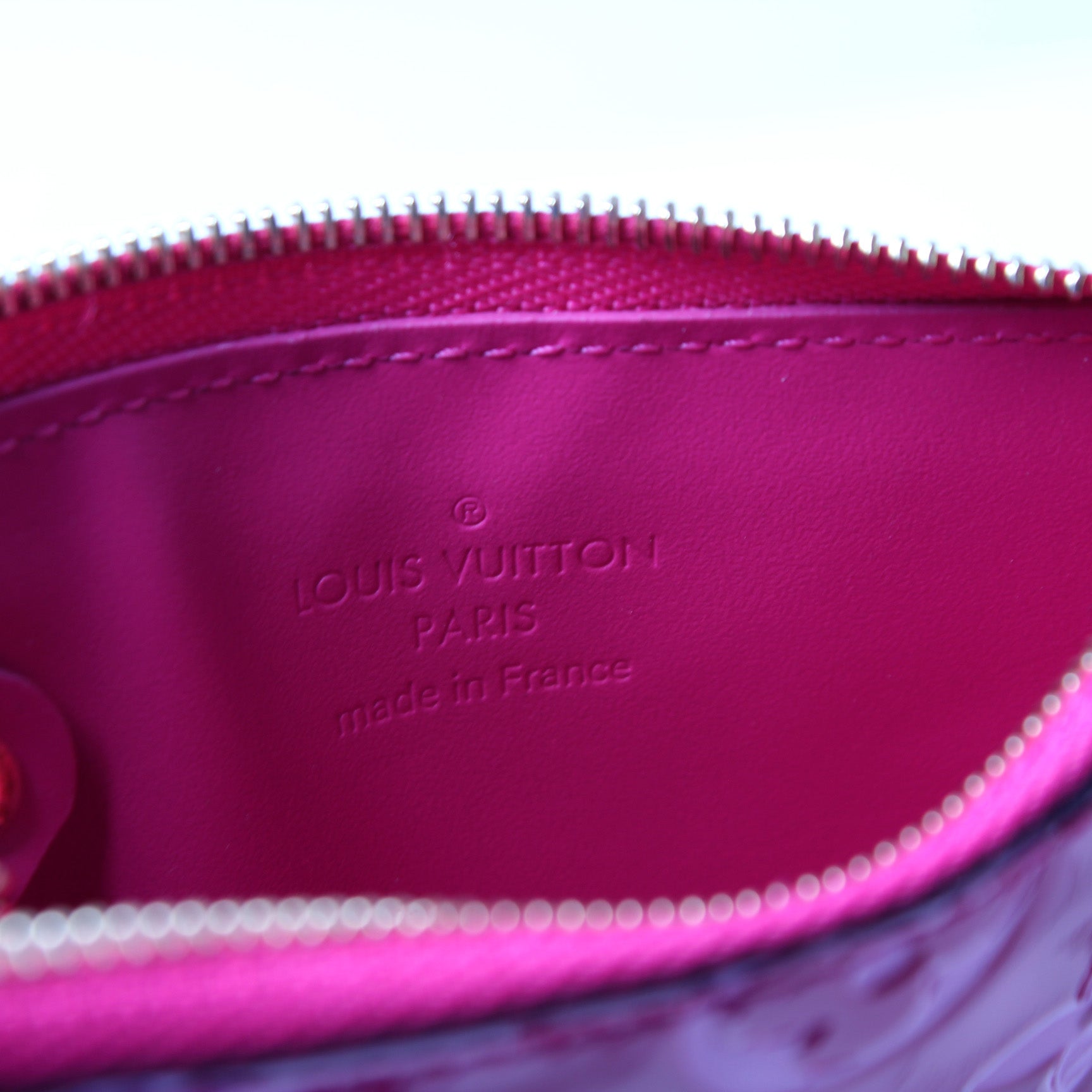 Exterior: The exterior Vernis leather shows no major signs of wear. The exterior is clean and free of any rips or tears.