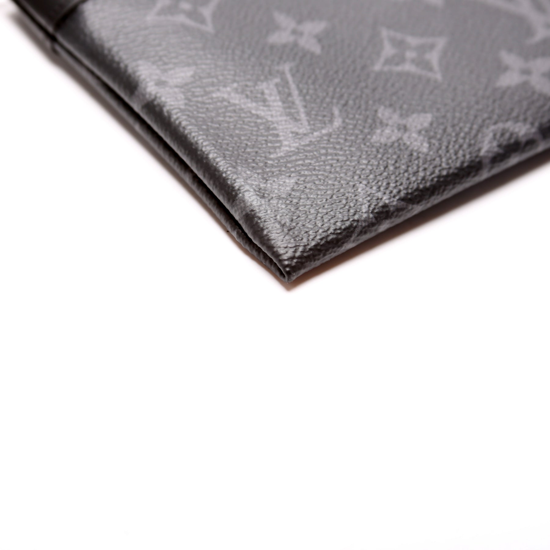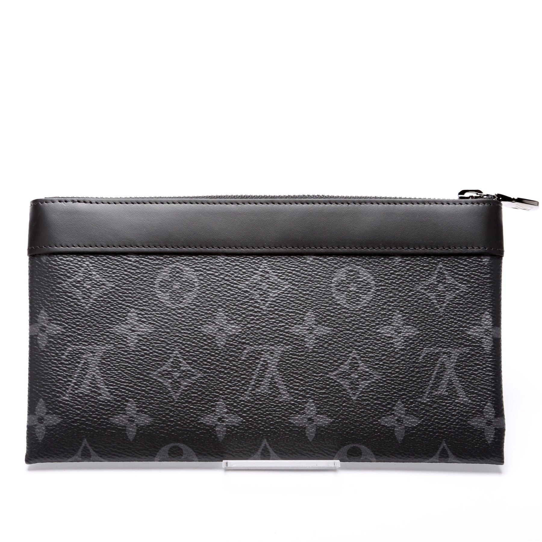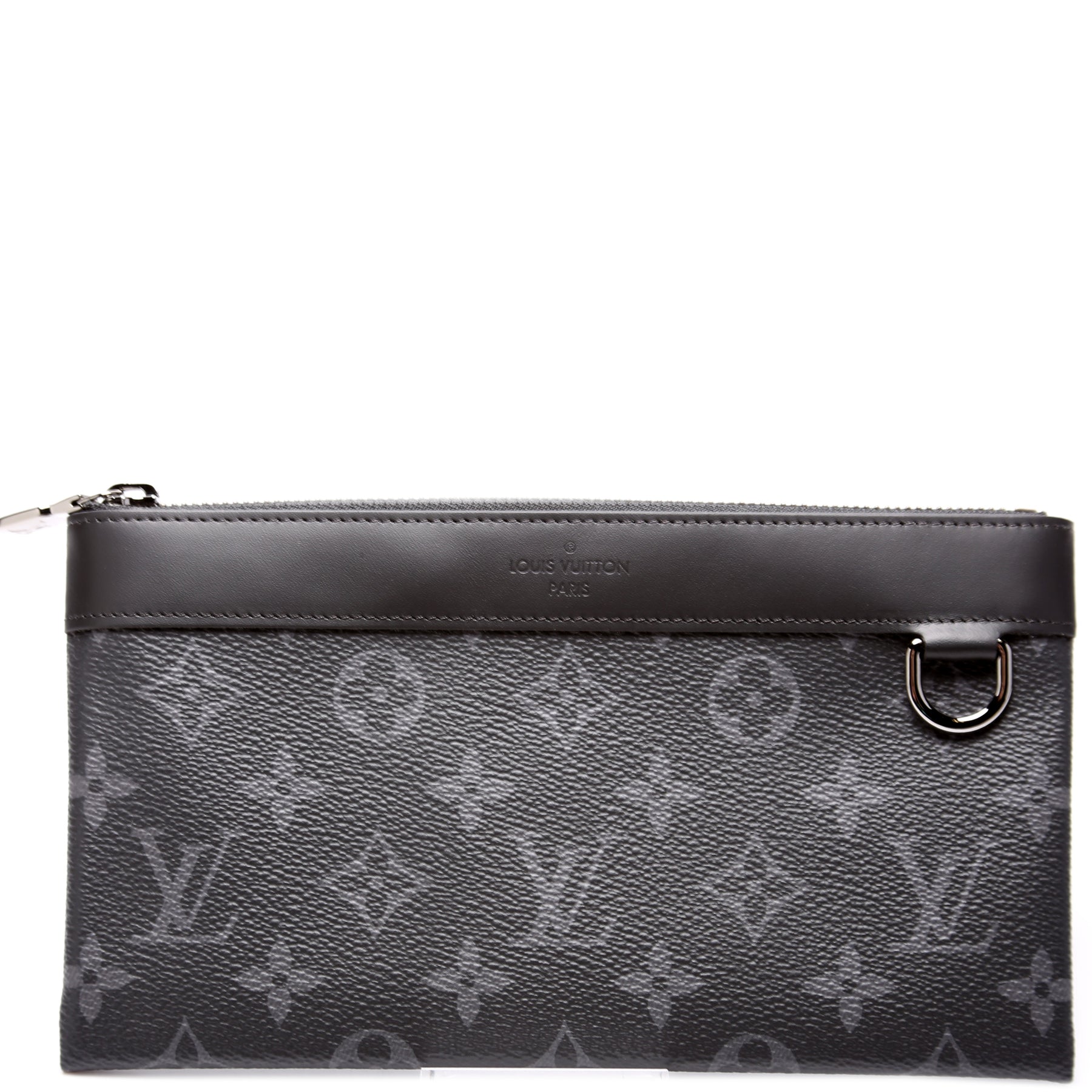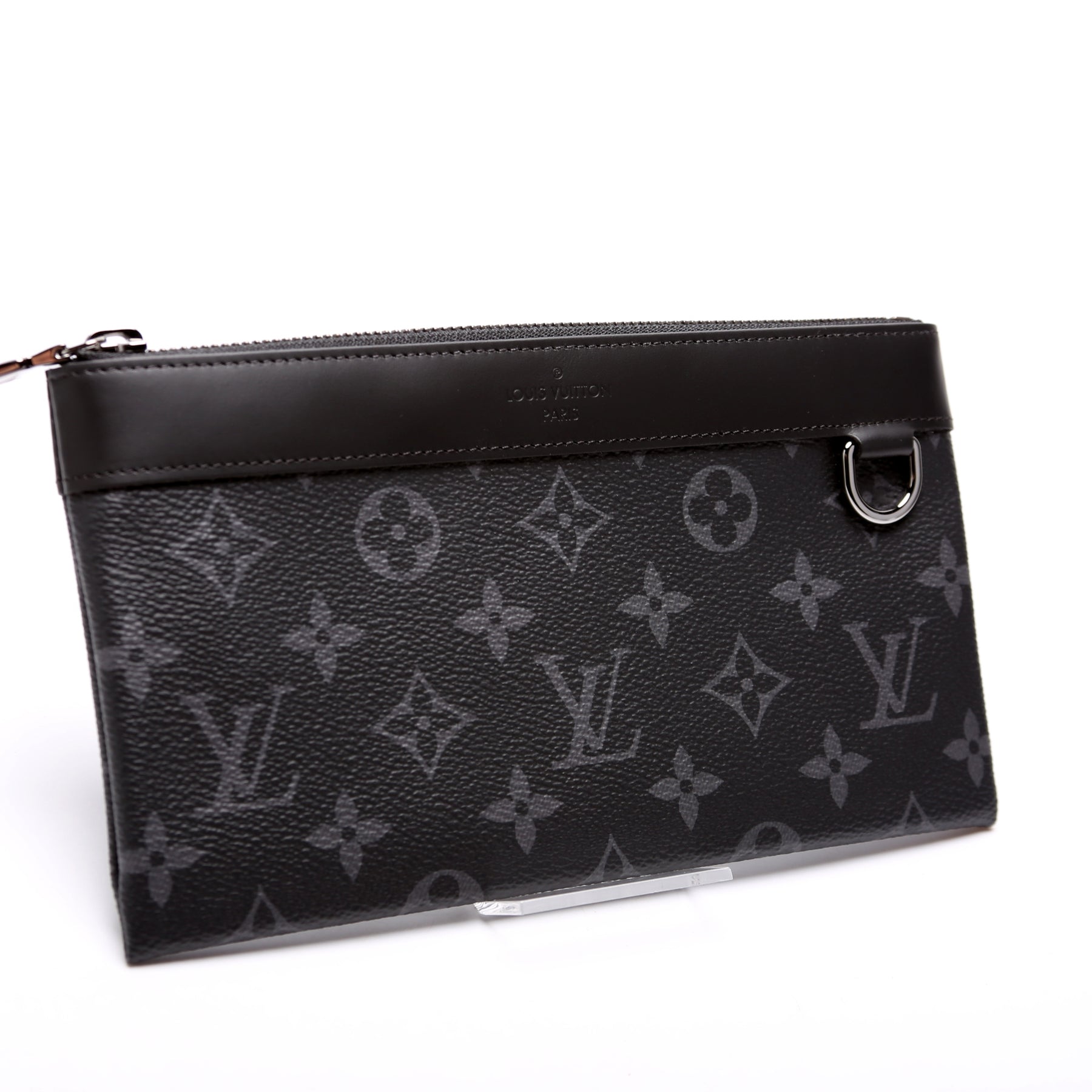 This pre-owned Louis Vuitton Pochette Discovery PM is guaranteed 100% authentic. The exterior is in the classic Louis Vuitton Eclipse Monogram coated canvas.