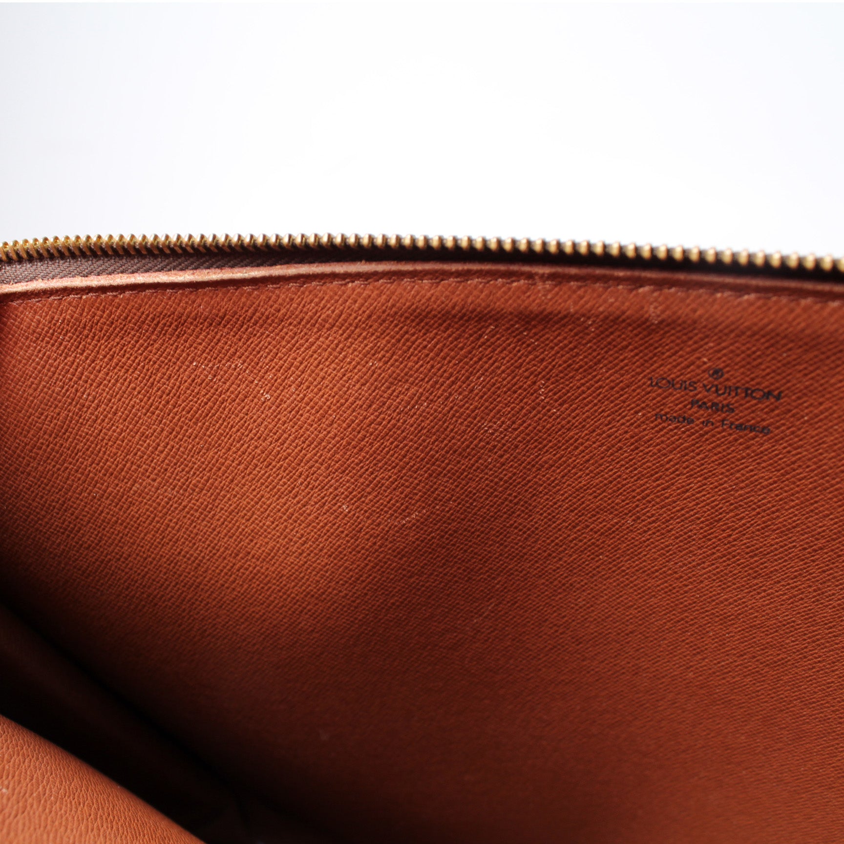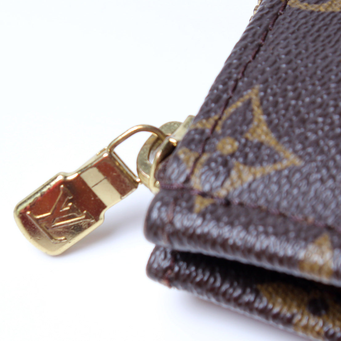 This pre-owned Louis Vuitton Pochette is guaranteed 100% authentic. The exterior is in the classic Louis Vuitton Monogram coated canvas.