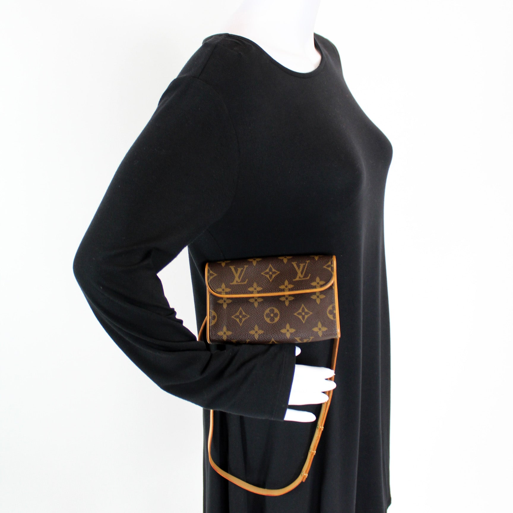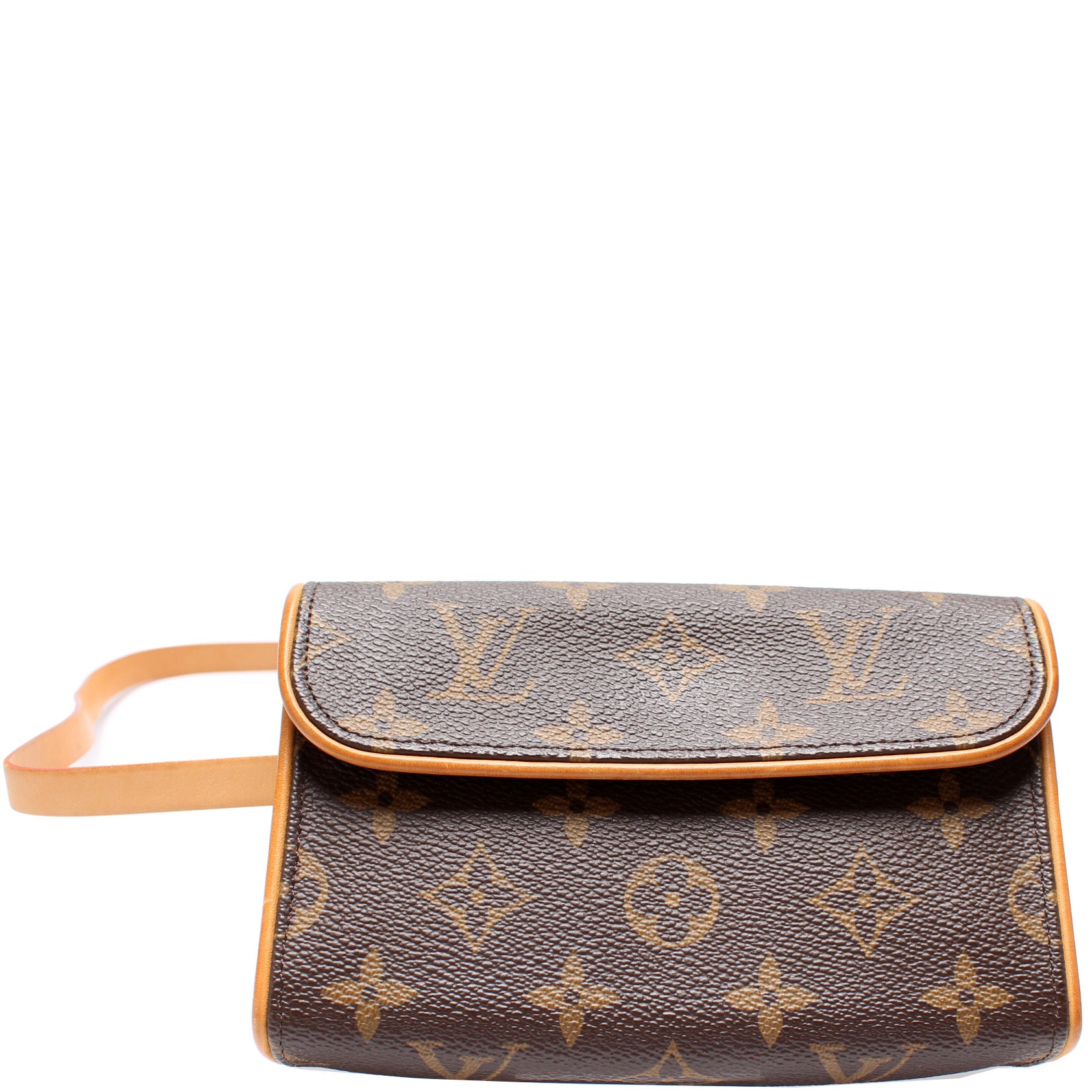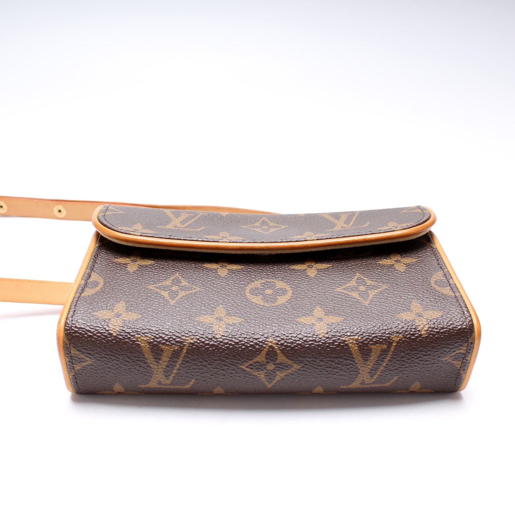 This pre-owned Louis Vuitton Pochette Florentine is guaranteed 100% authentic. The exterior is in the classic Louis Vuitton Monogram coated canvas.