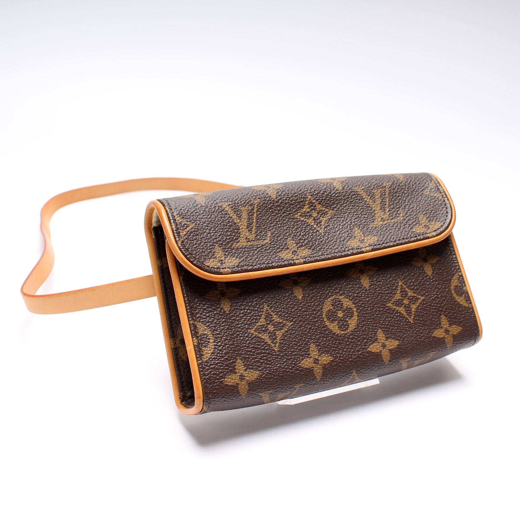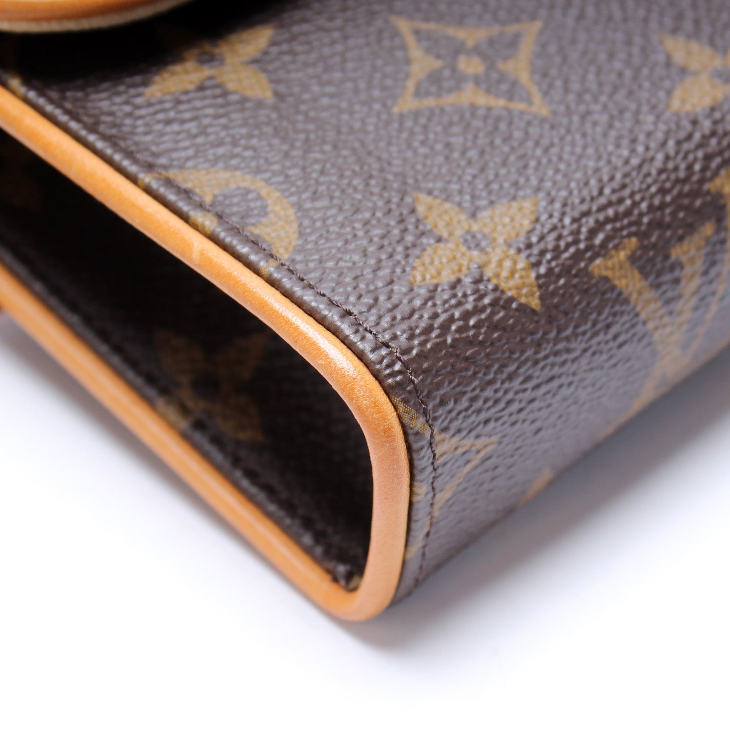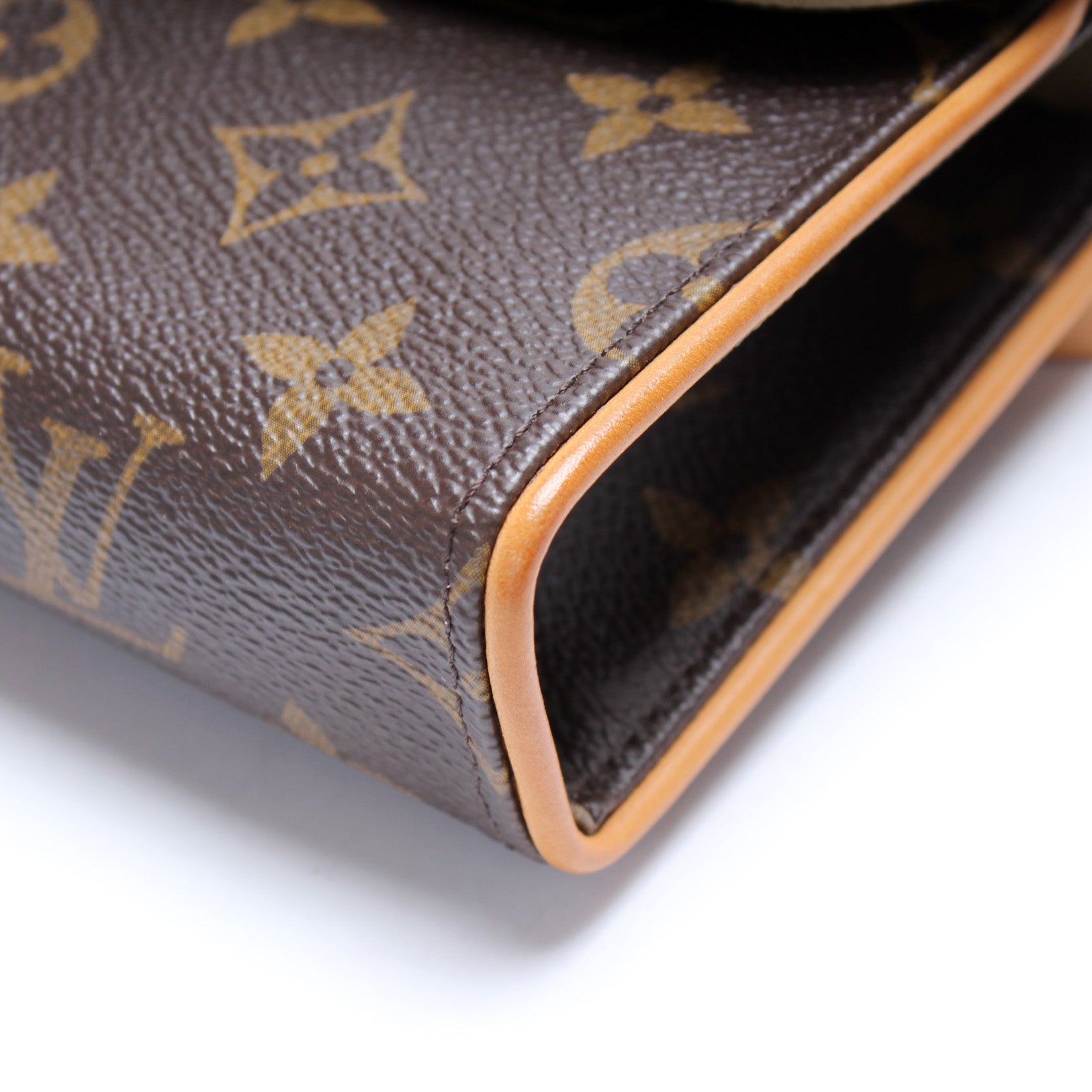 This pre-owned Louis Vuitton Pochette Florentine is guaranteed 100% authentic. The exterior is in the classic Louis Vuitton Monogram coated canvas.