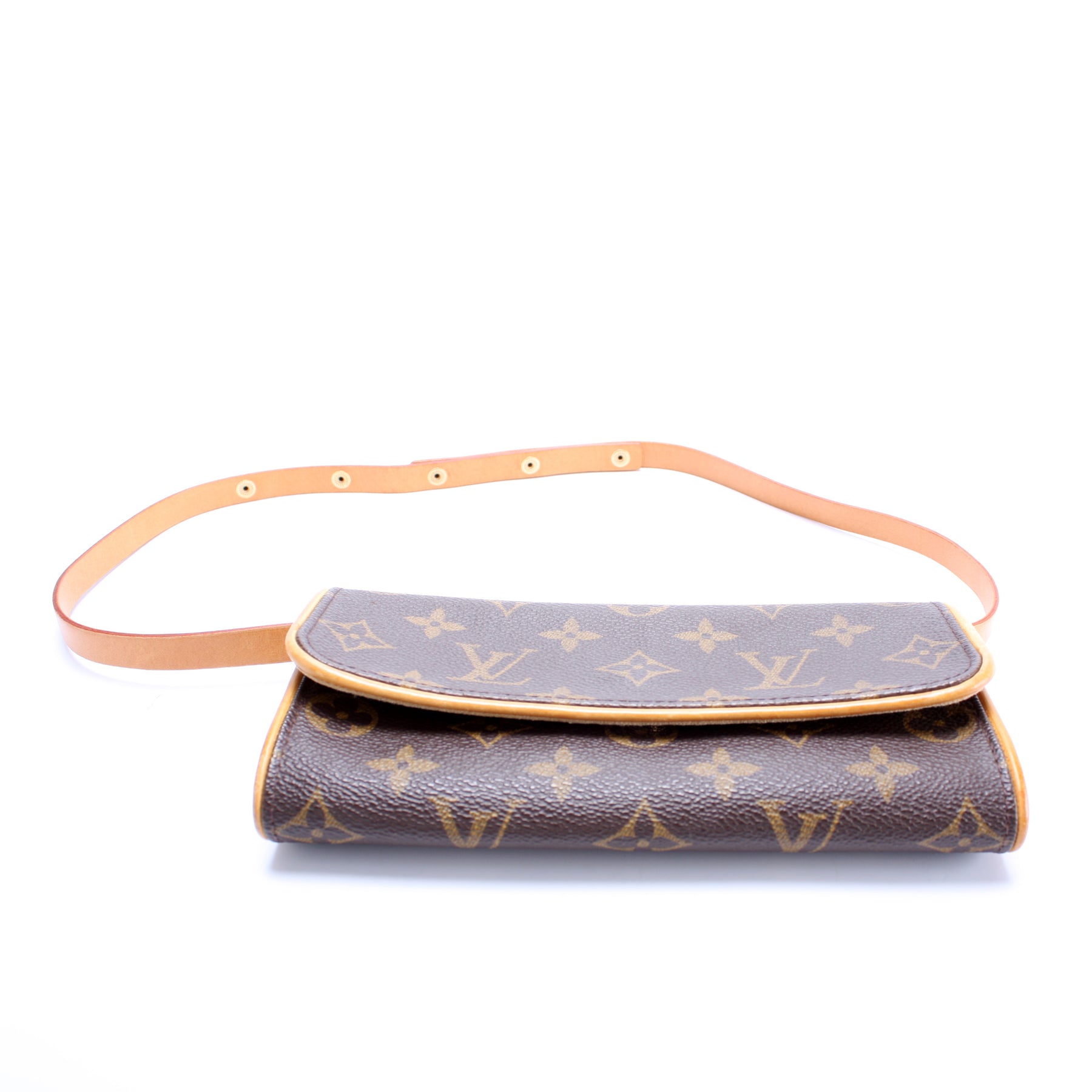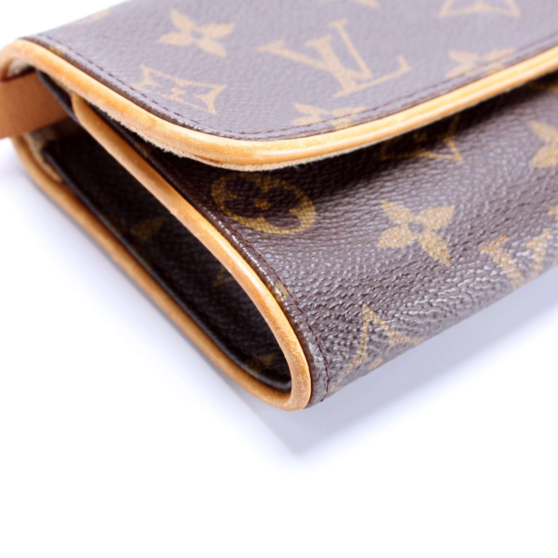 This pre-owned Pochette Florentine is guaranteed 100% authentic. The exterior is in the classic Louis Vuitton Monogram coated canvas.