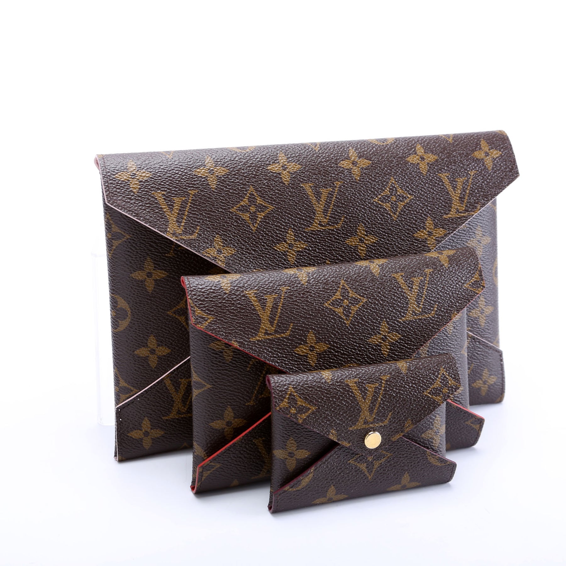 This pre-owned Louis Vuitton Pochette Kirigami 3-piece is guaranteed 100% authentic. The exterior is in the classic Louis Vuitton monogram coated canvas.