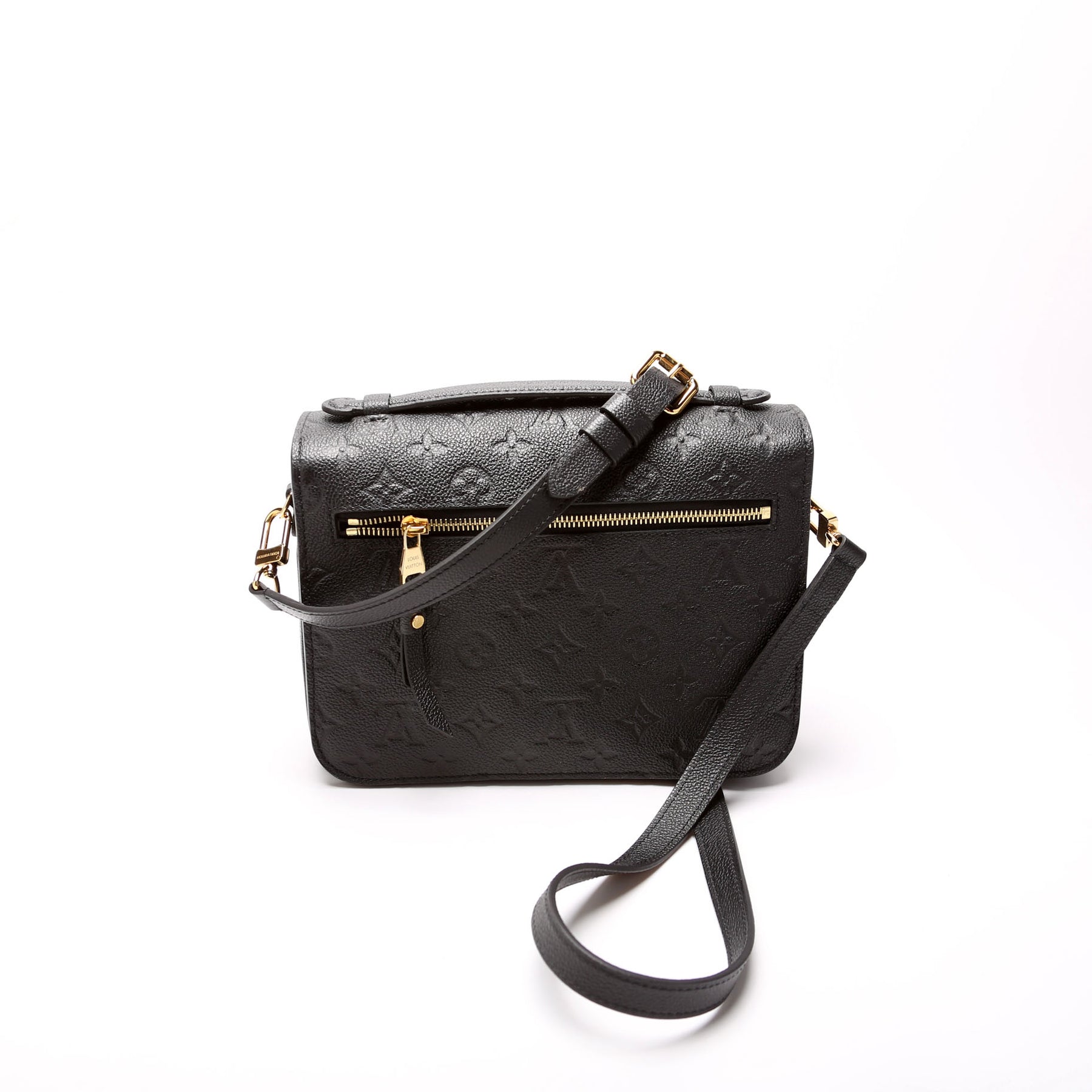 This pre-owned Louis Vuitton Pochette Metis is guaranteed 100% authentic. The exterior is in the classic Louis Vuitton Empreinte leather.
