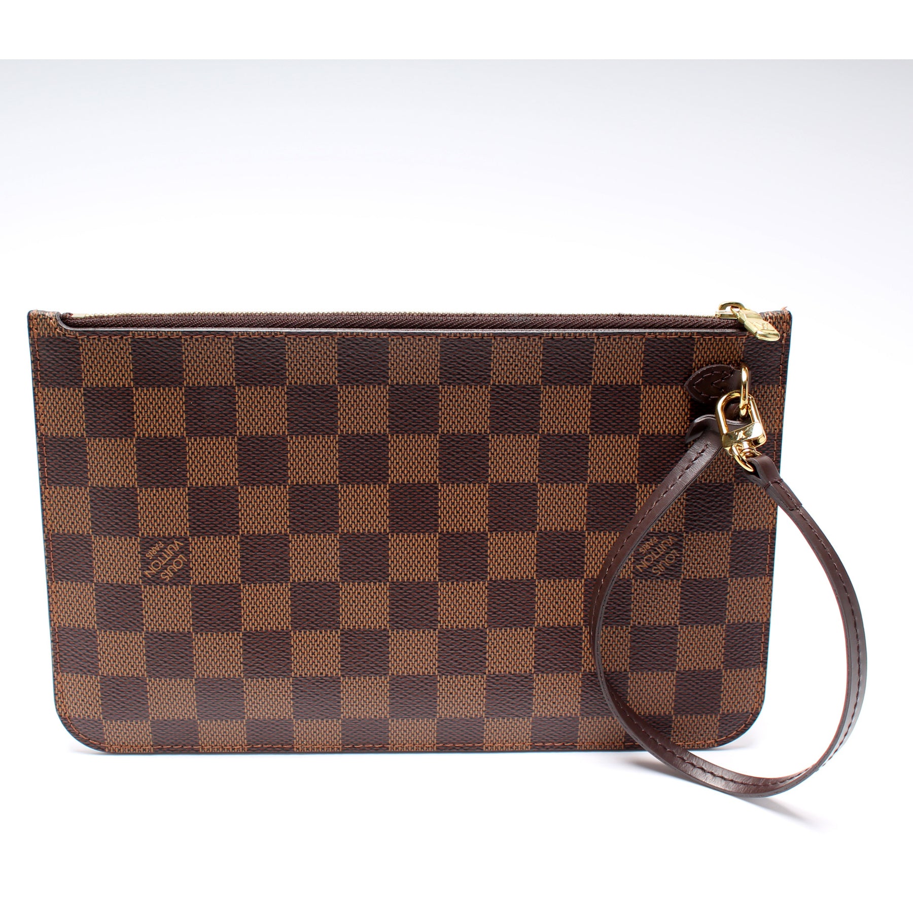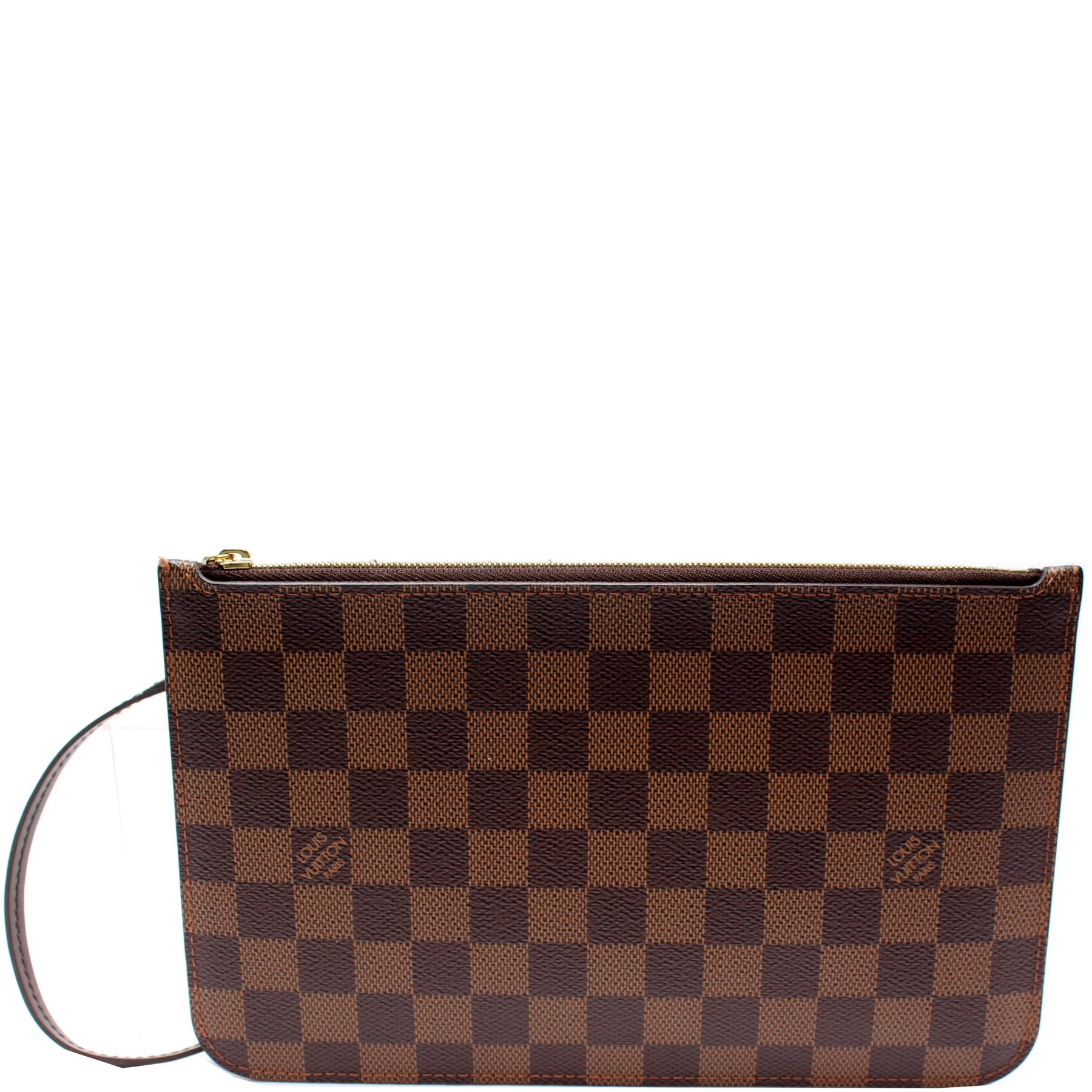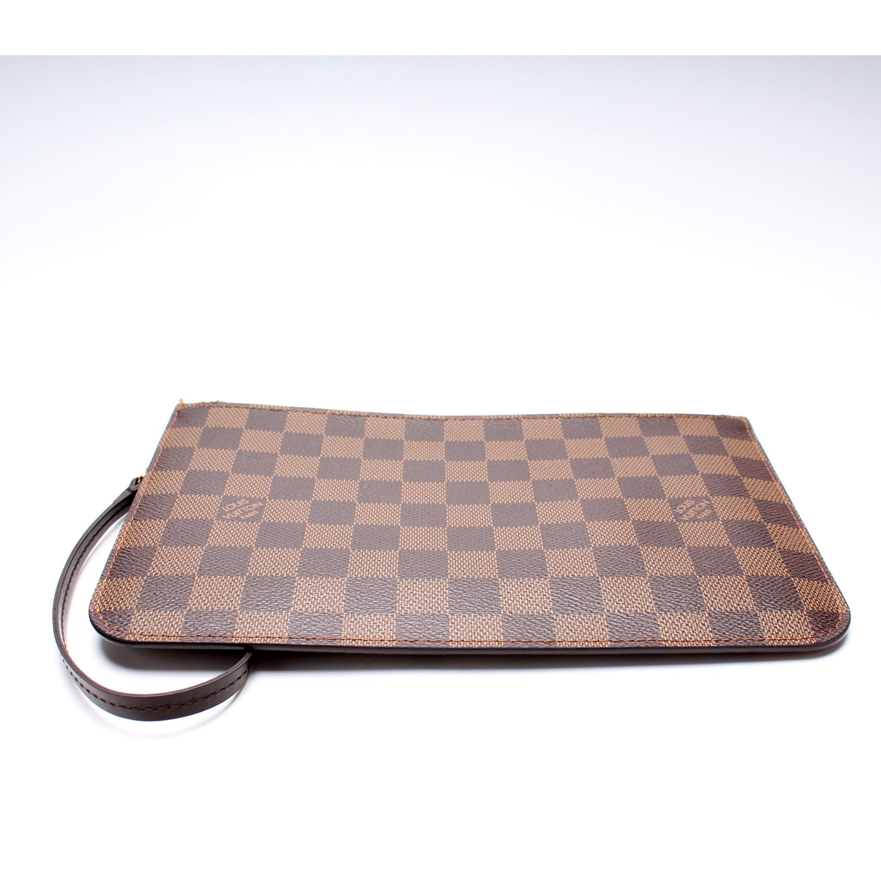 This pre-owned Louis Vuitton Pochette Only Neverfull is guaranteed 100% authentic. The exterior is in the classic Louis Vuitton Damier Ebene coated canvas.