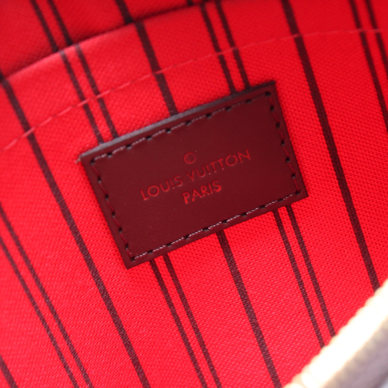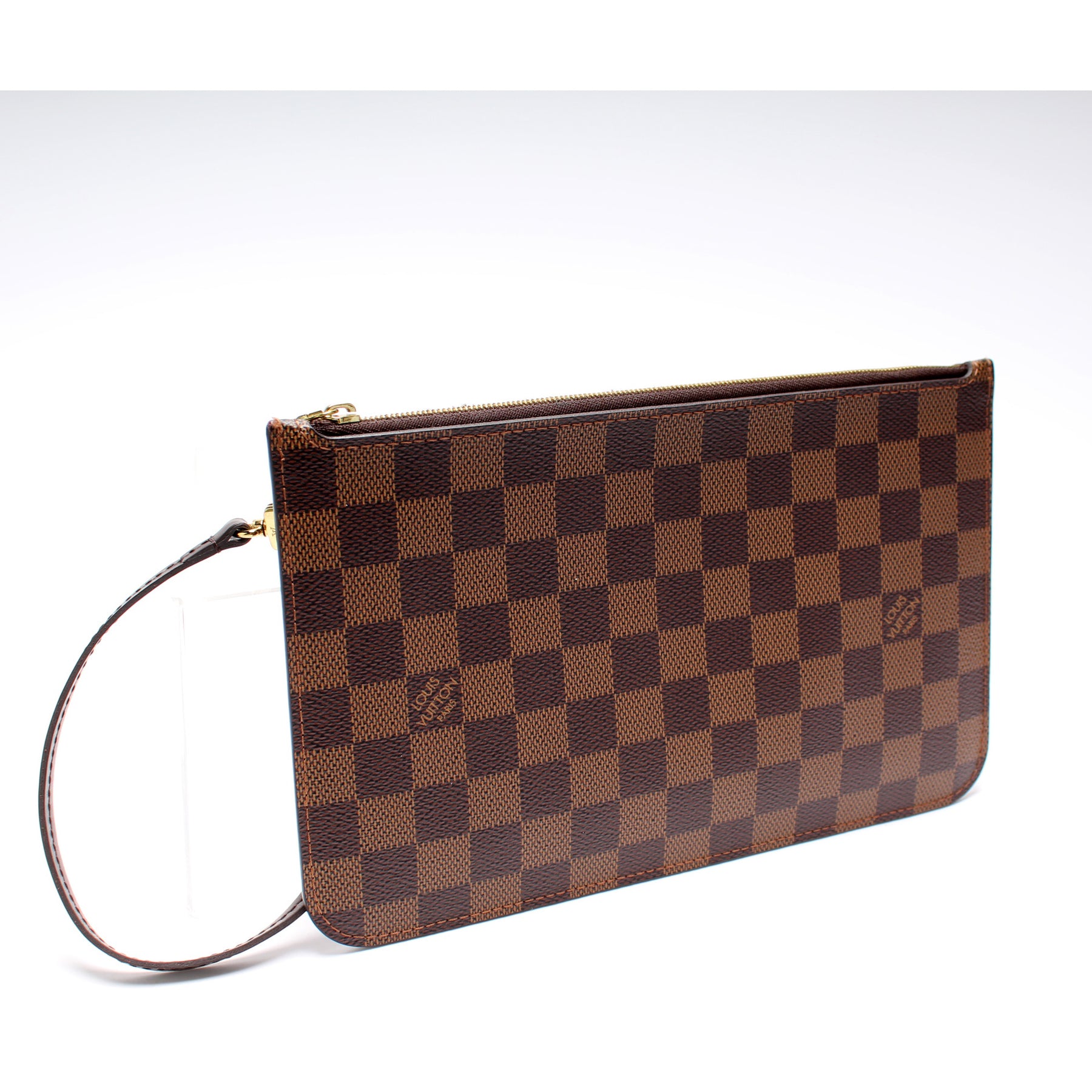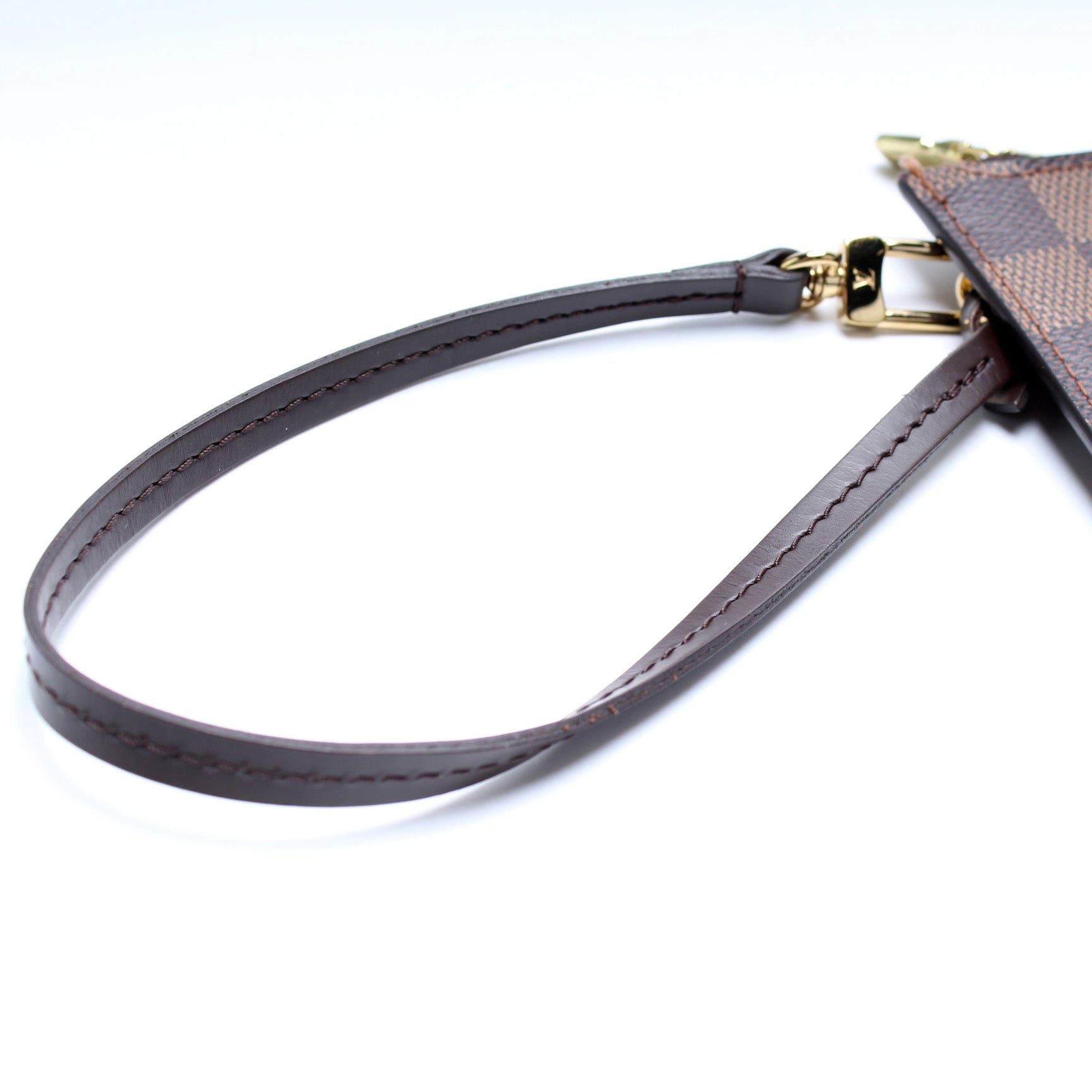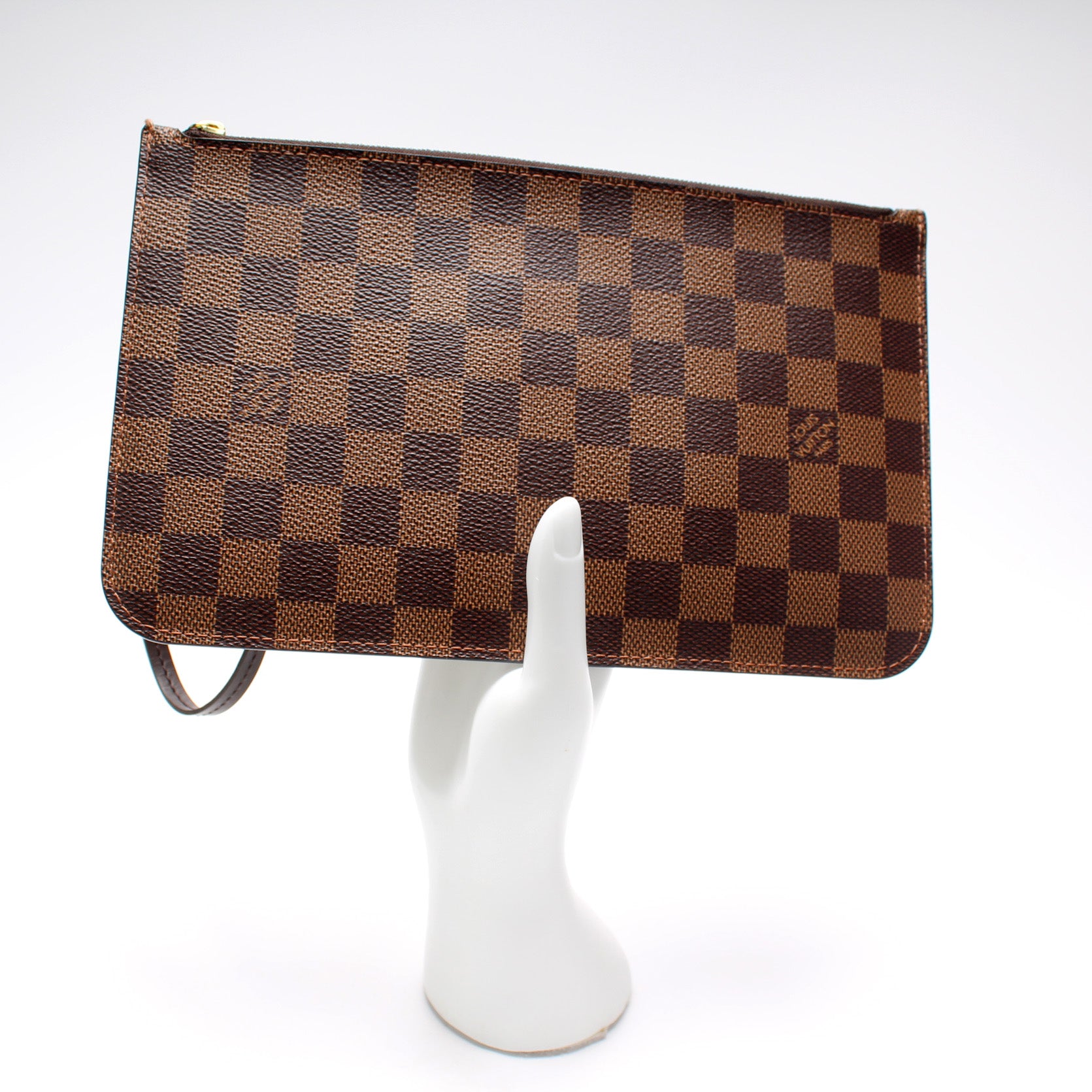 This pre-owned Louis Vuitton Pochette Only Neverfull is guaranteed 100% authentic. The exterior is in the classic Louis Vuitton Damier Ebene coated canvas.
