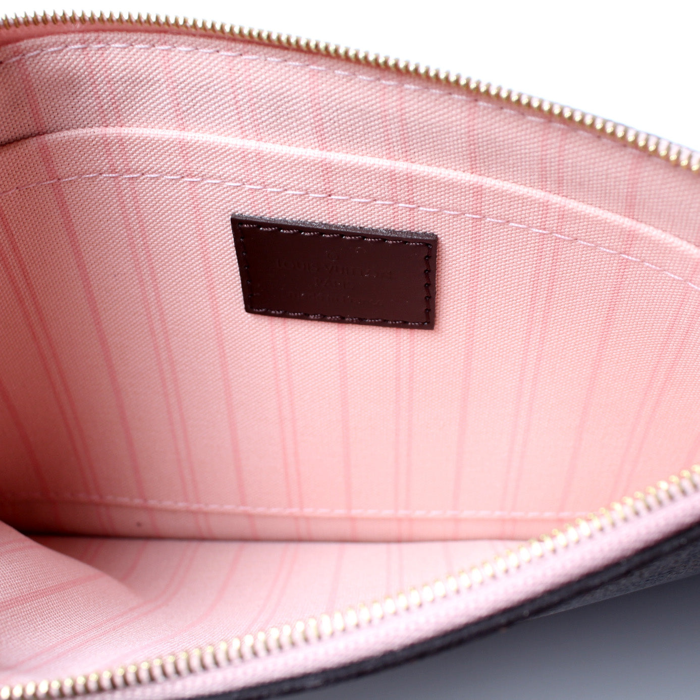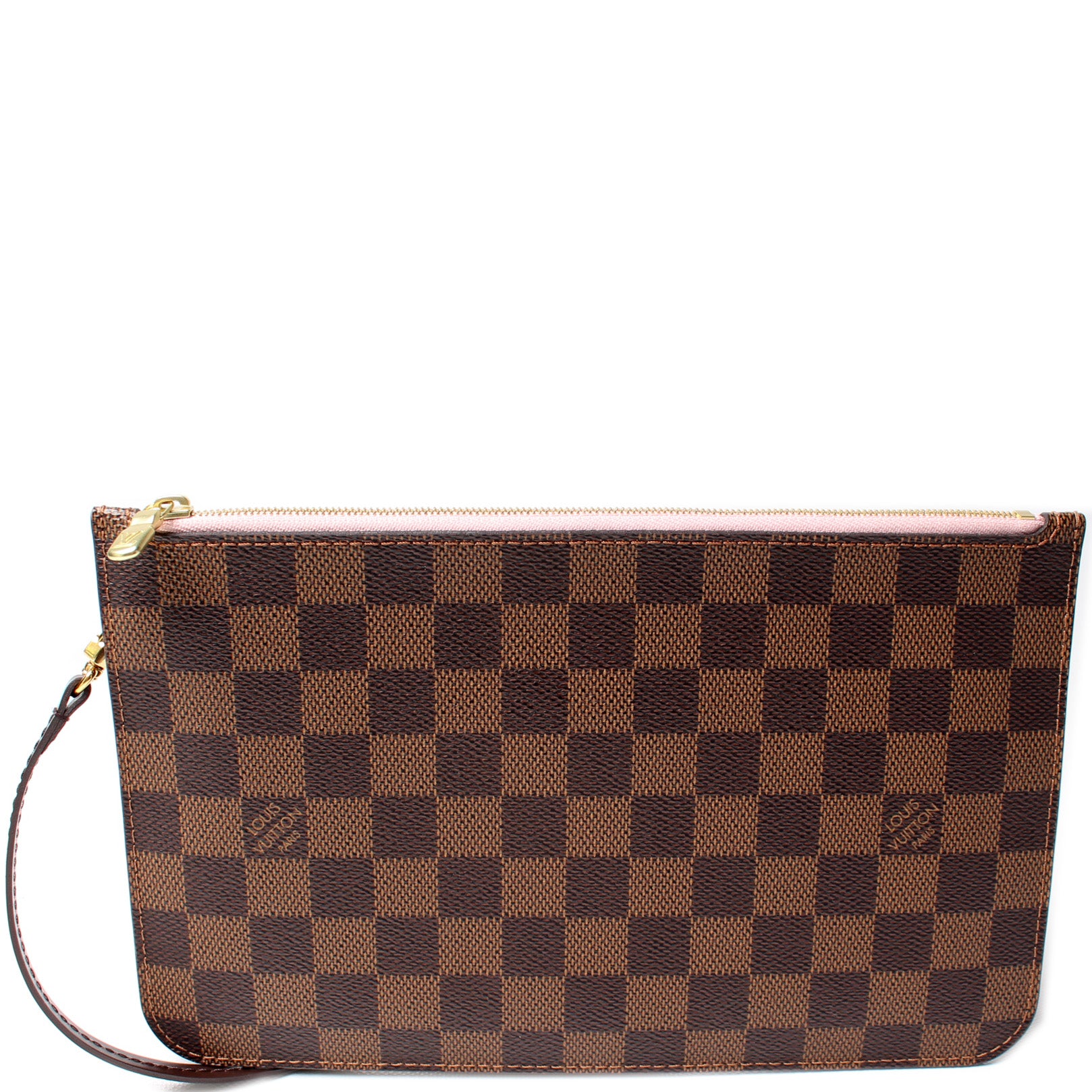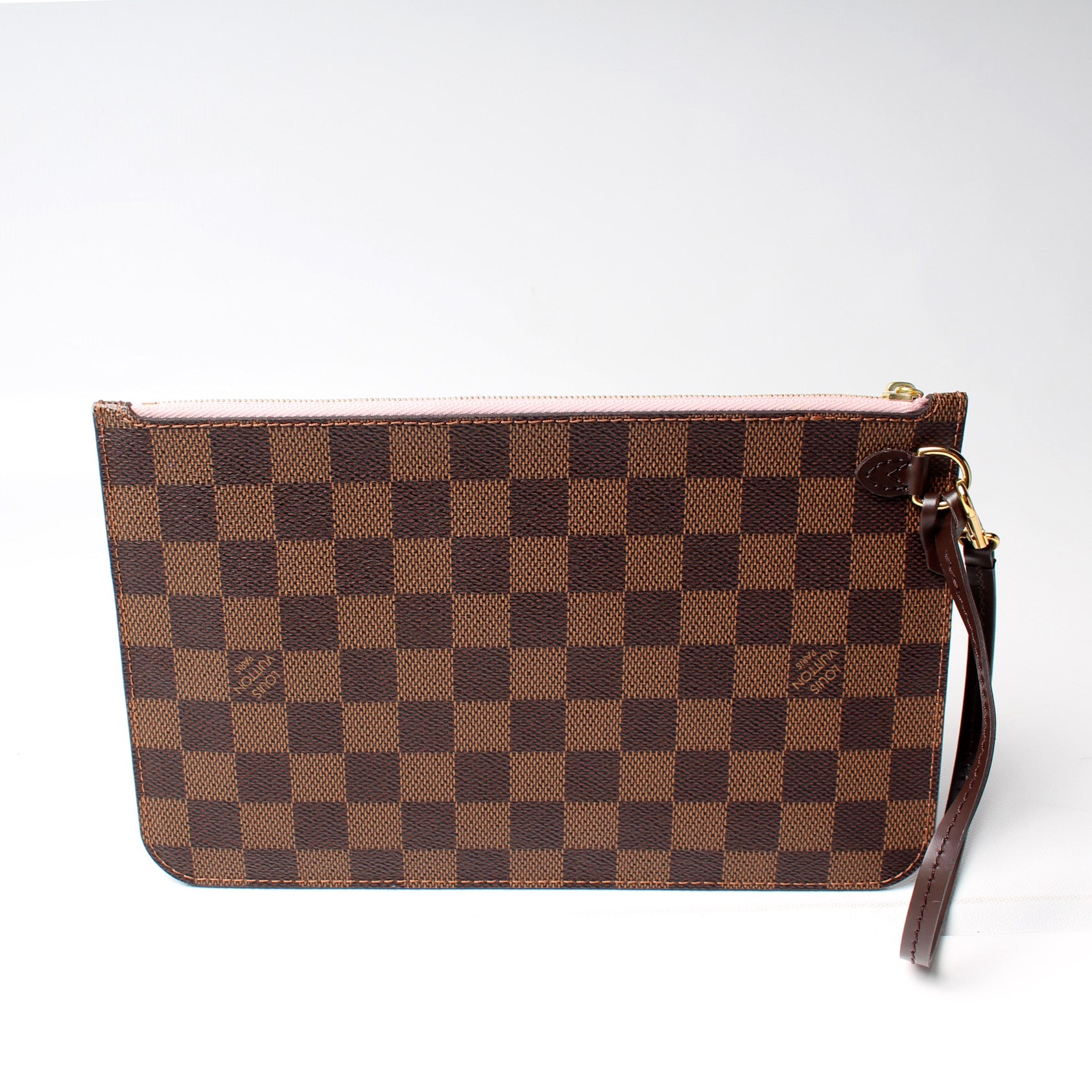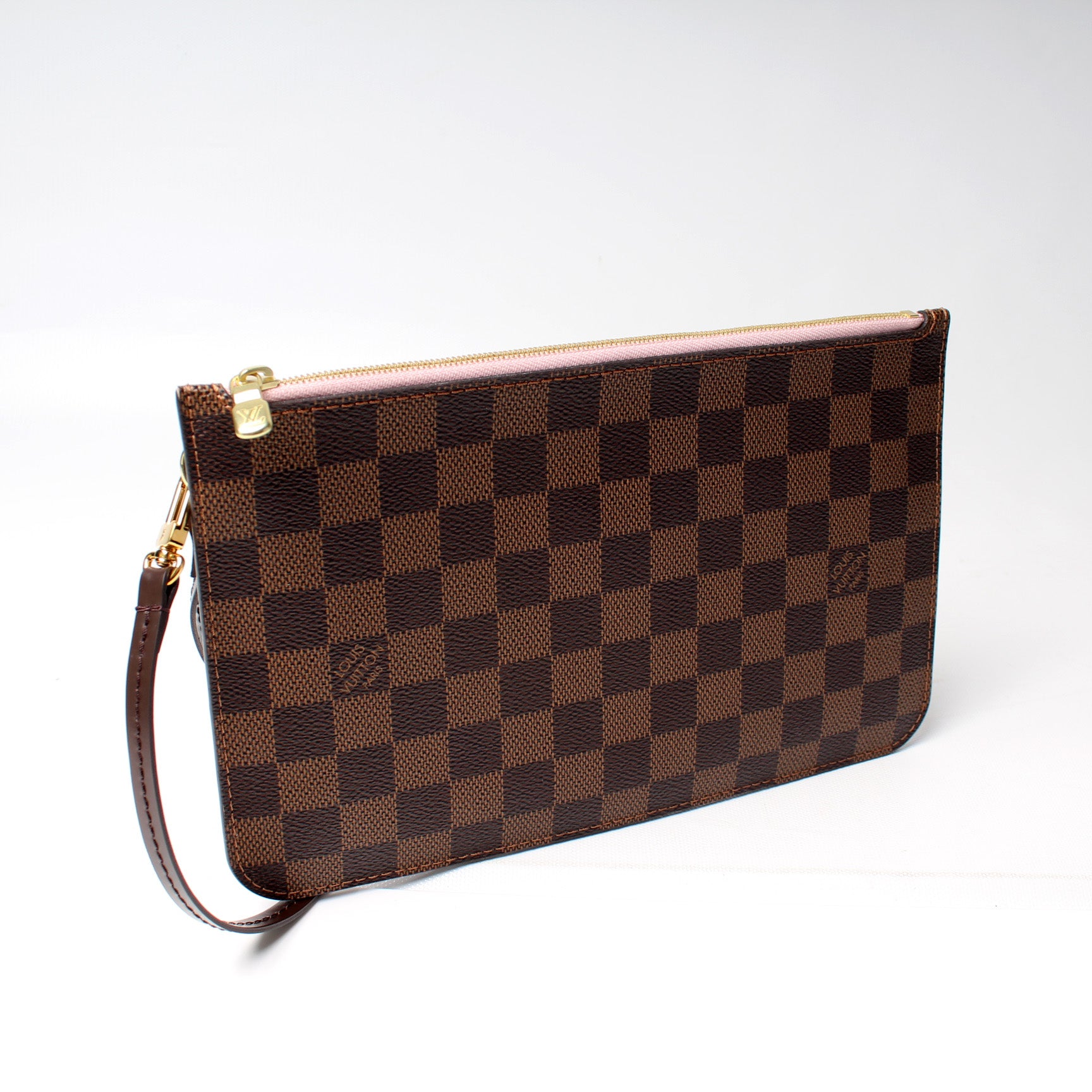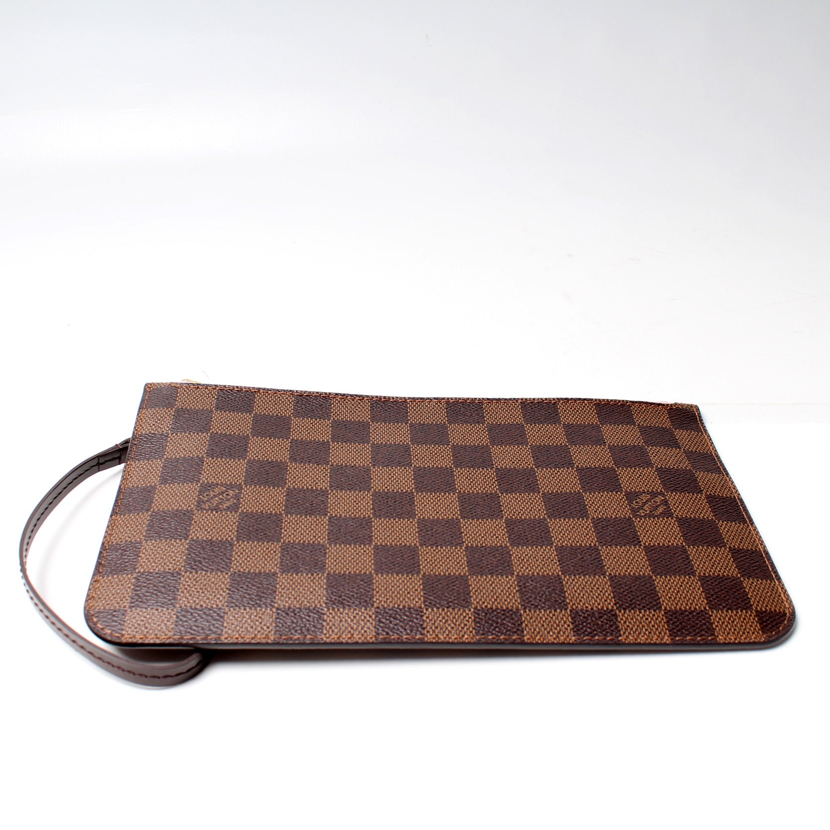 This pre-owned Louis Vuitton Pochette Only Neverfull is guaranteed 100% authentic. The exterior is in the classic Louis Vuitton Damier Ebene coated canvas.