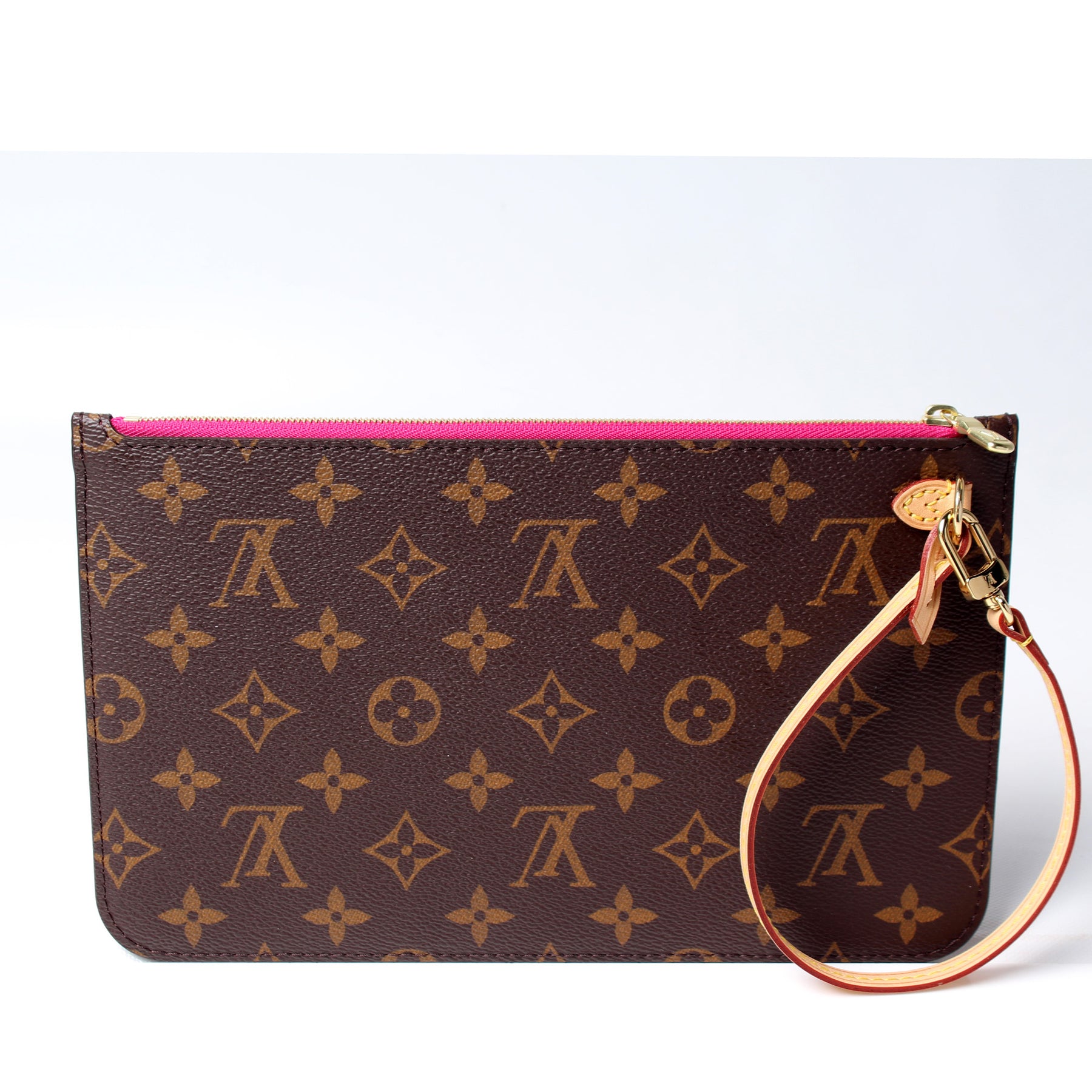 This pre-owned Louis Vuitton Pochette Only Neverfull is guaranteed 100% authentic. The exterior is in the classic Louis Vuitton Monogram coated canvas.