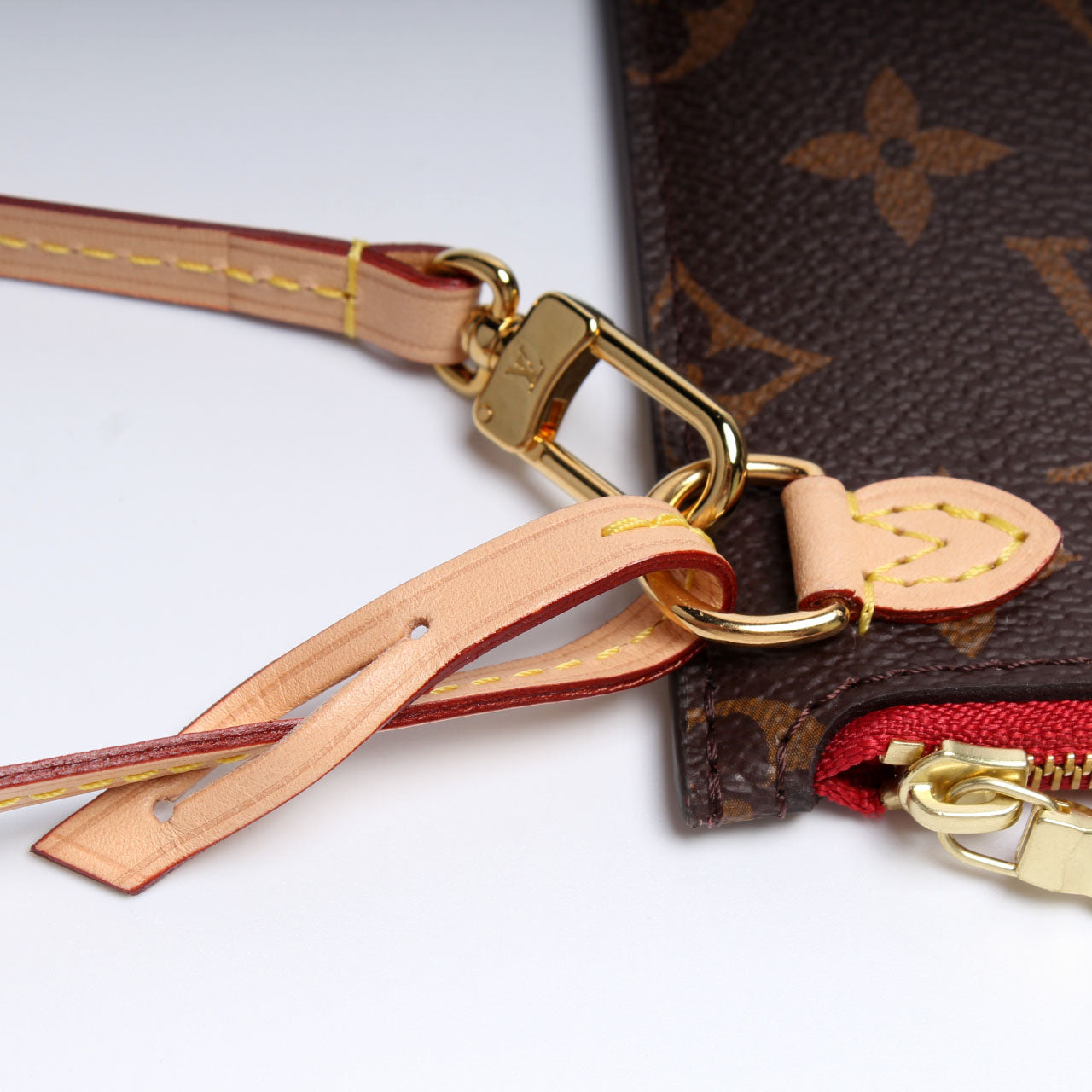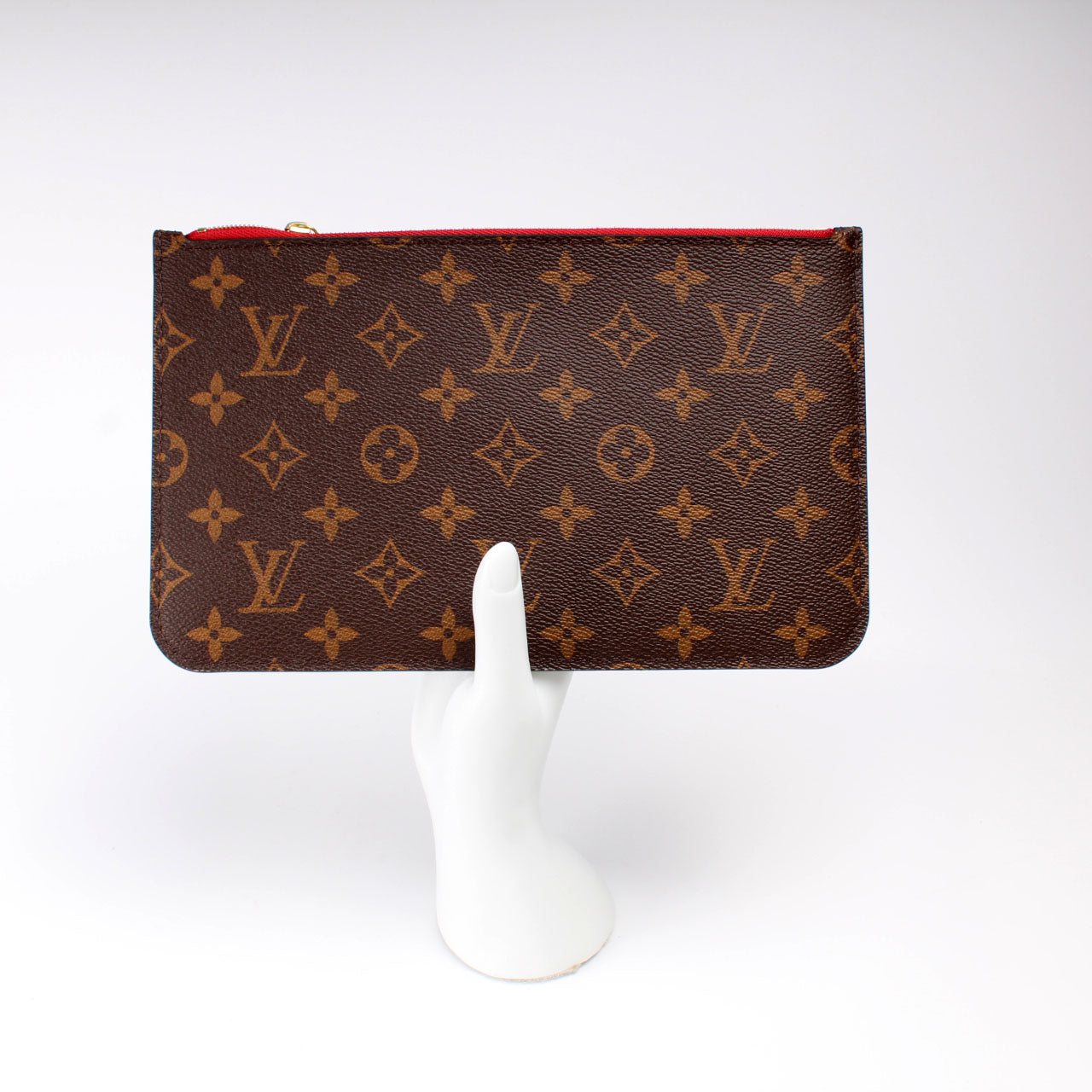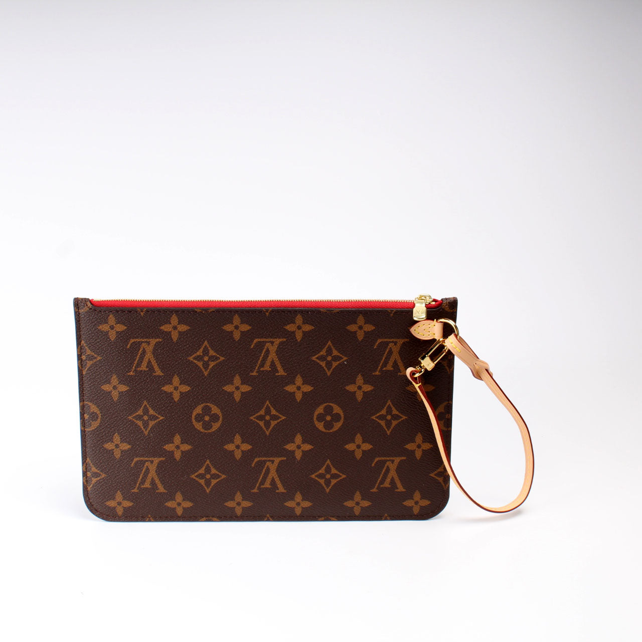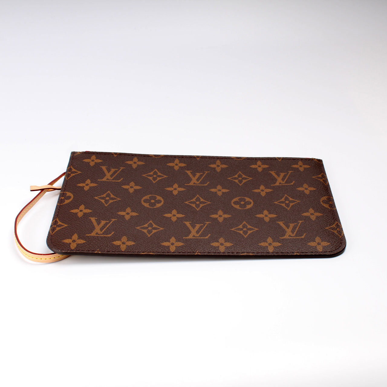 This pre-owned Louis Vuitton Pochette Only Neverfull is guaranteed 100% authentic. The exterior is in the classic Louis Vuitton Monogram coated canvas.