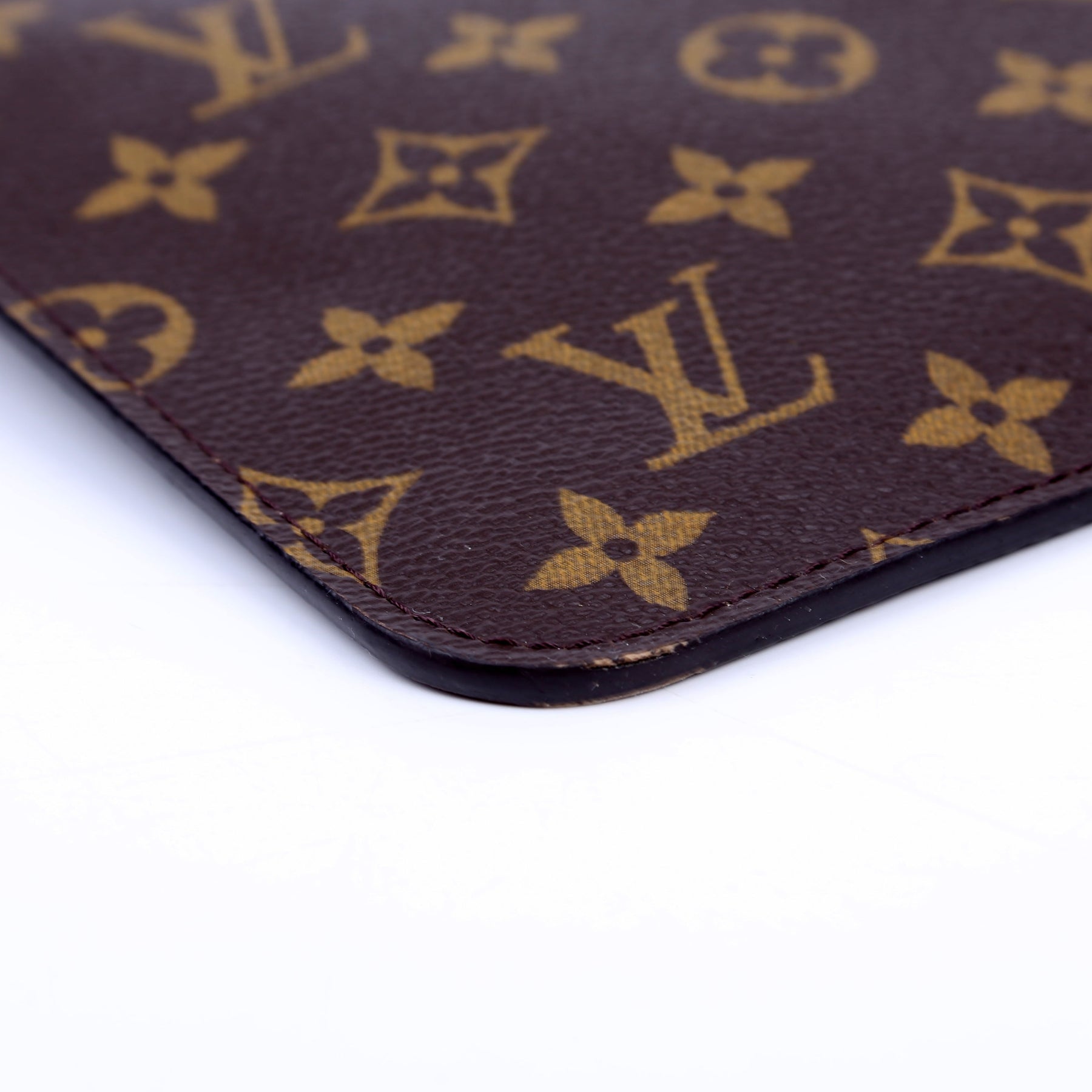 This pre-owned Louis Vuitton Pochette Only Monogram World Tour is guaranteed 100% authentic. The exterior is in the classic Louis Vuitton Monogram coated canvas.