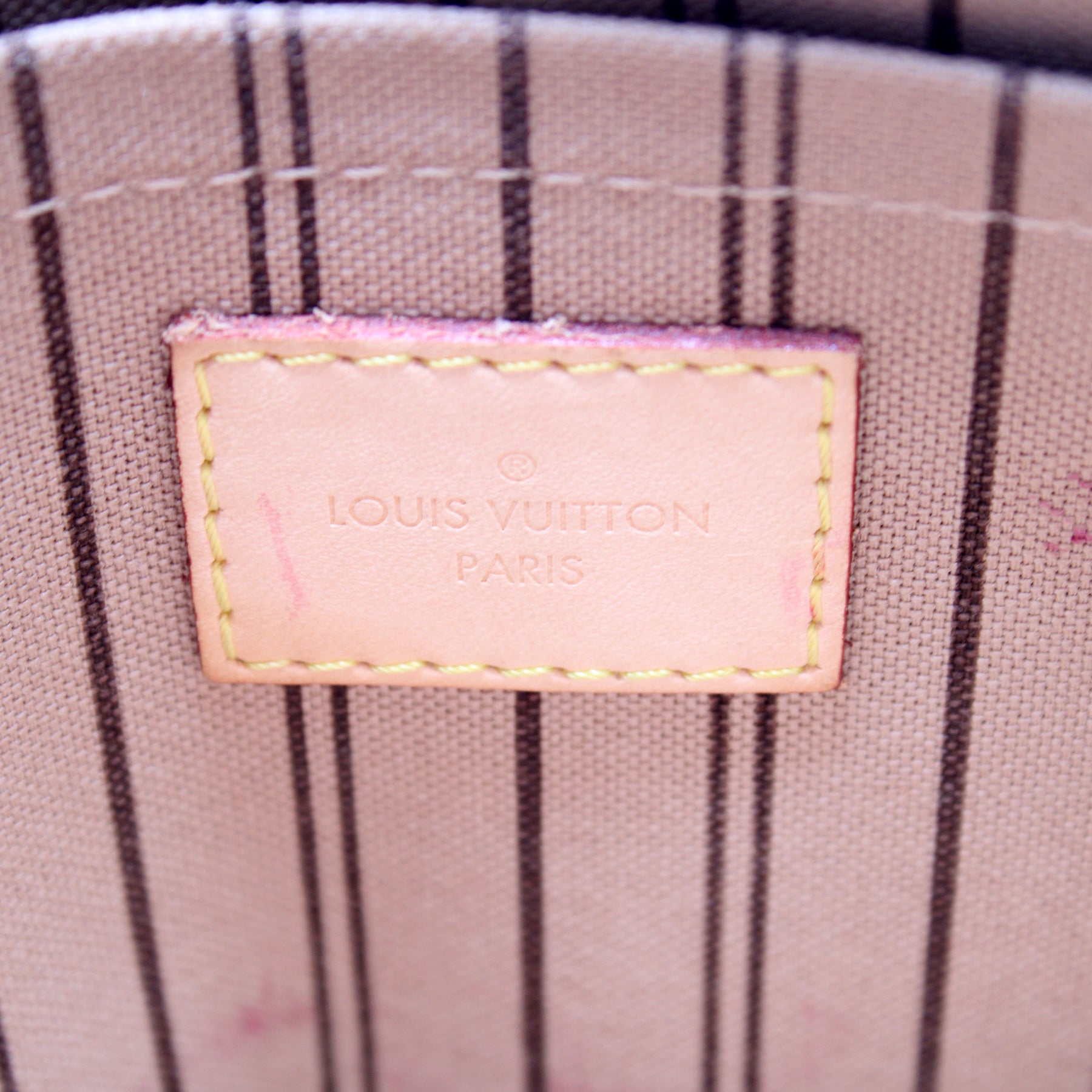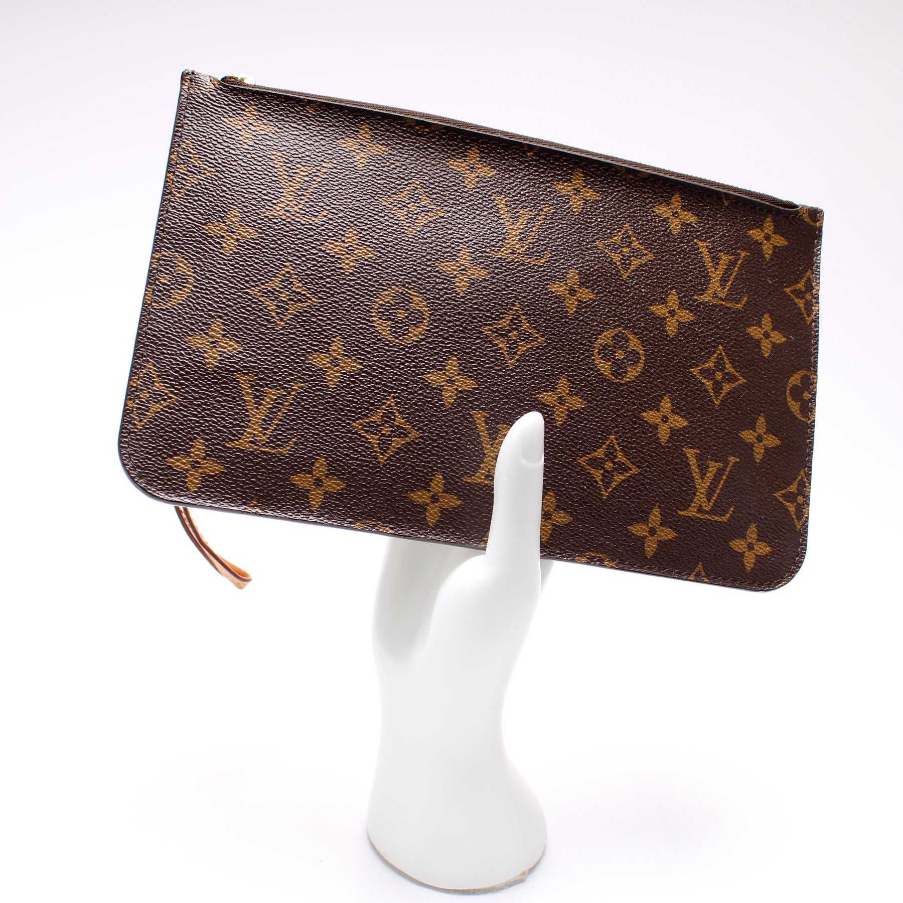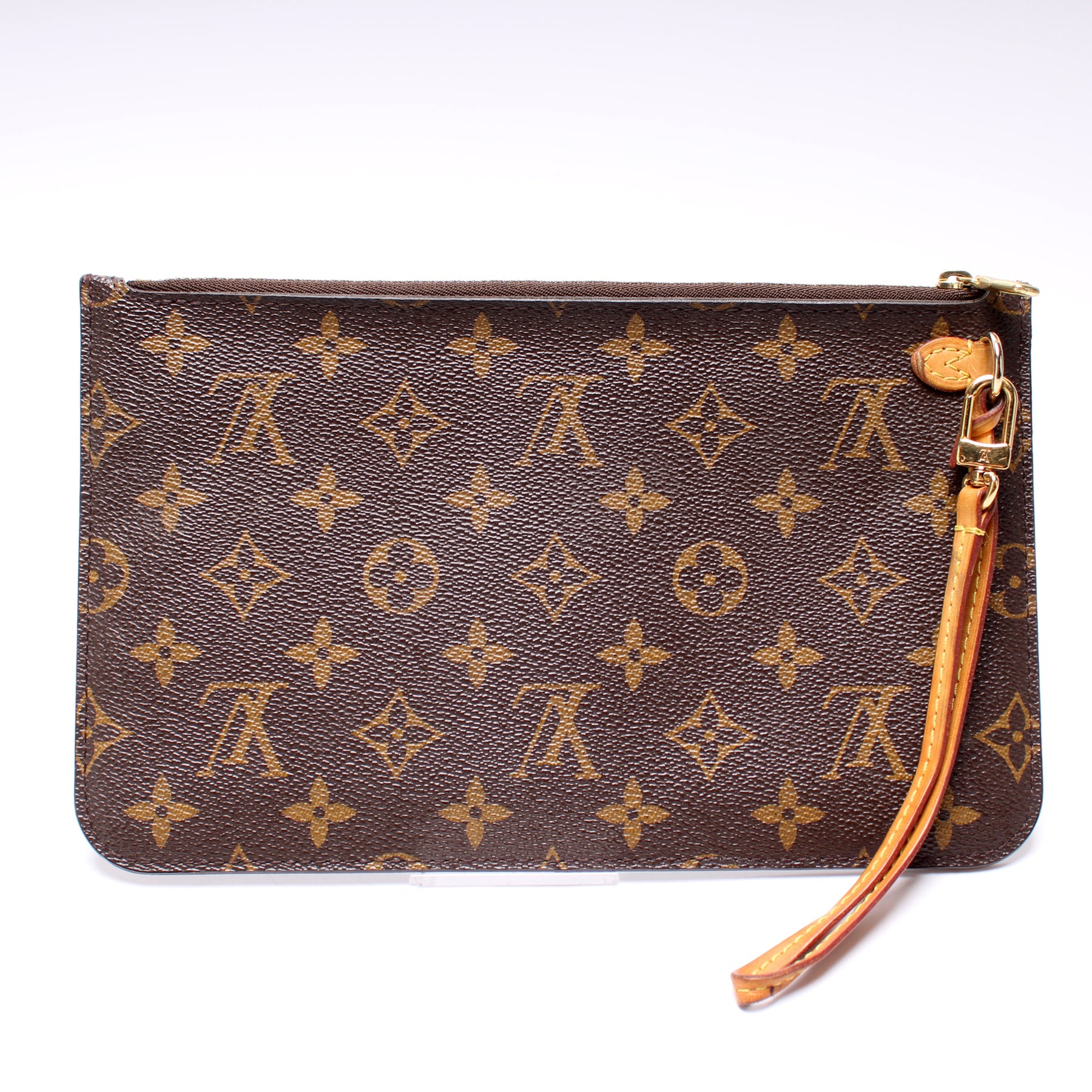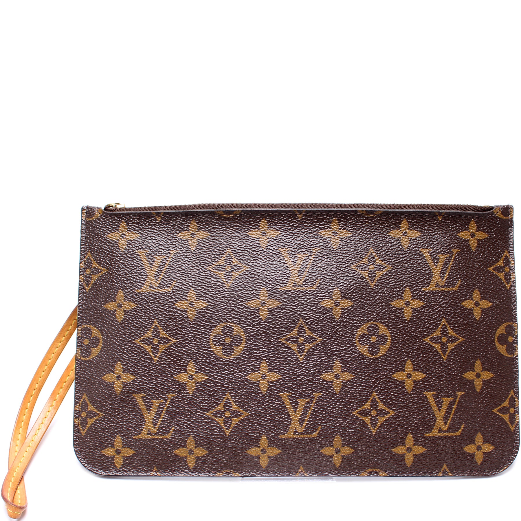 This pre-owned Louis Vuitton Pochette Only Neverfull is guaranteed 100% authentic. The exterior is in the classic Louis Vuitton Monogram coated canvas.