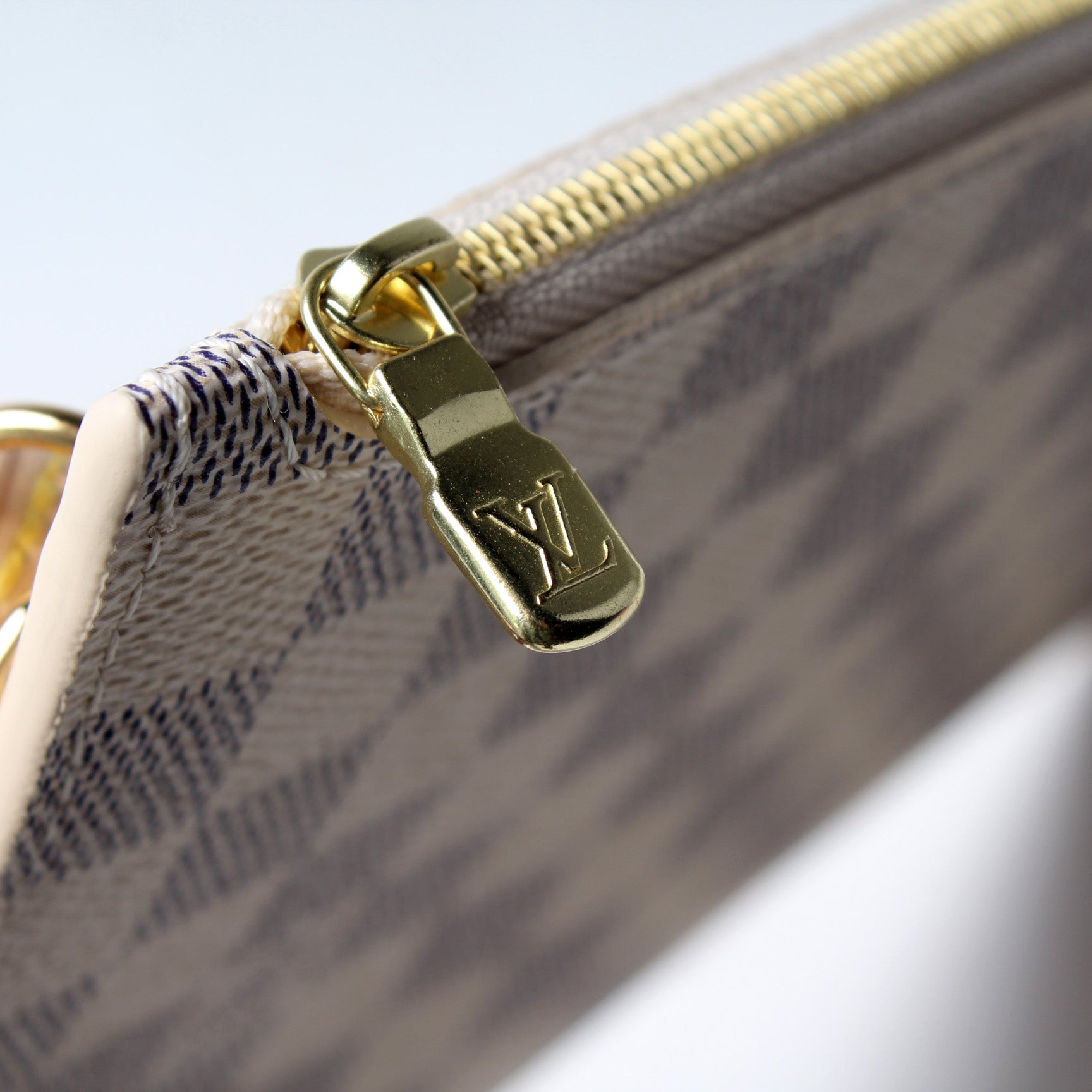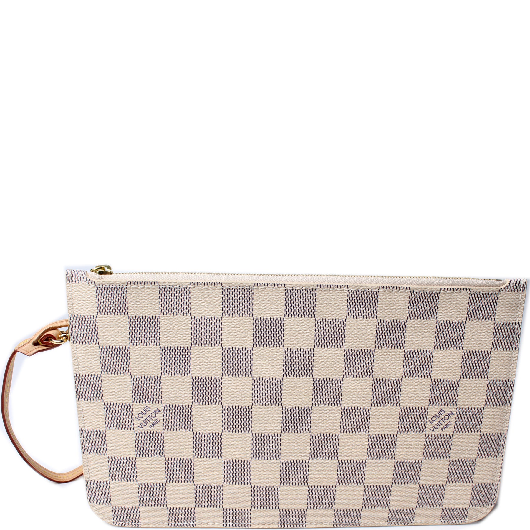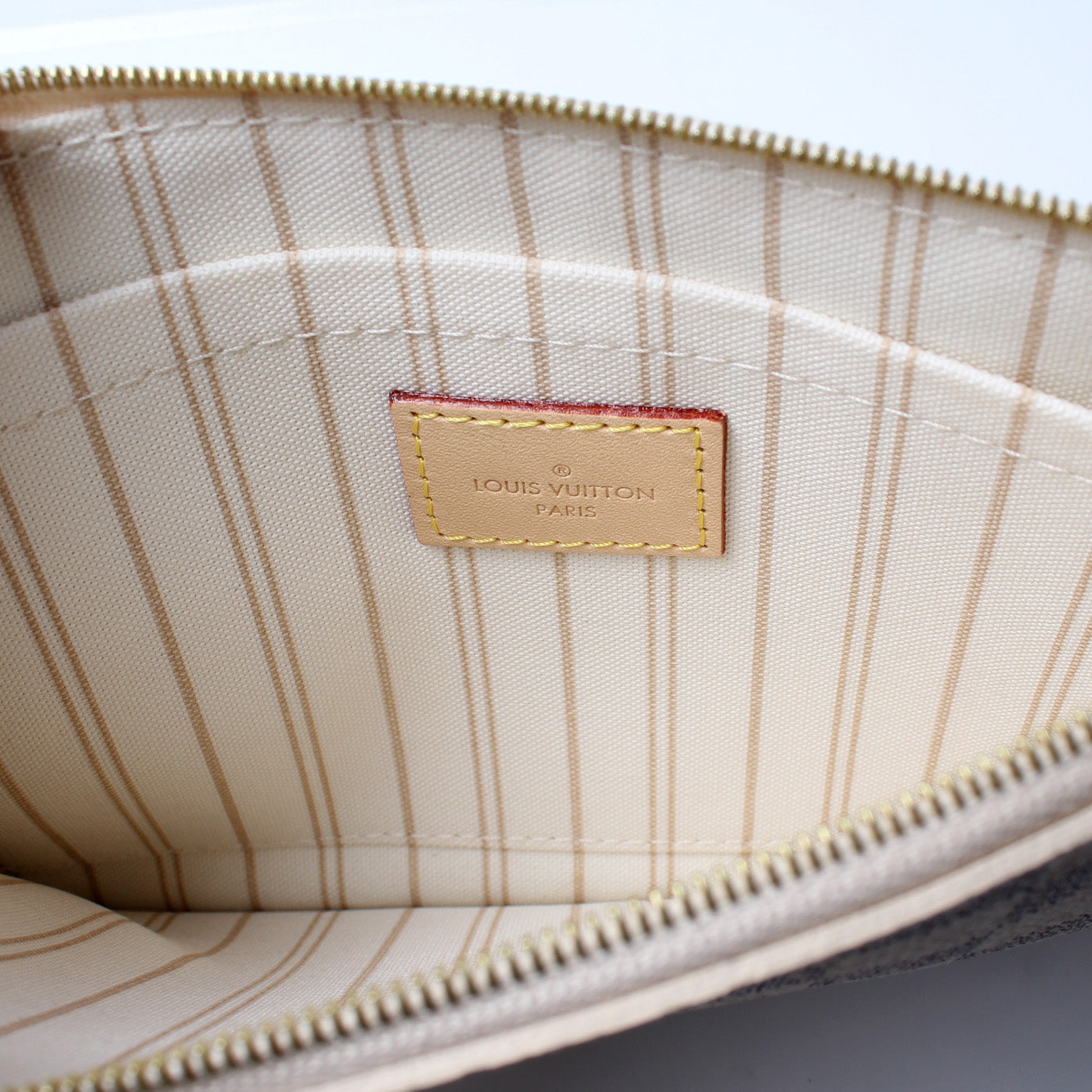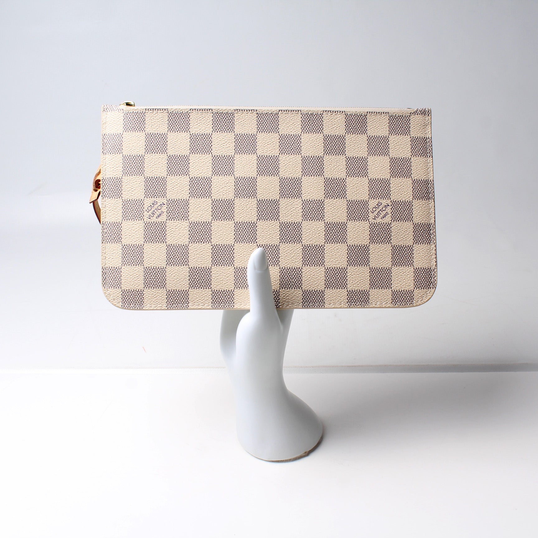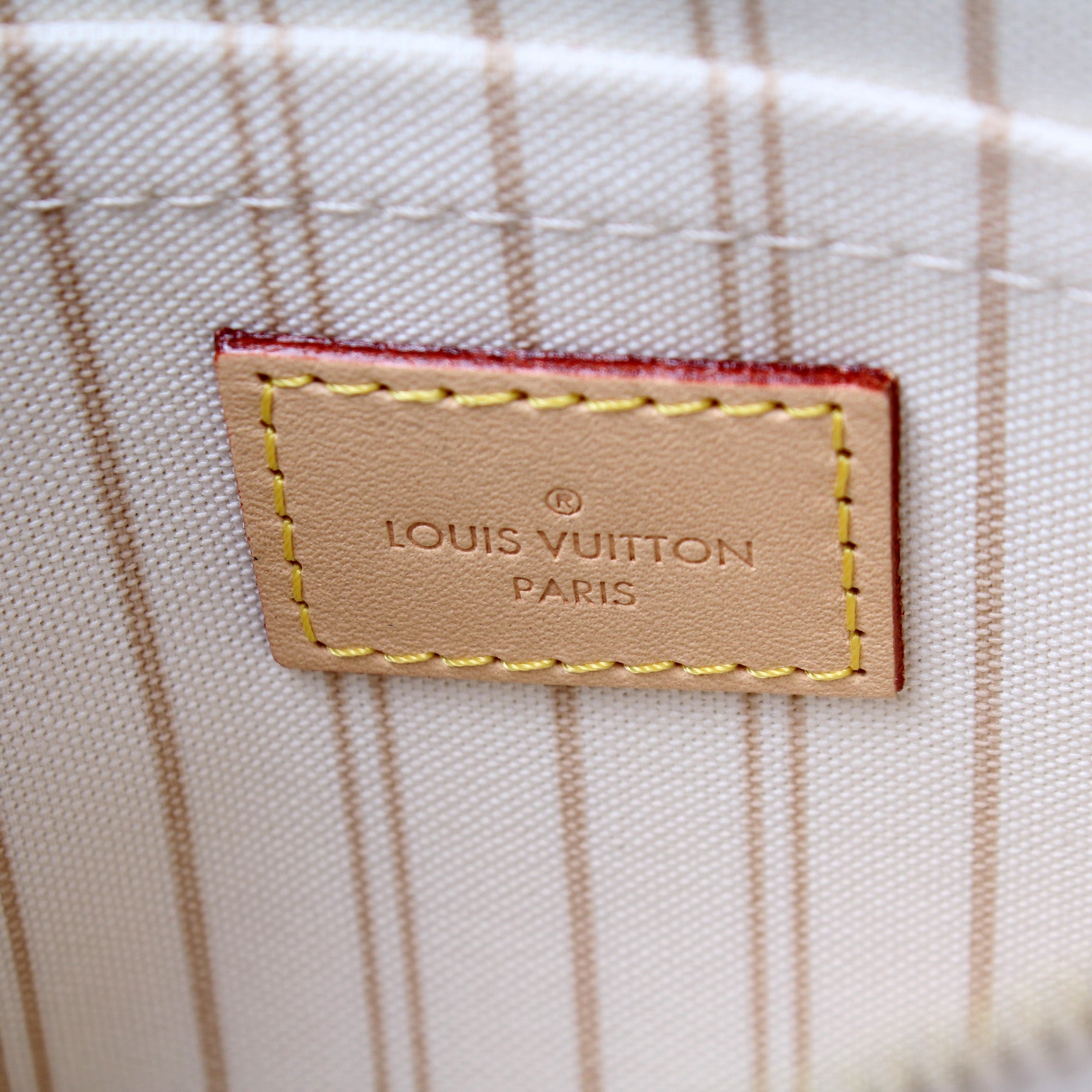 This pre-owned Louis Vuitton Pochette Only Neverfull is guaranteed 100% authentic. The exterior is in the classic Louis Vuitton Damier Azur coated canvas.
