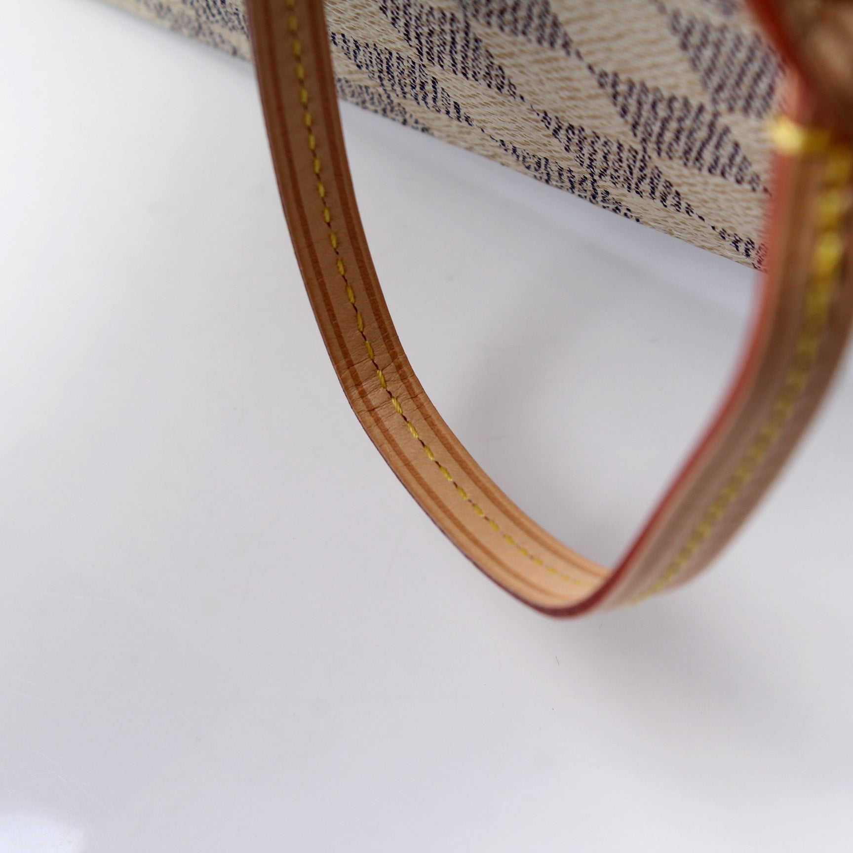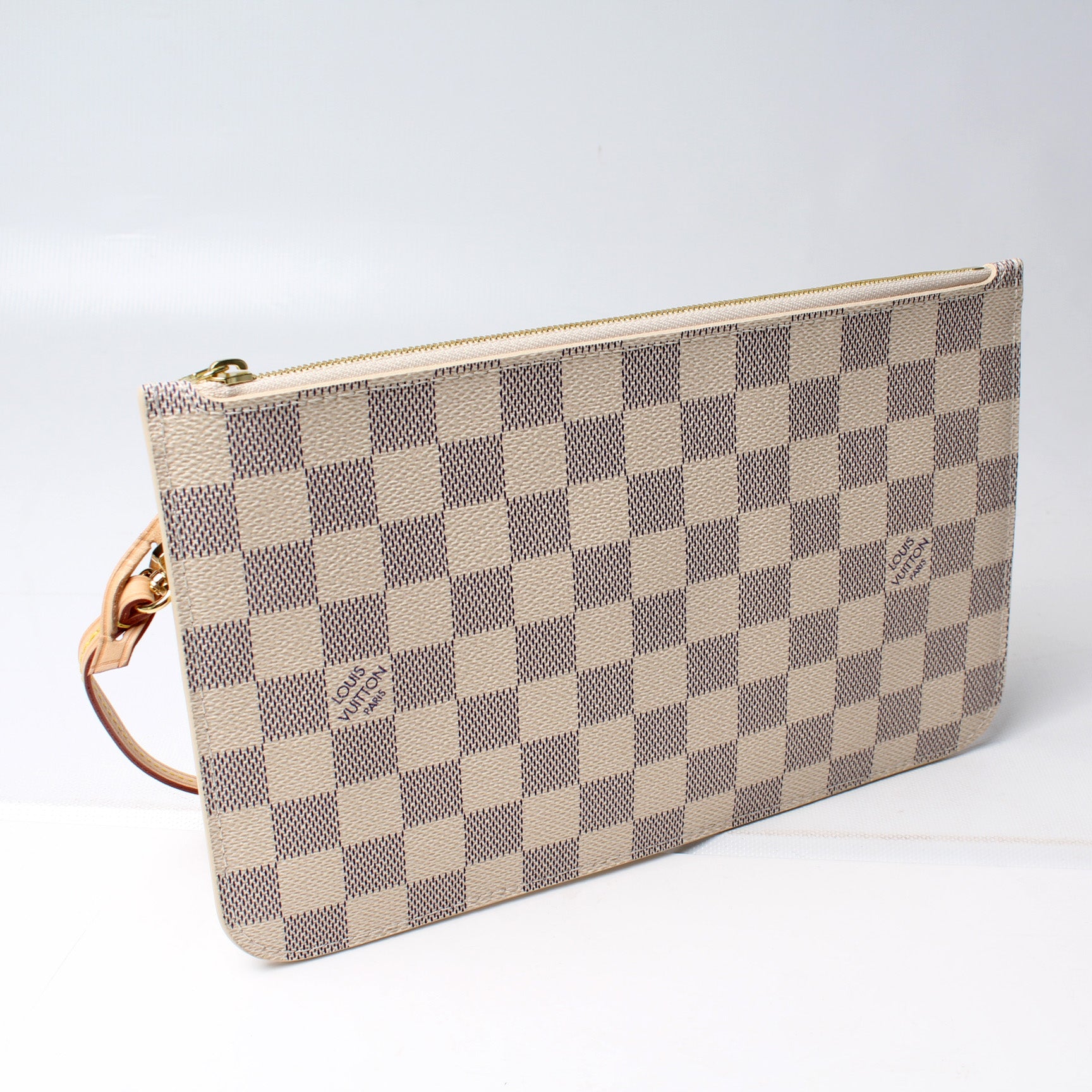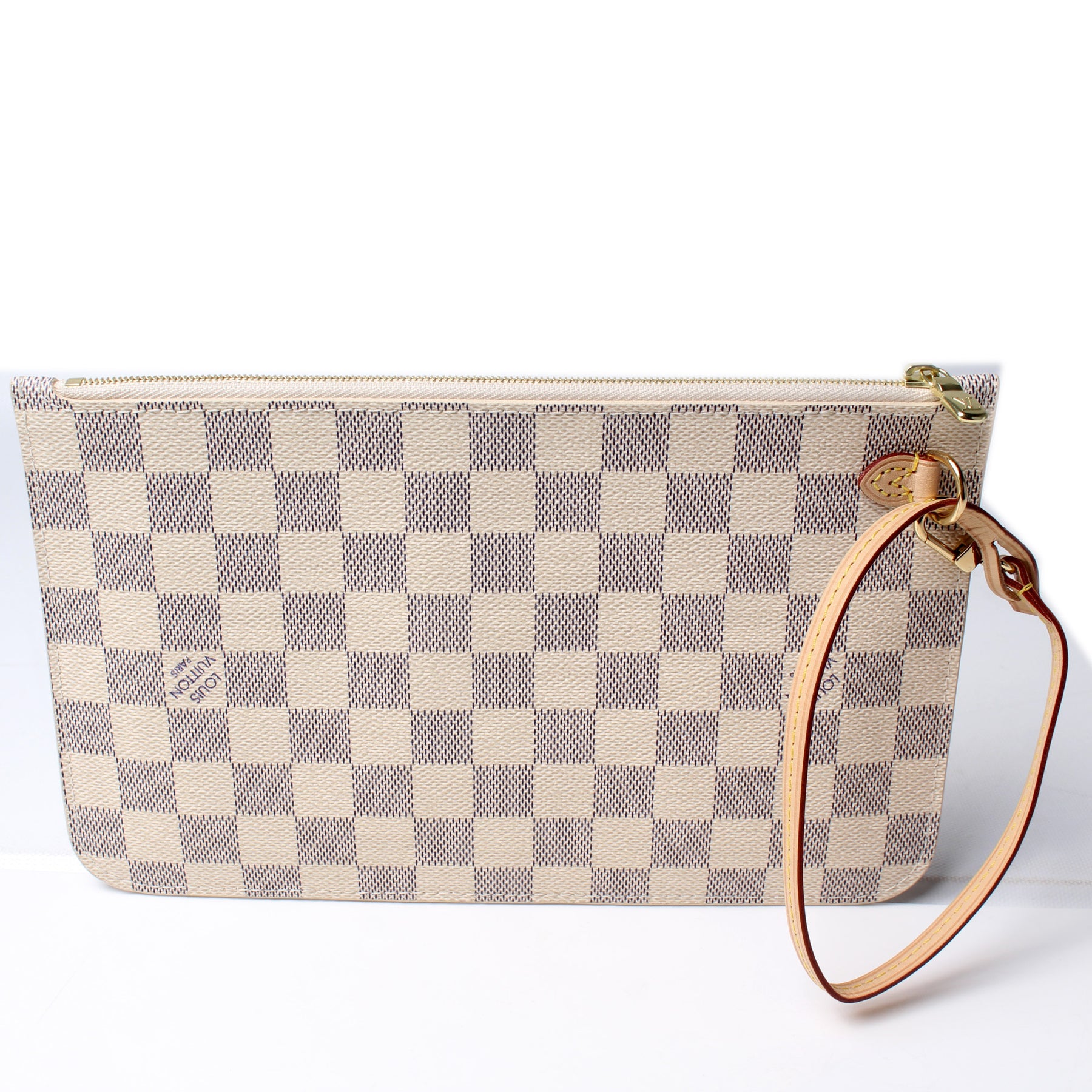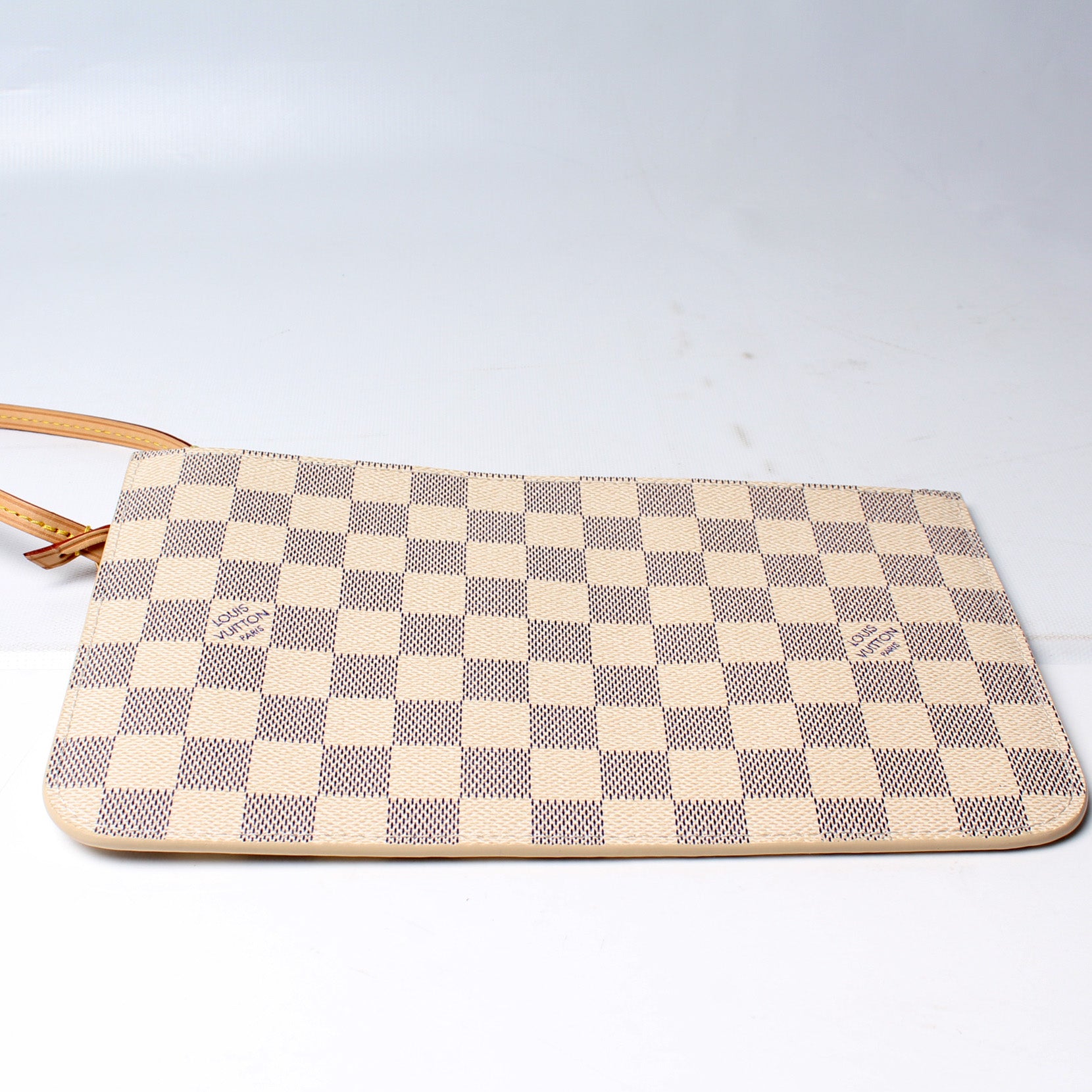 This pre-owned Louis Vuitton Pochette Only Neverfull is guaranteed 100% authentic. The exterior is in the classic Louis Vuitton Damier Azur coated canvas.