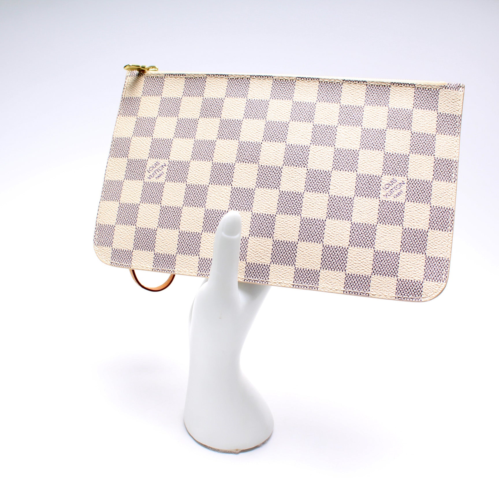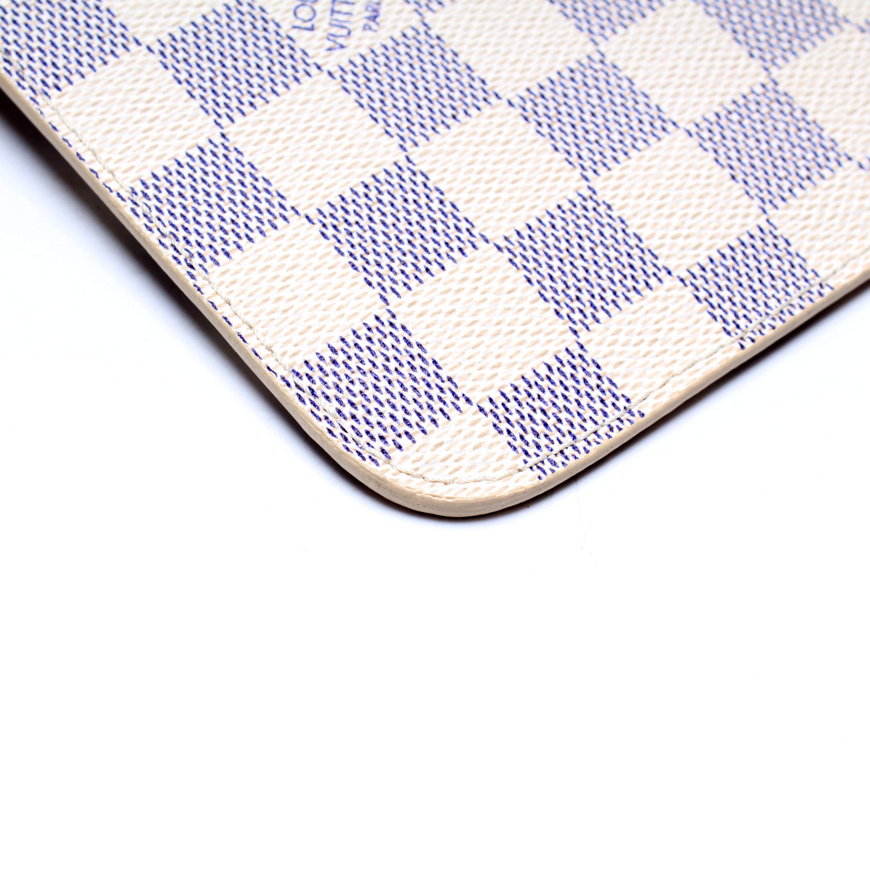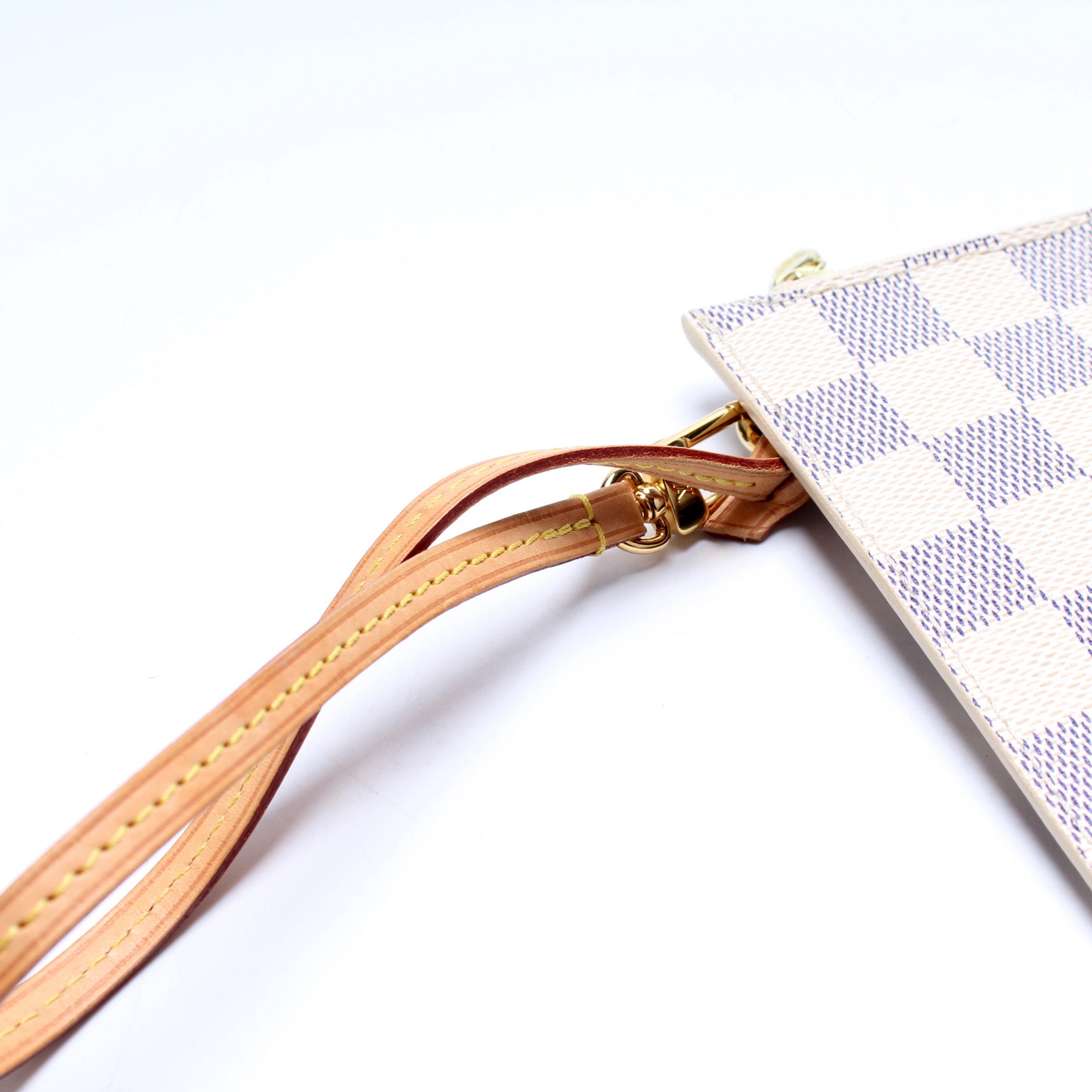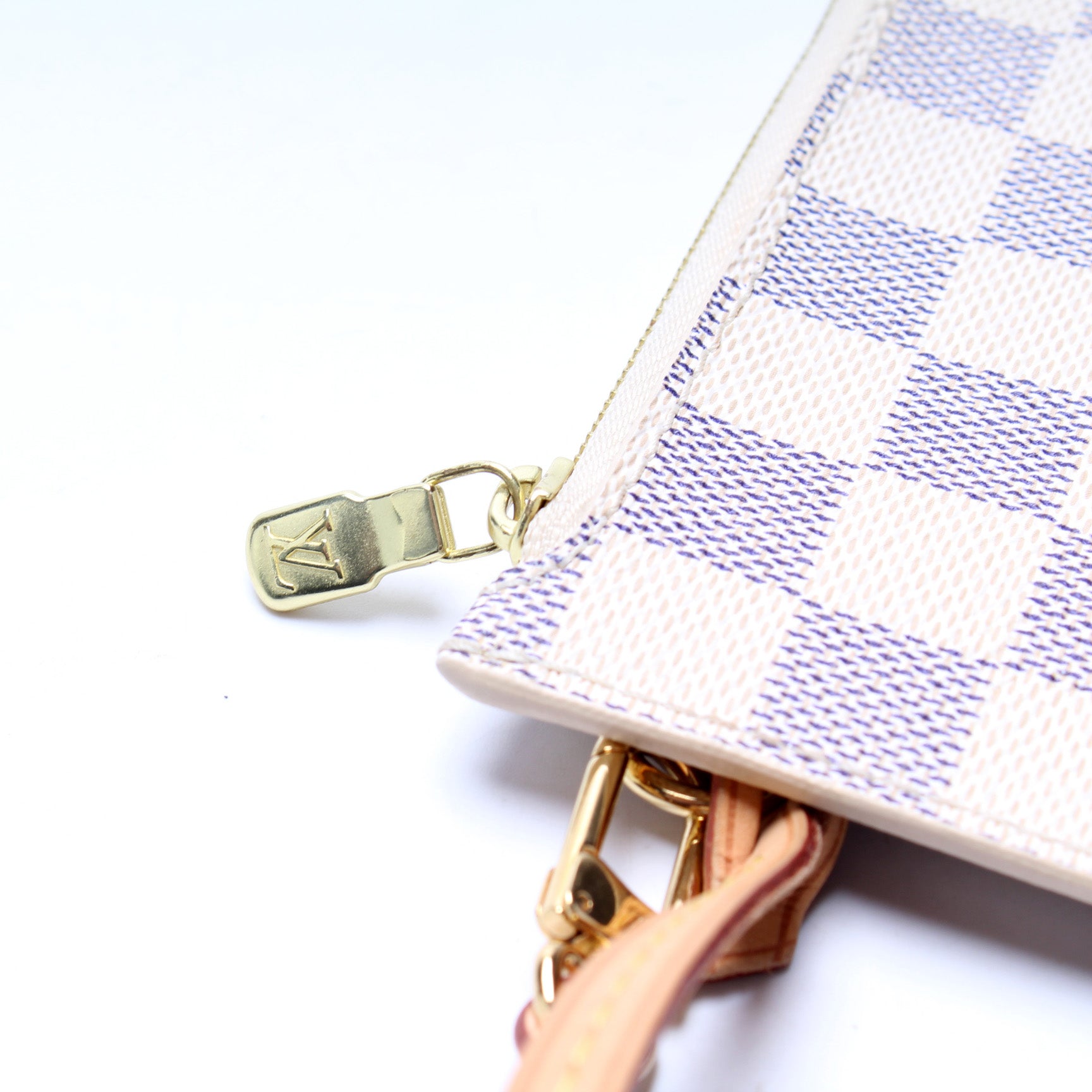 This pre-owned Louis Vuitton Pochette Only Neverfull is guaranteed 100% authentic. The exterior is in the classic Louis Vuitton Damier Azur coated canvas.