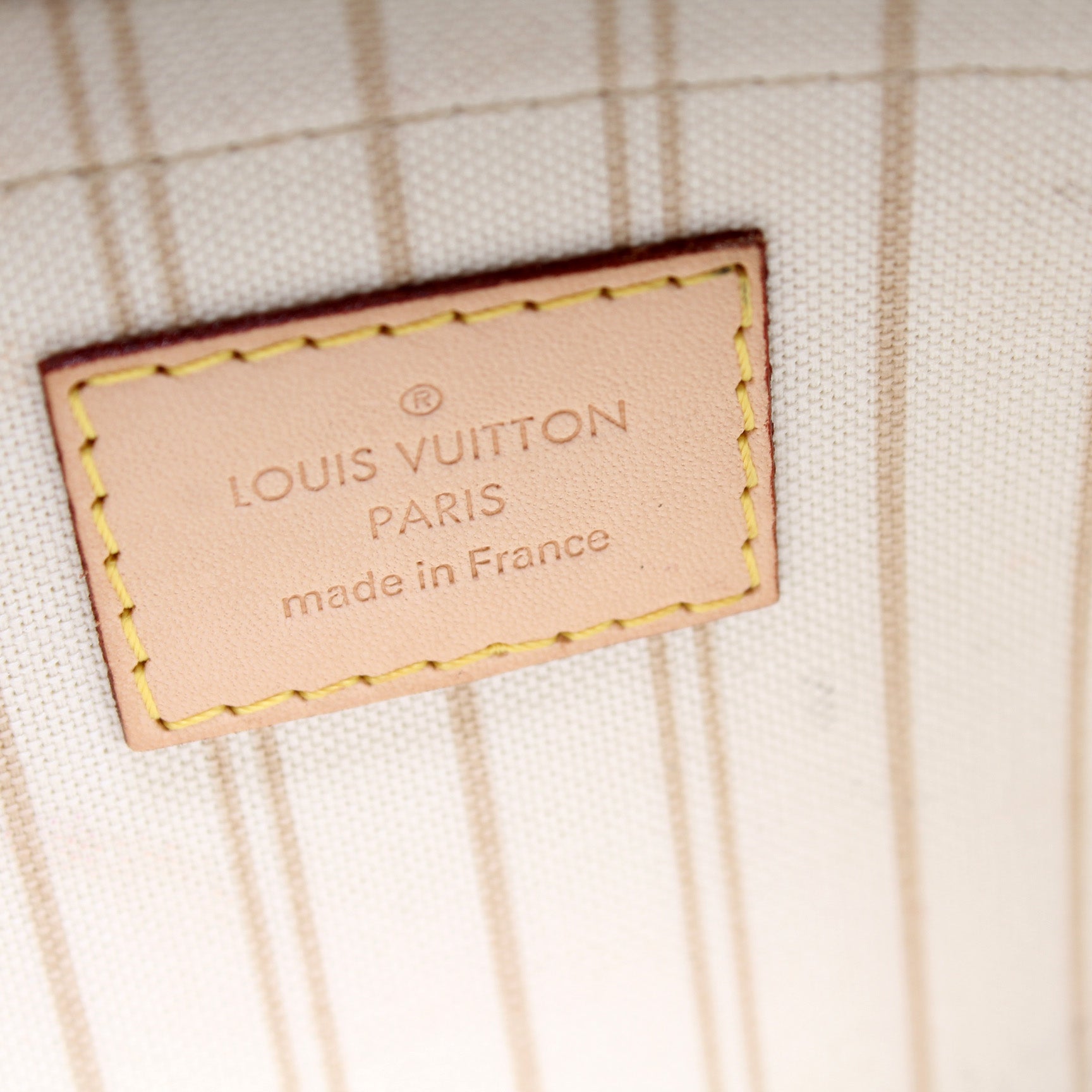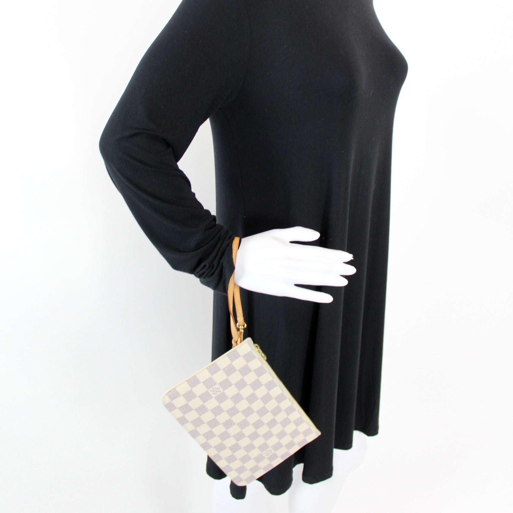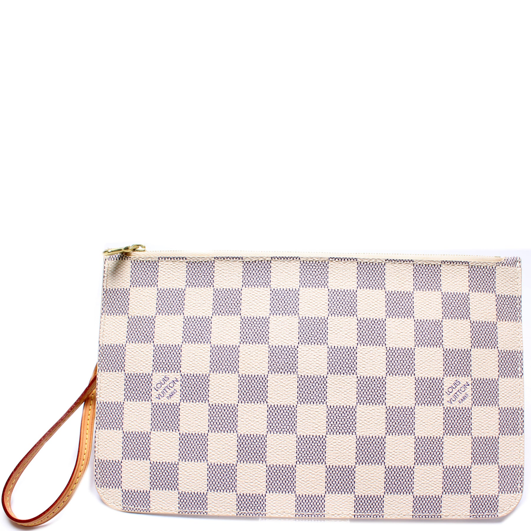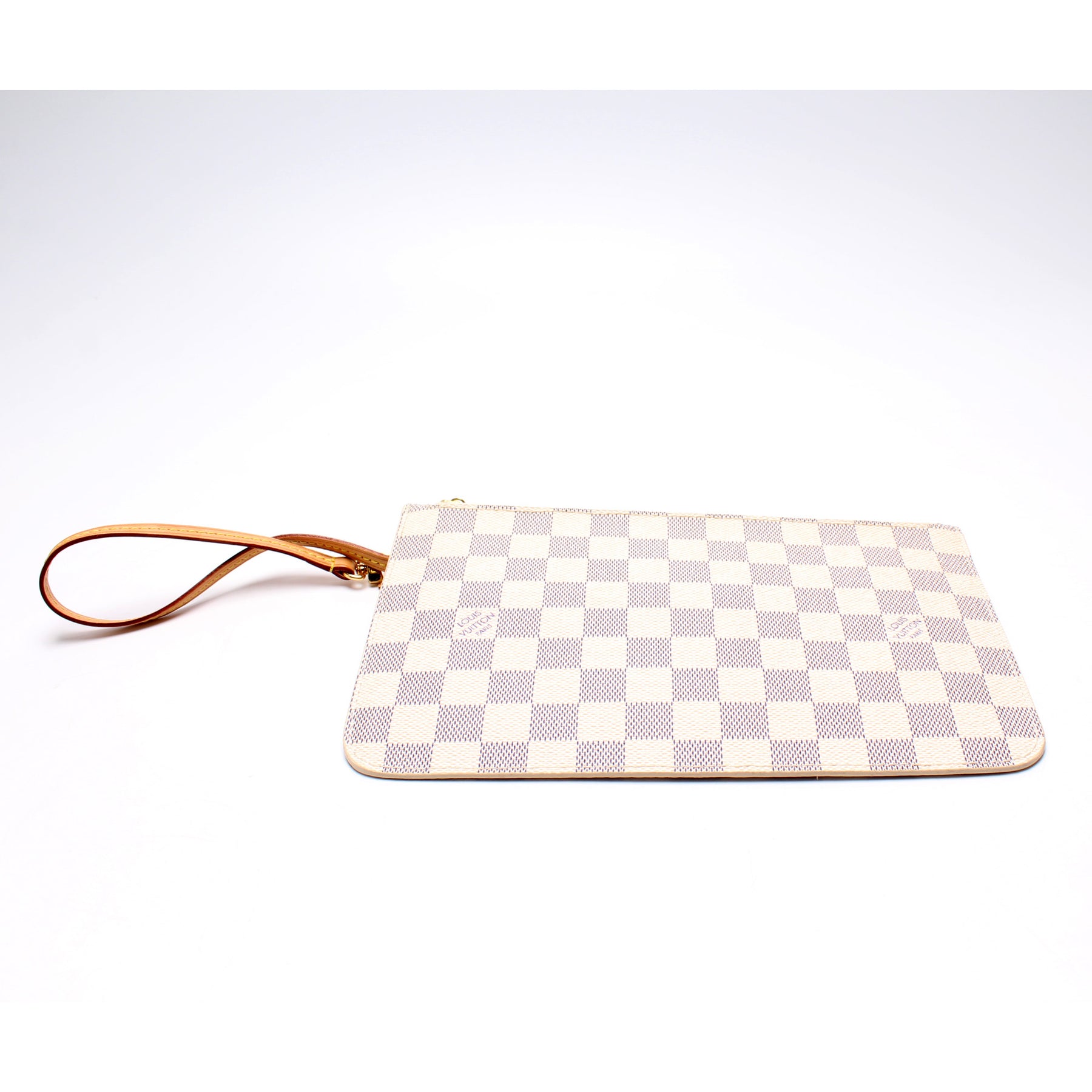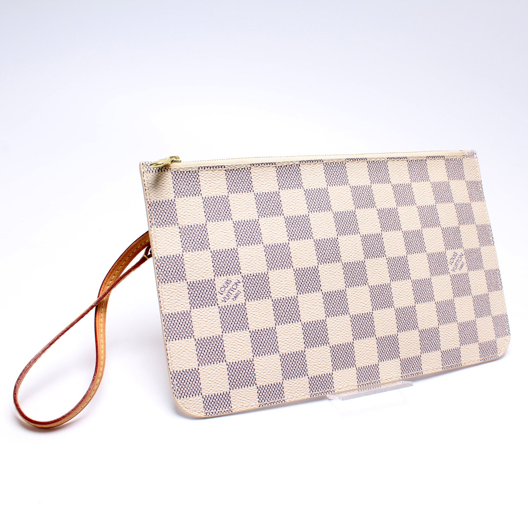 This pre-owned Louis Vuitton Pochette Only Neverfull is guaranteed 100% authentic. The exterior is in the classic Louis Vuitton Damier Azur coated canvas.