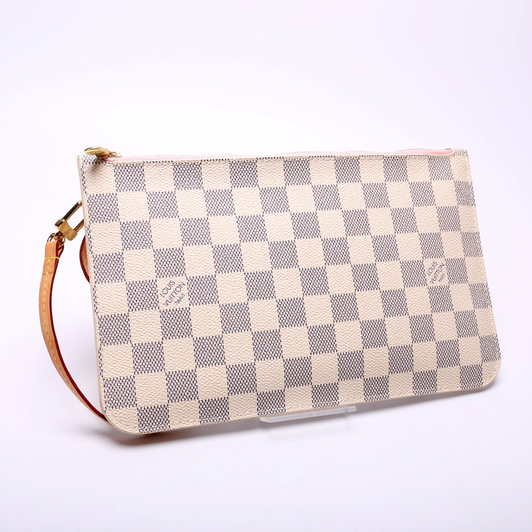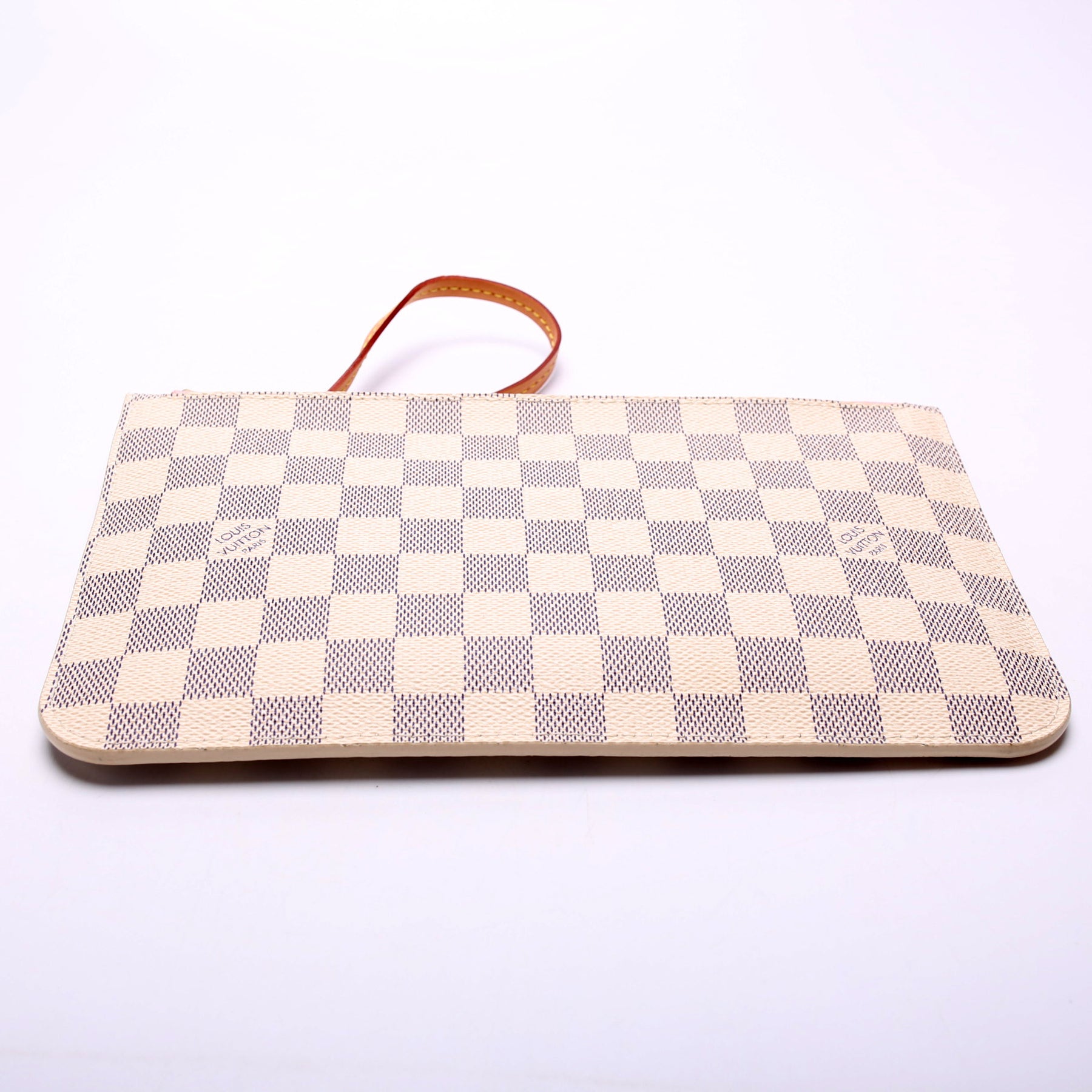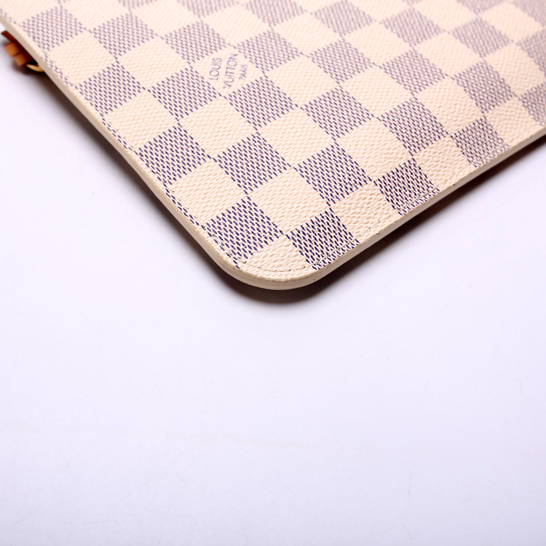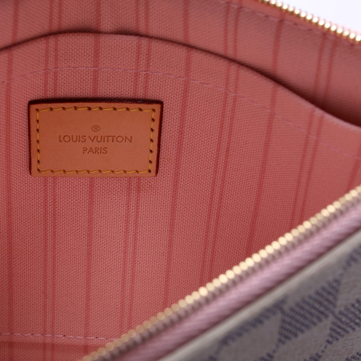 This pre-owned Louis Vuitton Pochette Only Neverfull is guaranteed 100% authentic. The exterior is in the classic Louis Vuitton Damier Azur coated canvas.