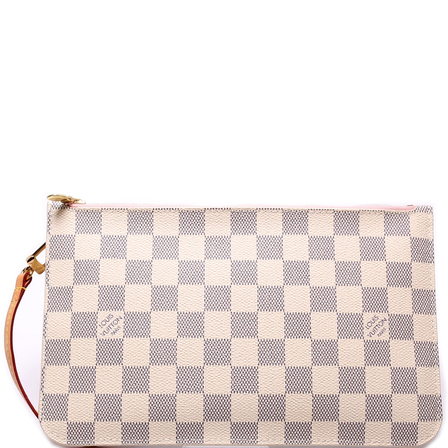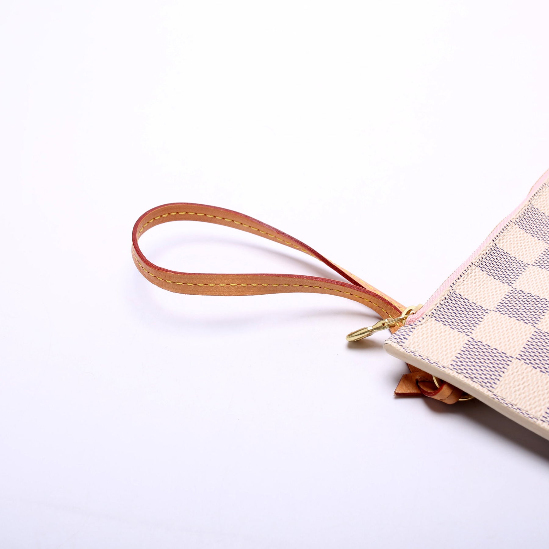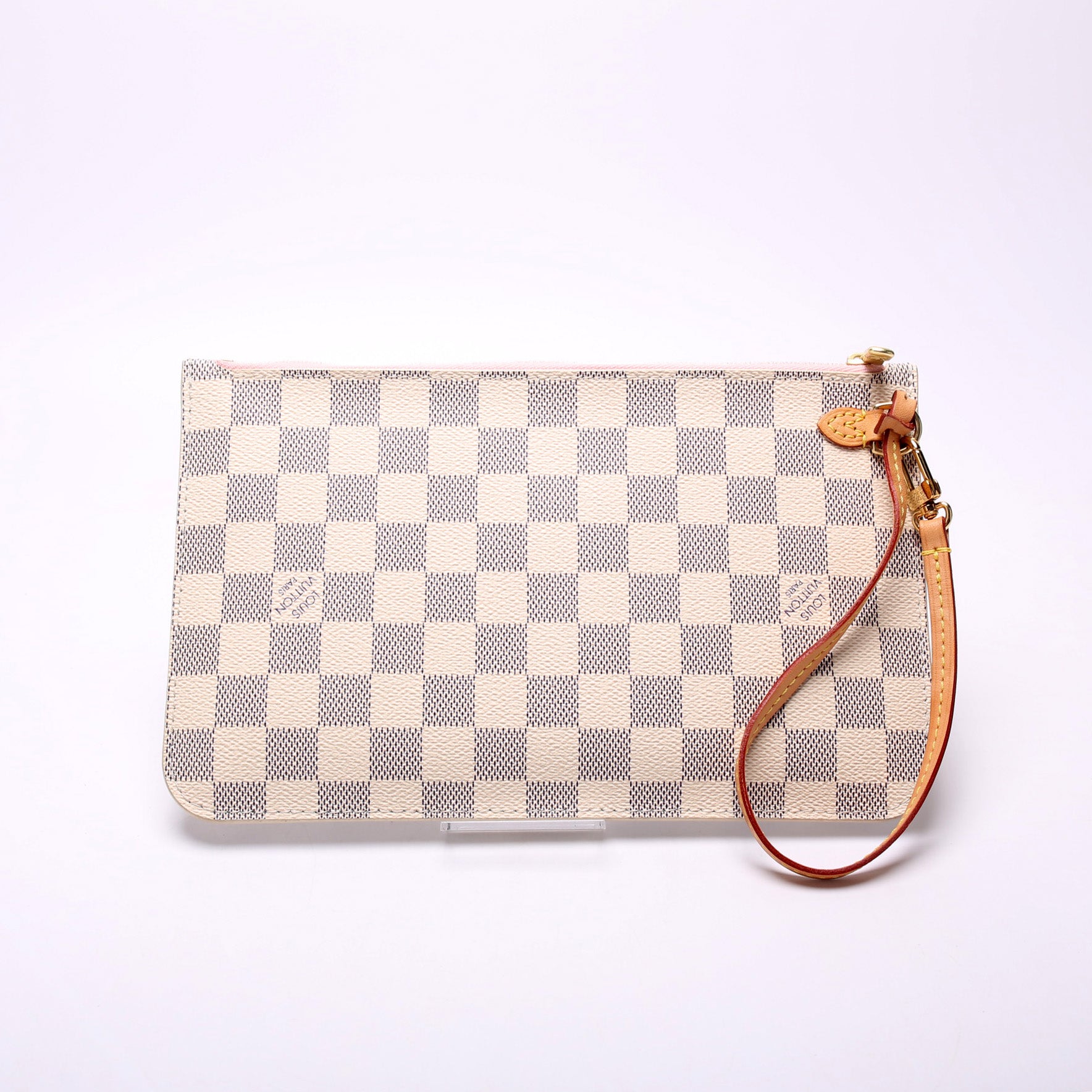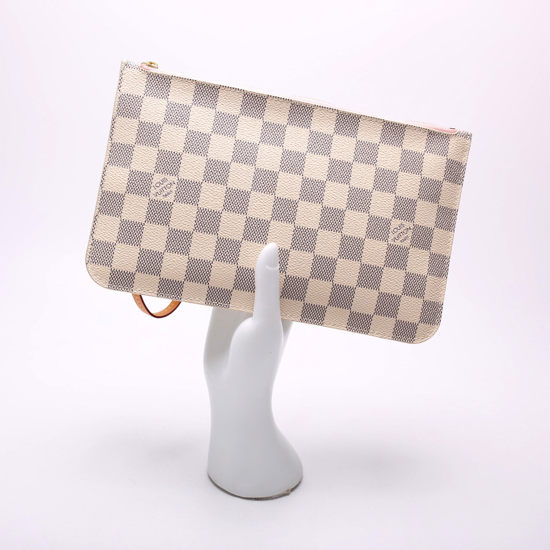 This pre-owned Louis Vuitton Pochette Only Neverfull is guaranteed 100% authentic. The exterior is in the classic Louis Vuitton Damier Azur coated canvas.
