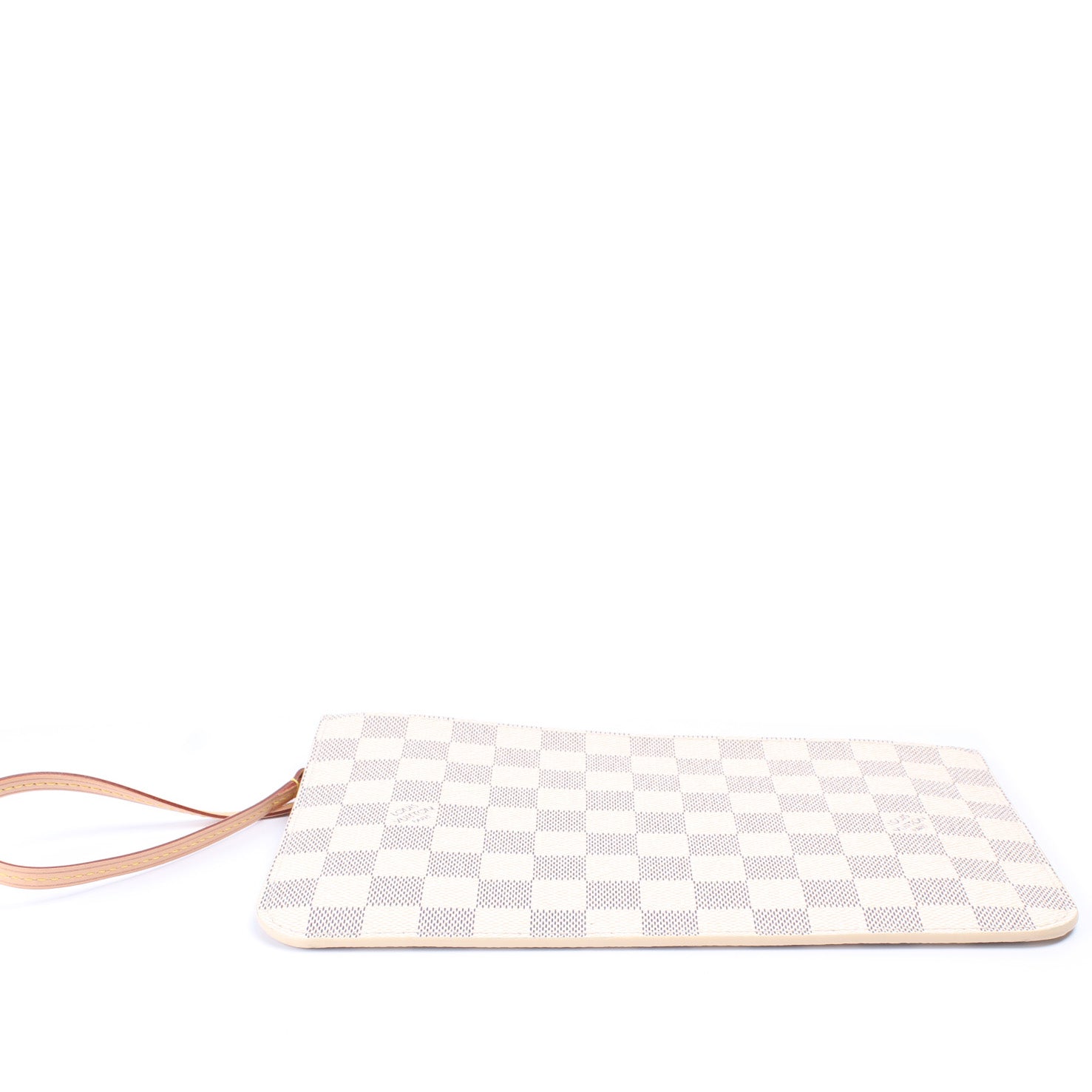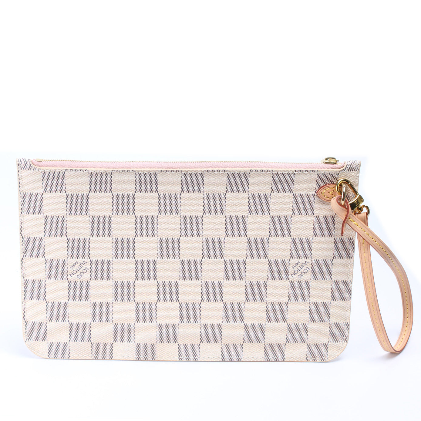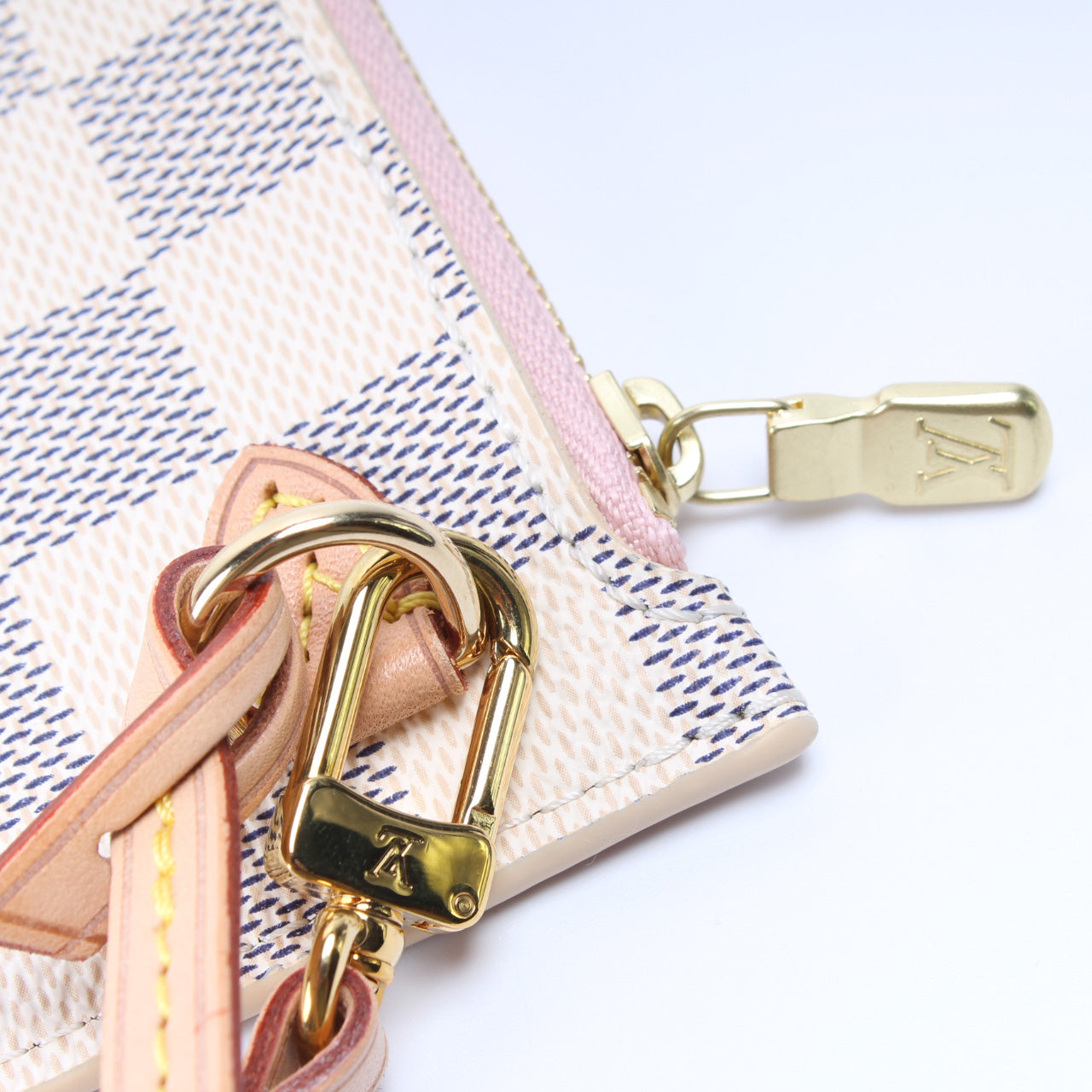This pre-owned Louis Vuitton Pochette Only Neverfull is guaranteed 100% authentic. The exterior is in the classic Louis Vuitton Damier Azur coated canvas.