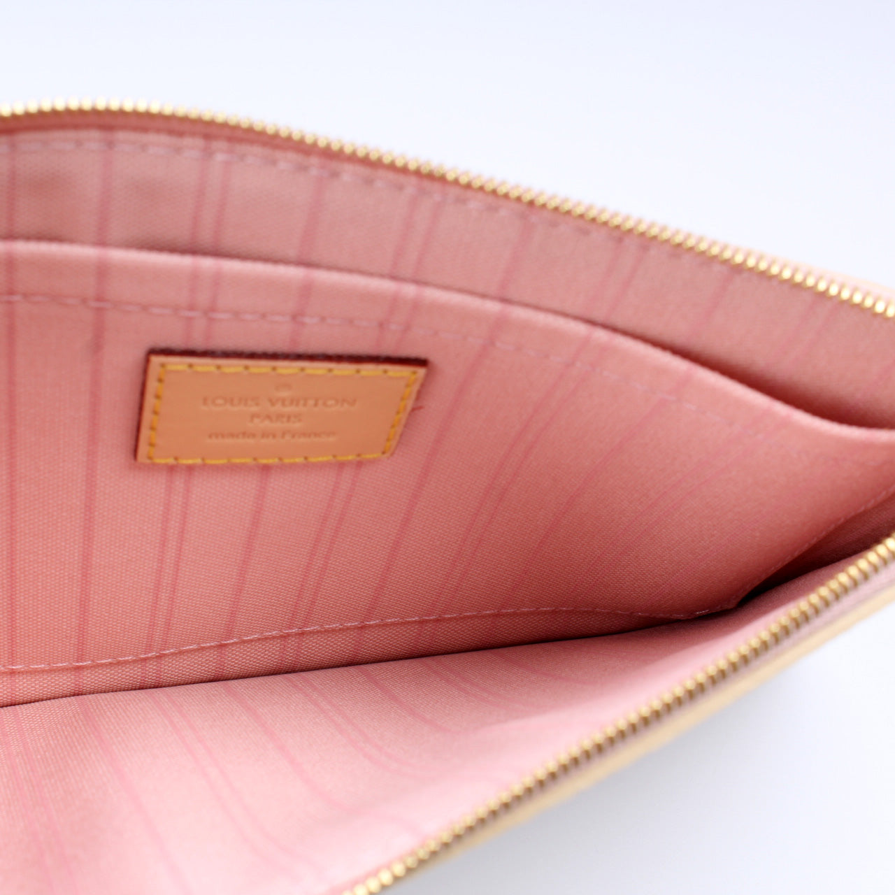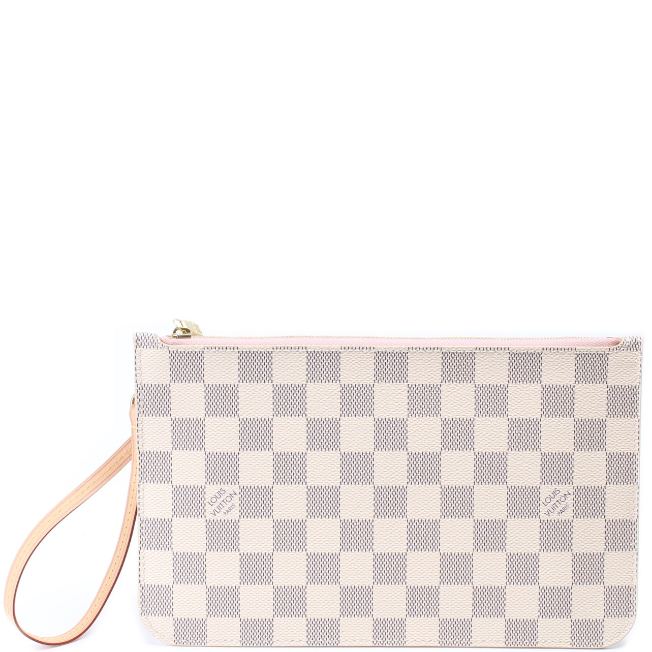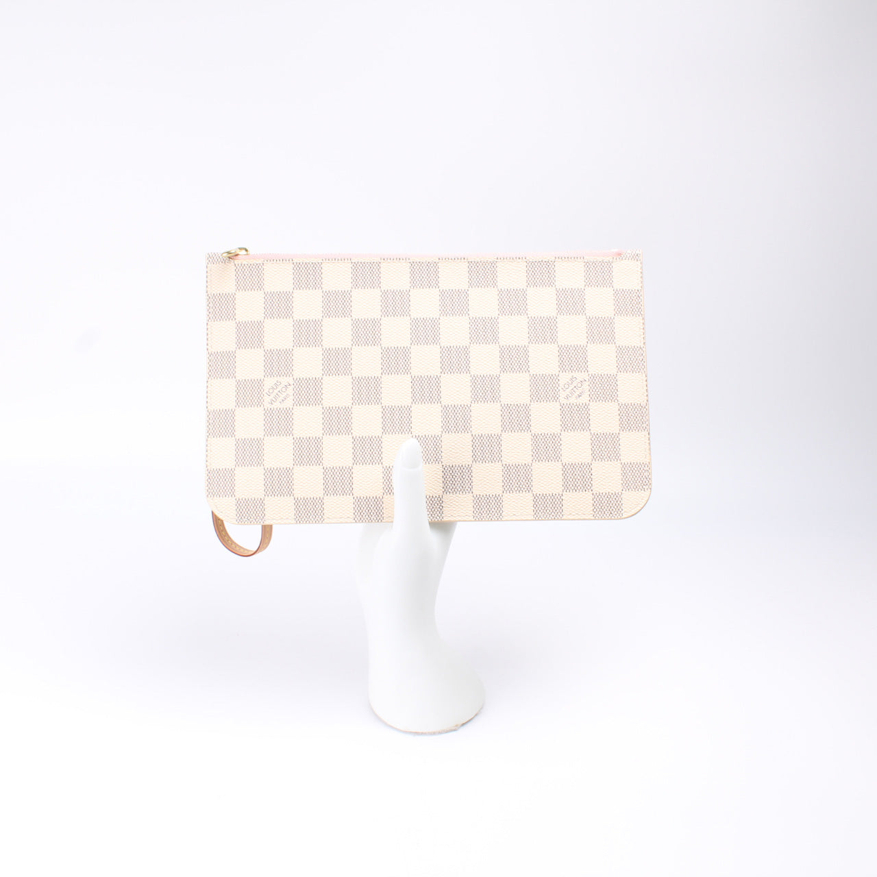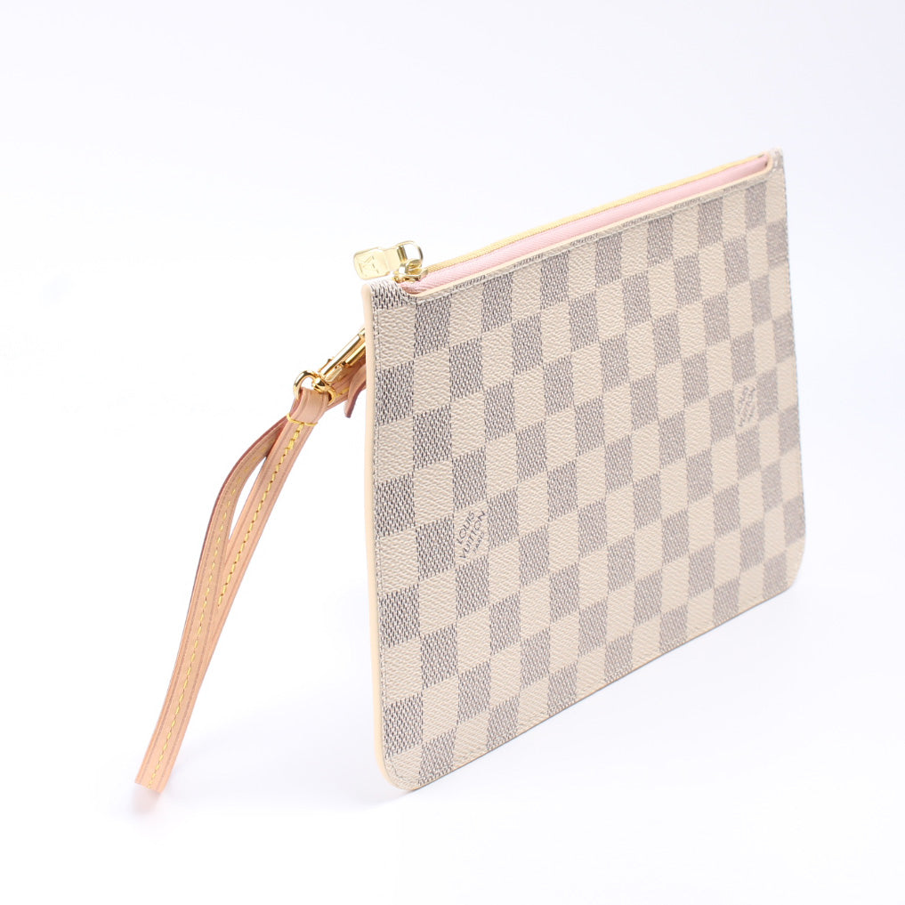 This pre-owned Louis Vuitton Pochette Only Neverfull is guaranteed 100% authentic. The exterior is in the classic Louis Vuitton Damier Azur coated canvas.