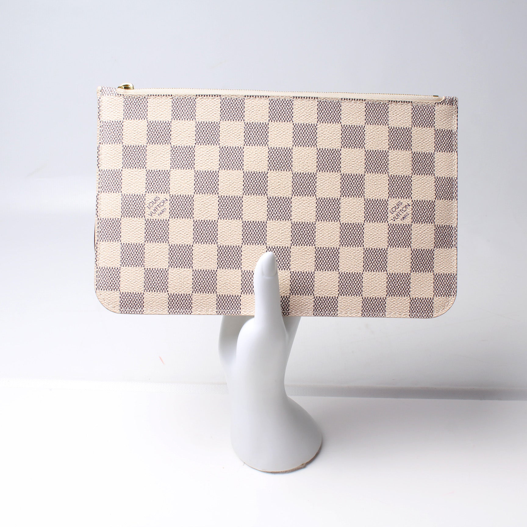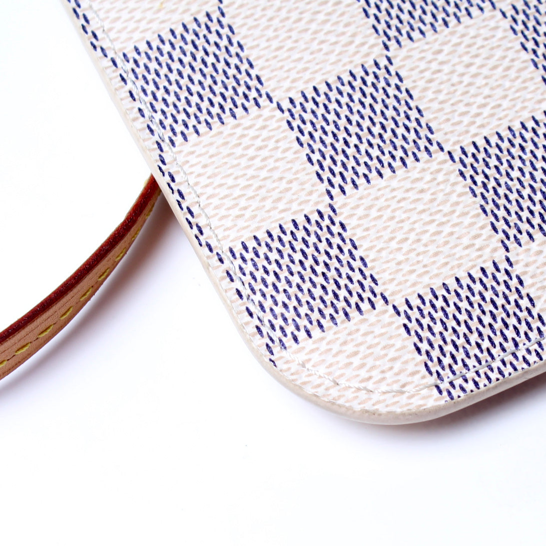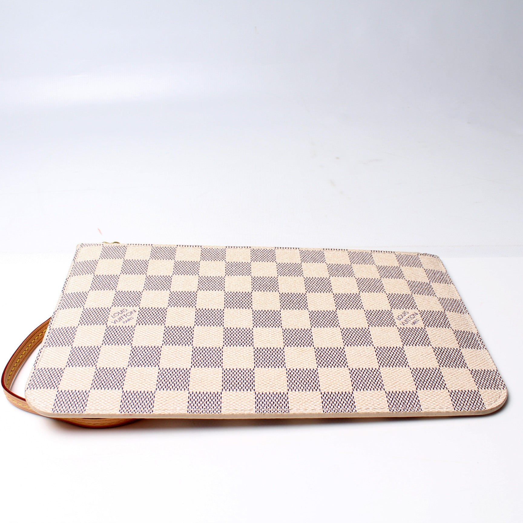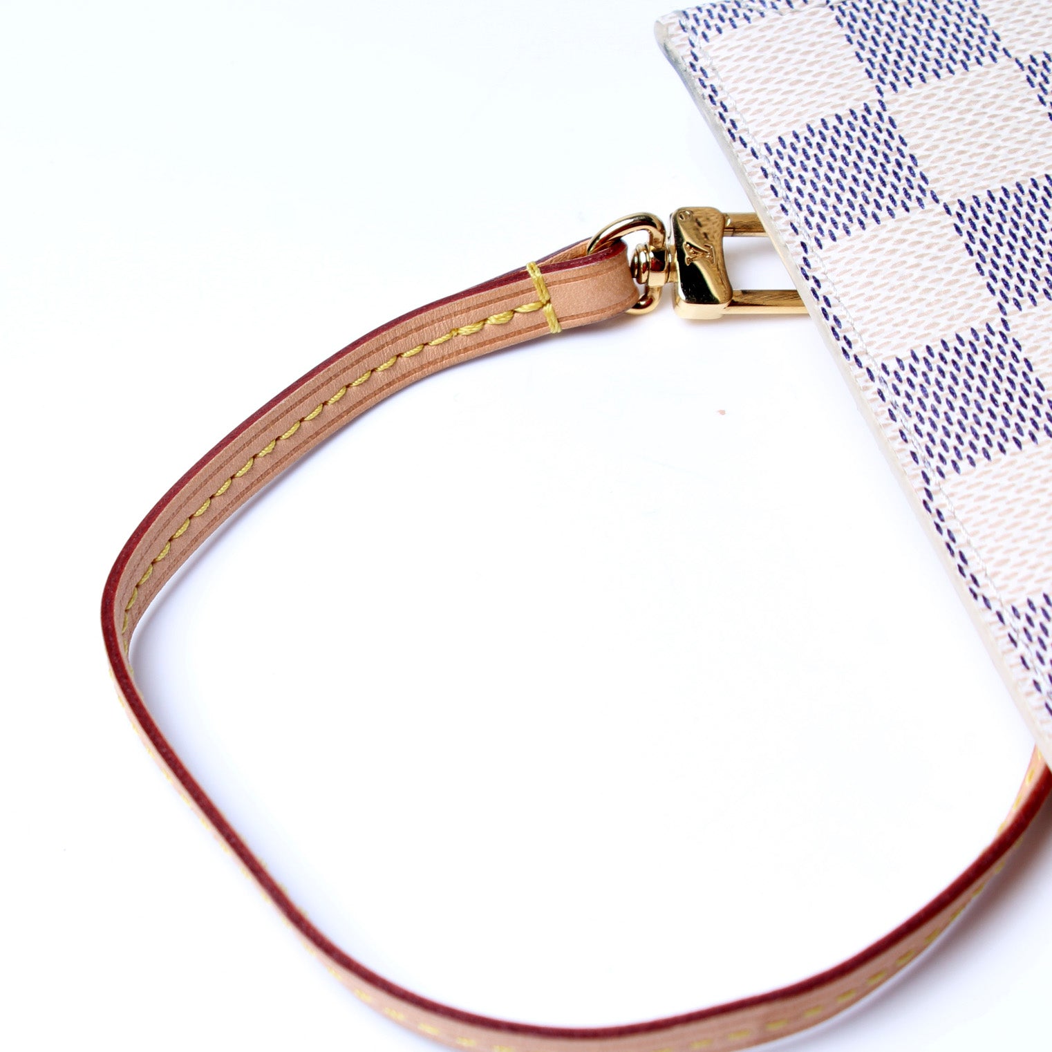 This pre-owned Louis Vuitton Pochette Only Neverfull is guaranteed 100% authentic. The exterior is in the classic Louis Vuitton Damier Azur coated canvas.