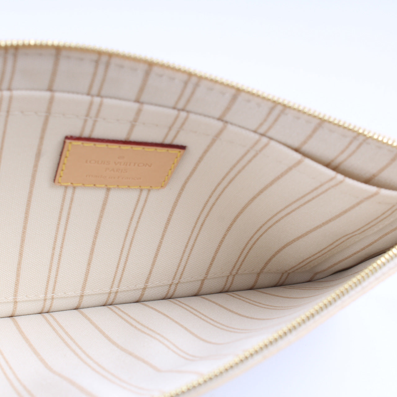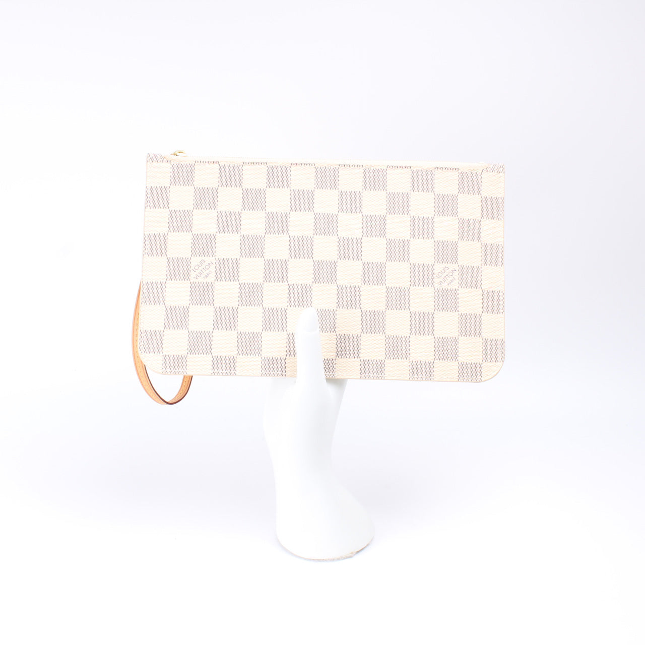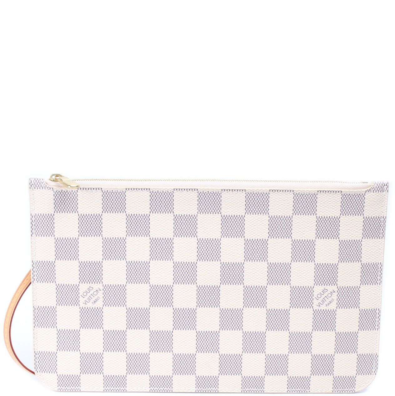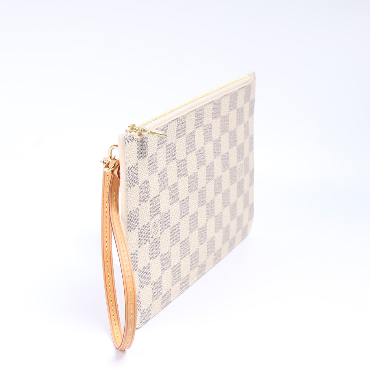 This pre-owned Louis Vuitton Pochette Only Neverfull is guaranteed 100% authentic. The exterior is in the classic Louis Vuitton Damier Azur coated canvas.