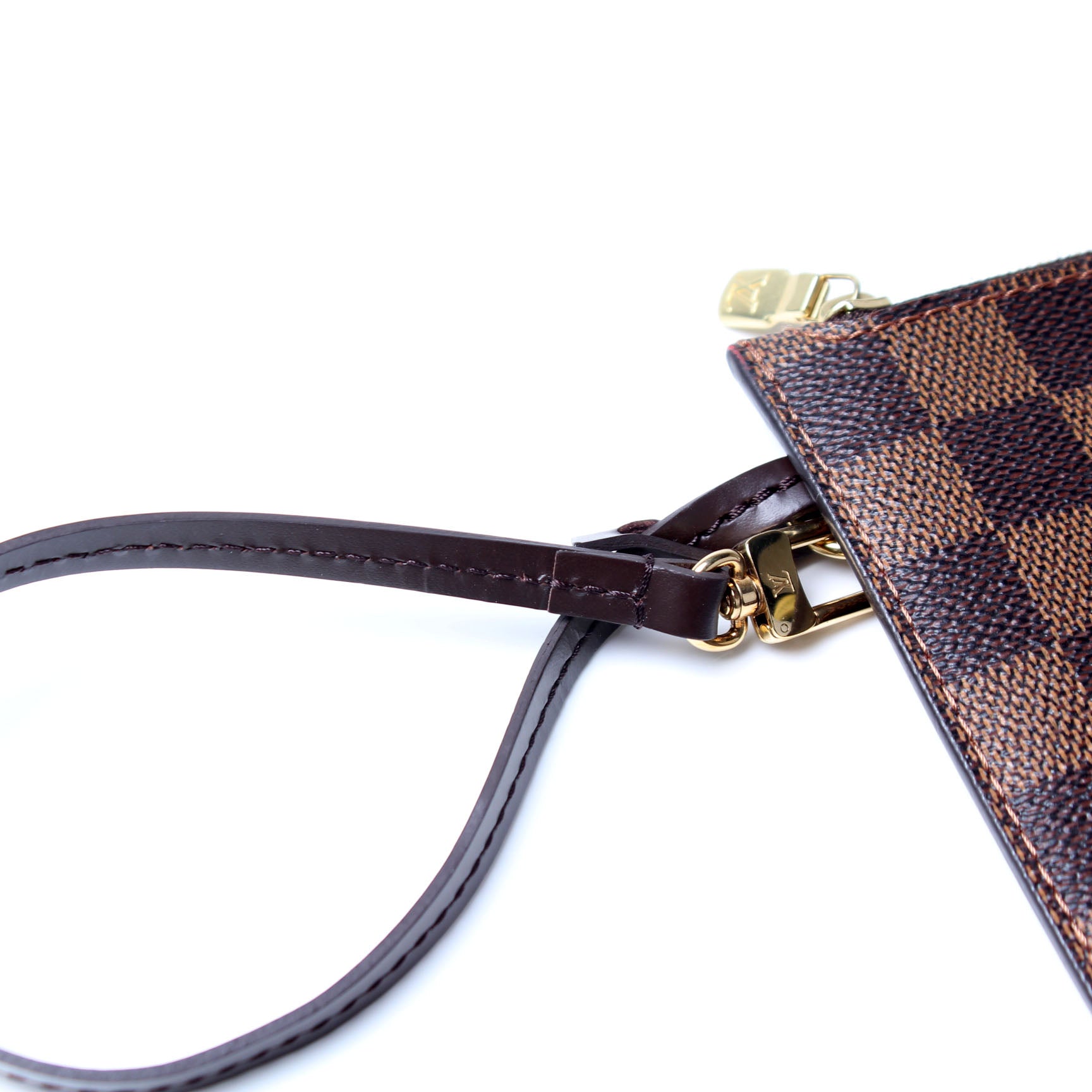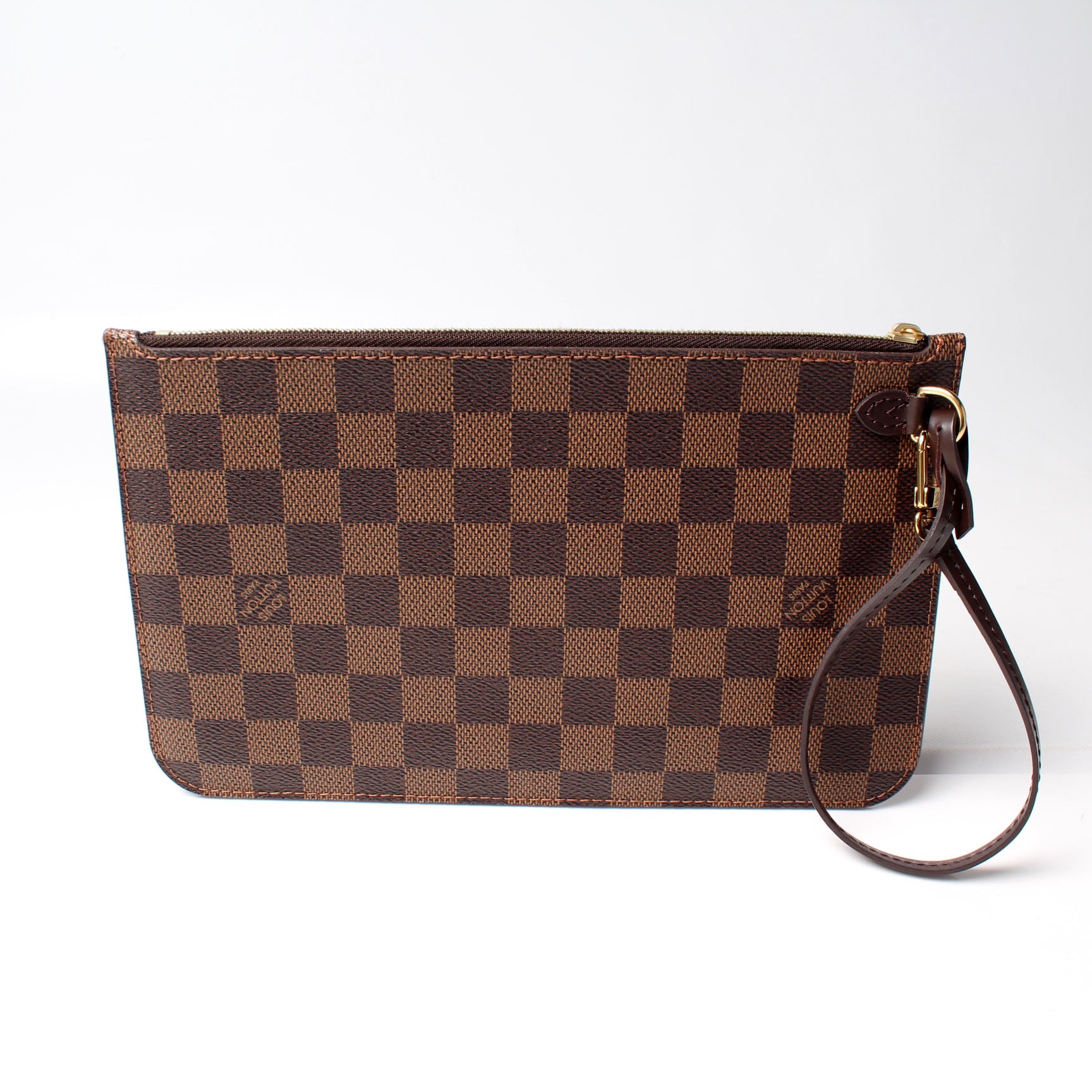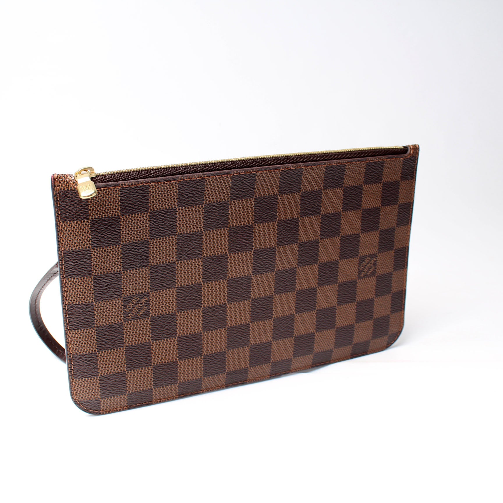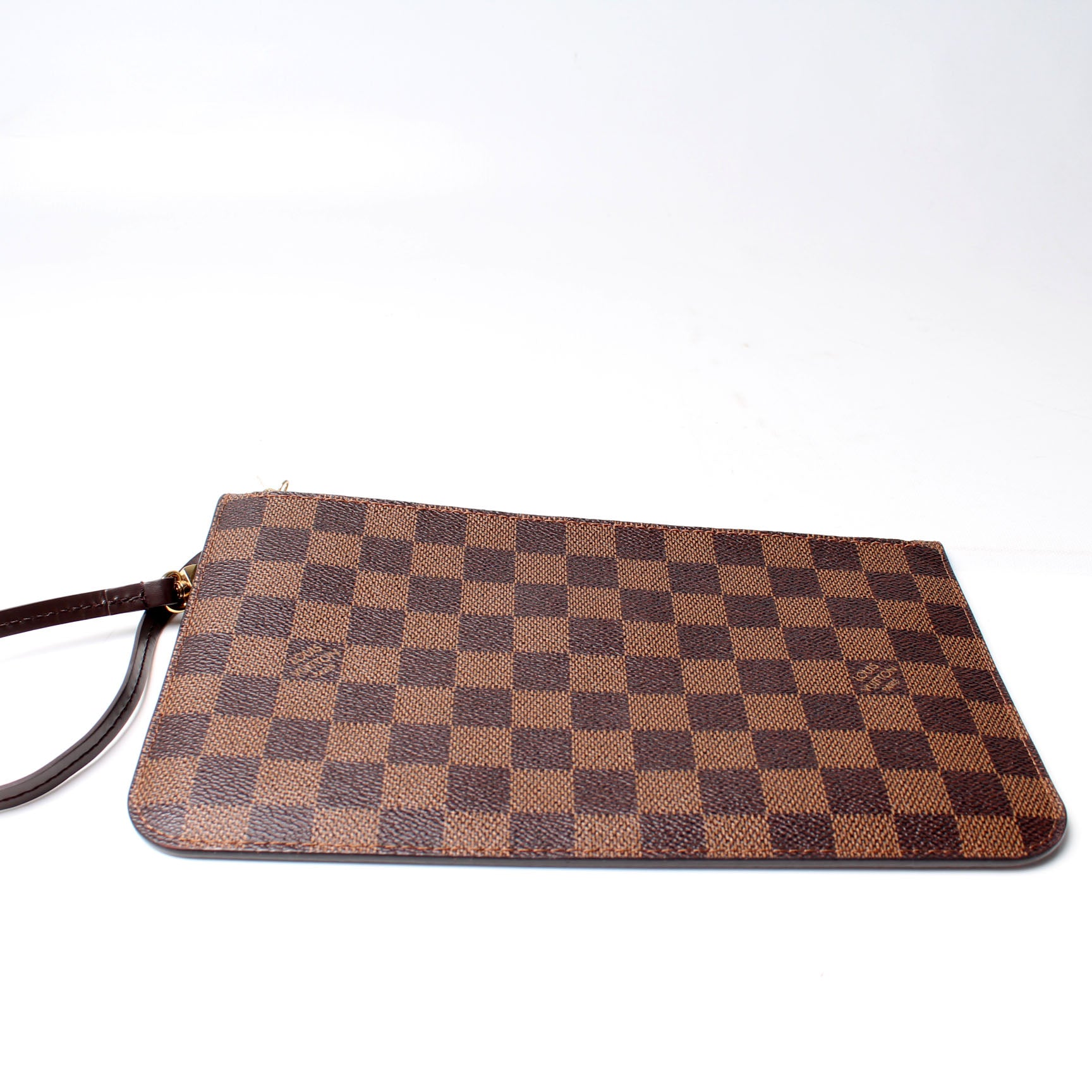 This pre-owned Louis Vuitton Pochette Only Neverfull is guaranteed 100% authentic. The exterior is in the classic Louis Vuitton Damier Ebene coated canvas.