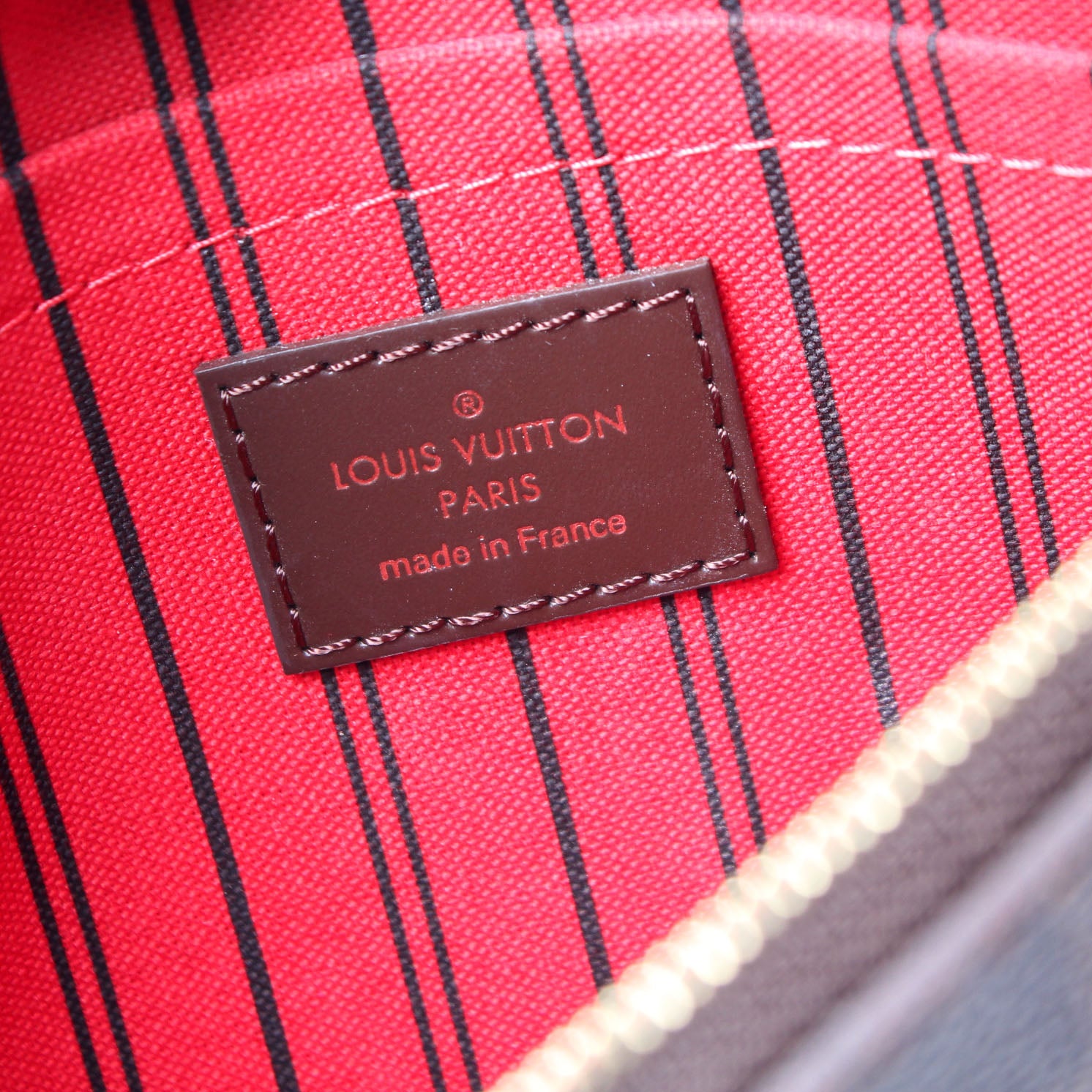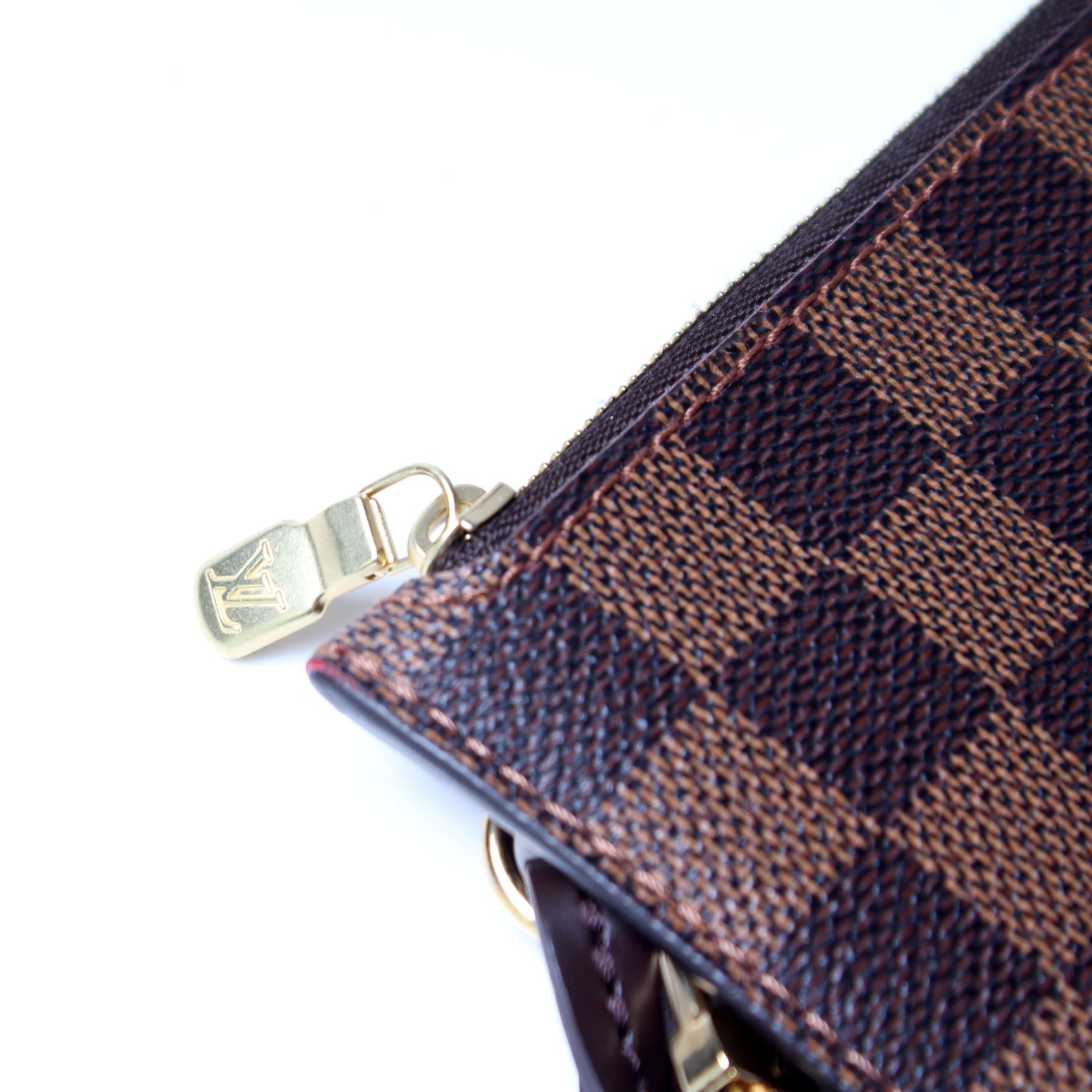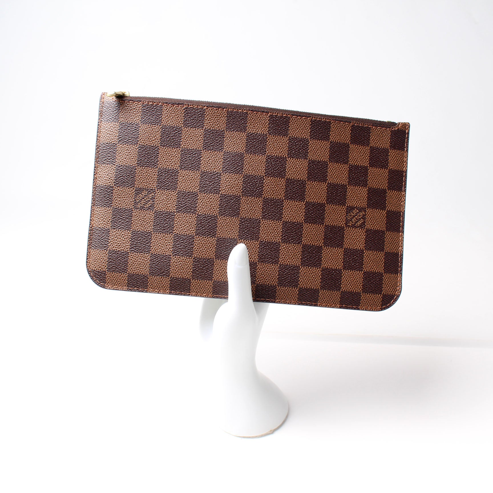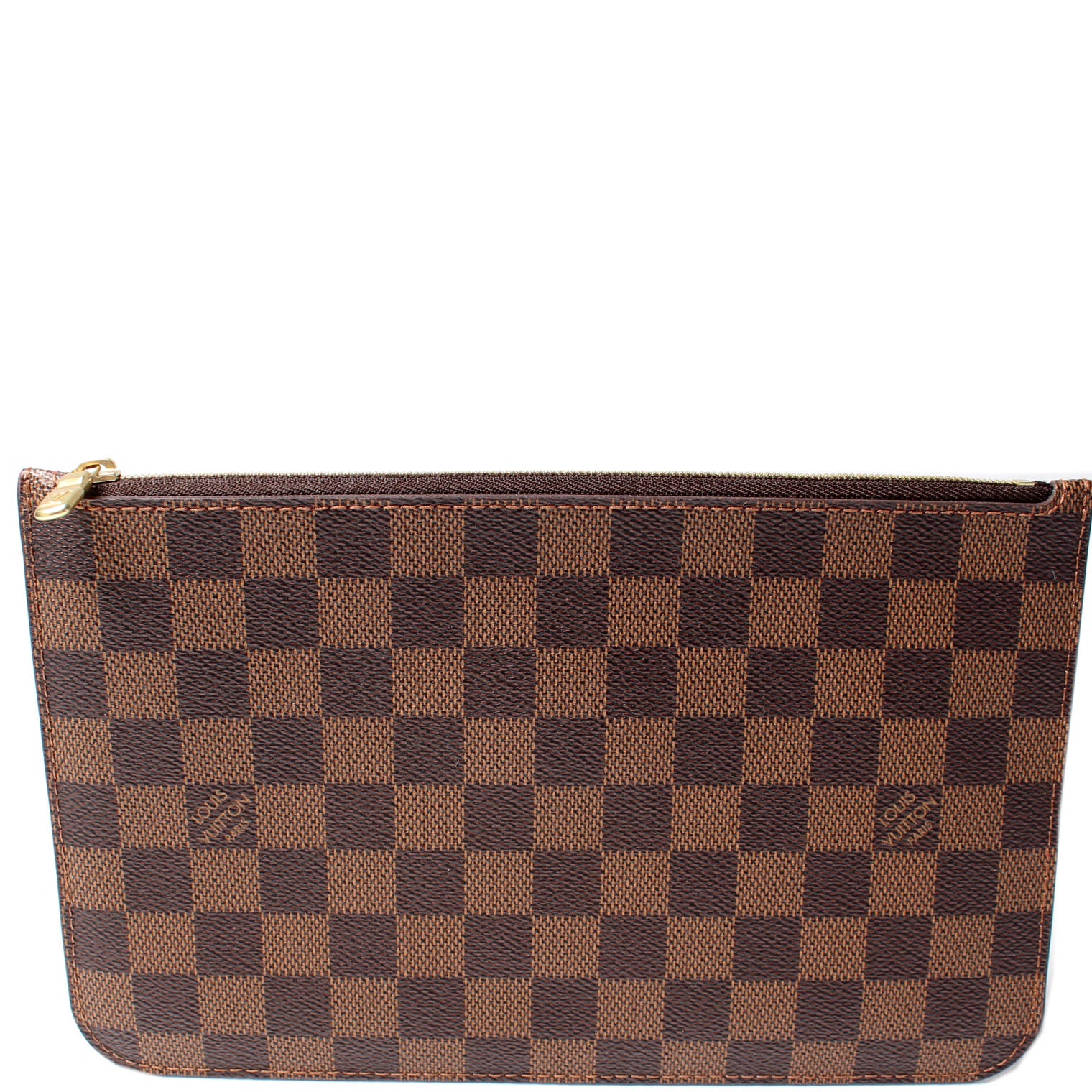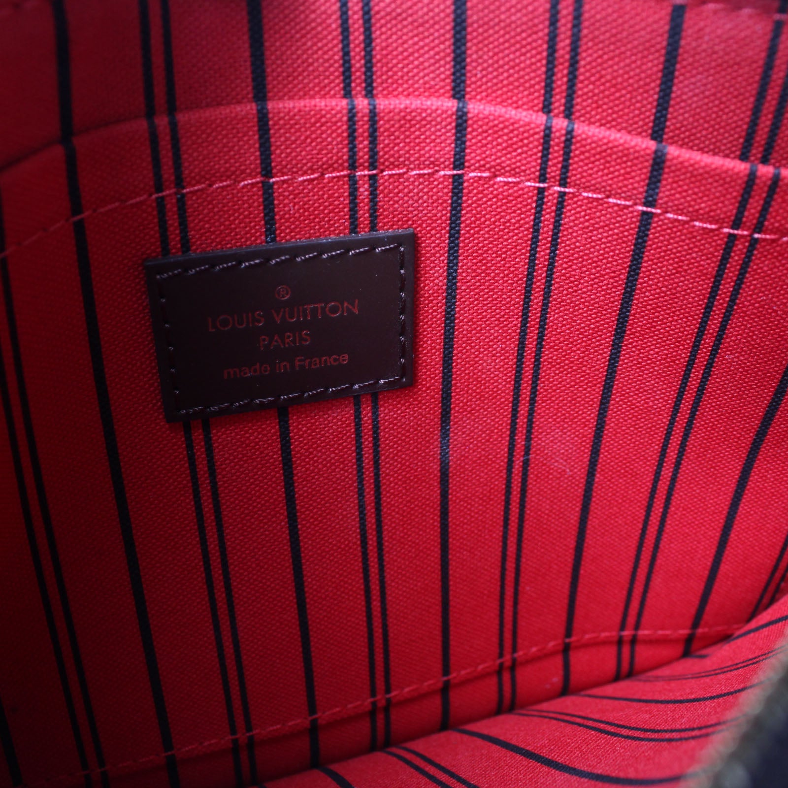 This pre-owned Louis Vuitton Pochette Only Neverfull is guaranteed 100% authentic. The exterior is in the classic Louis Vuitton Damier Ebene coated canvas.