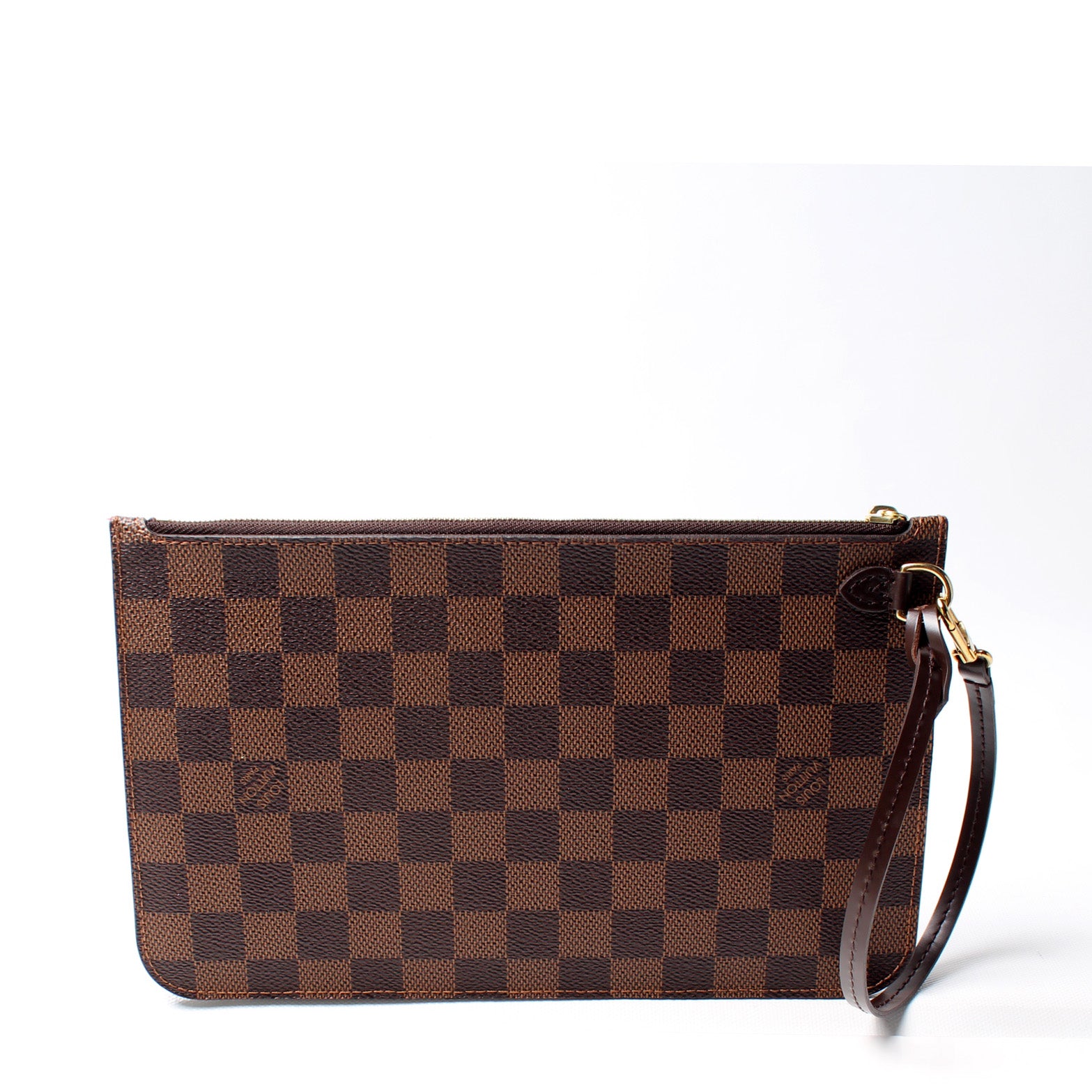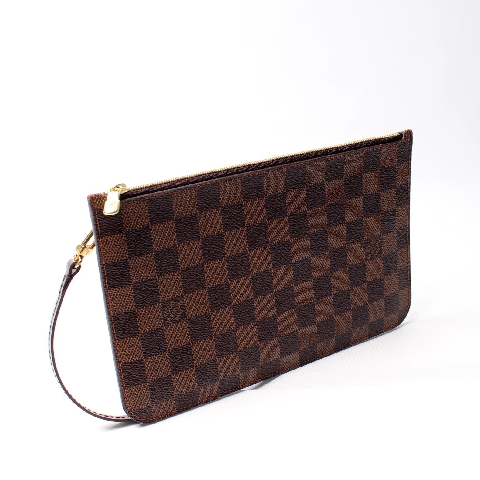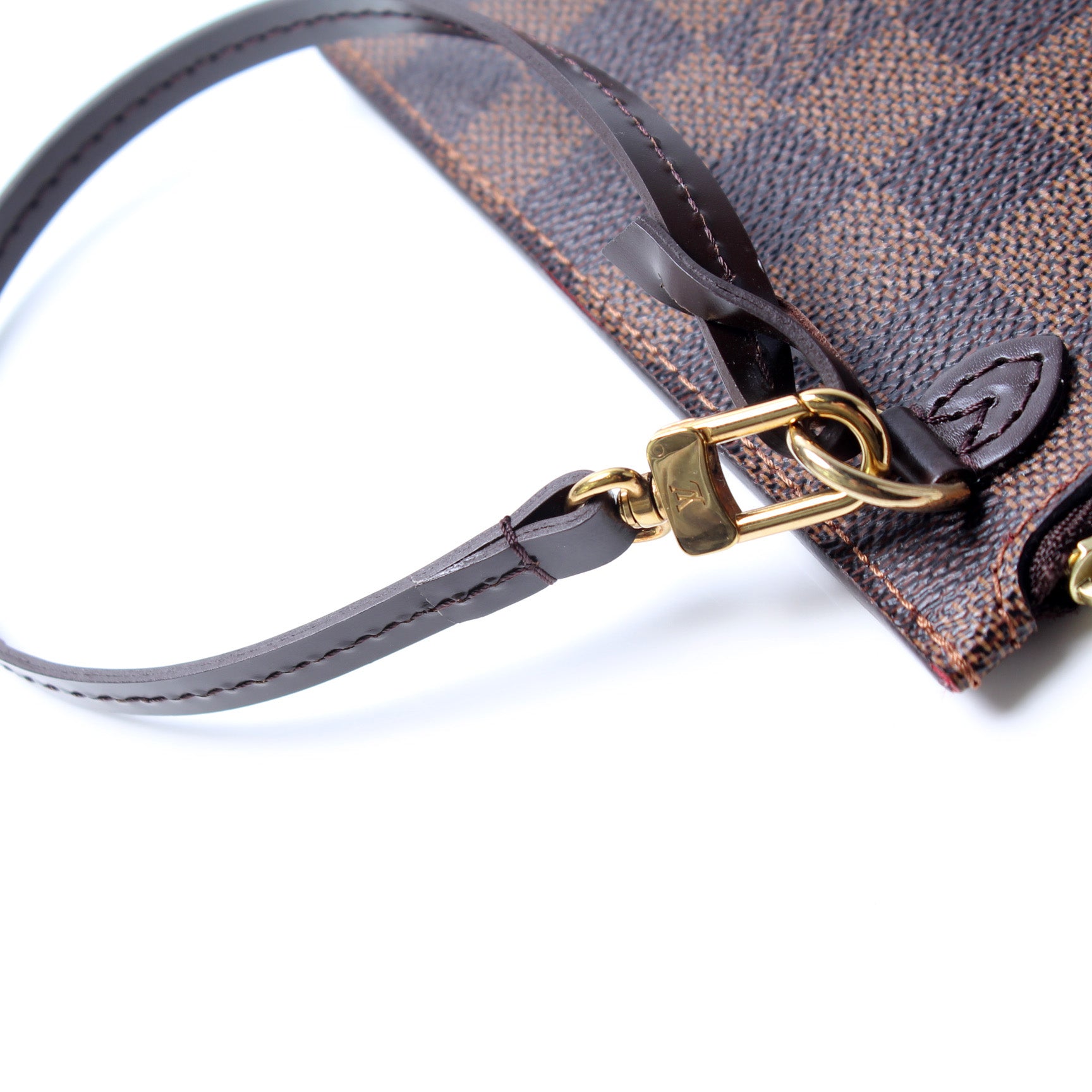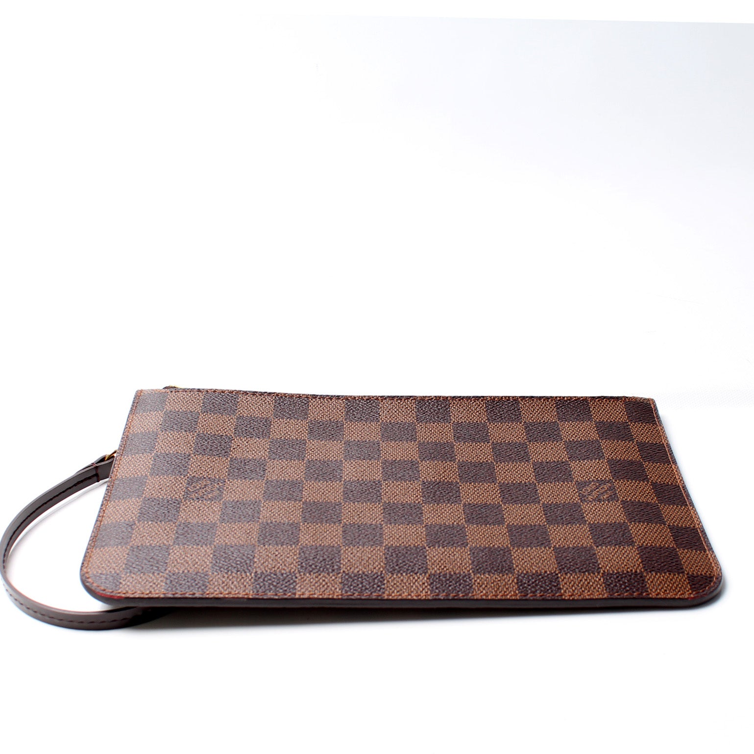 This pre-owned Louis Vuitton Pochette Only Neverfull is guaranteed 100% authentic. The exterior is in the classic Louis Vuitton Damier Ebene coated canvas.